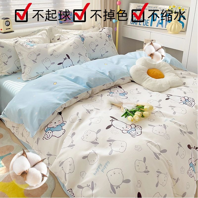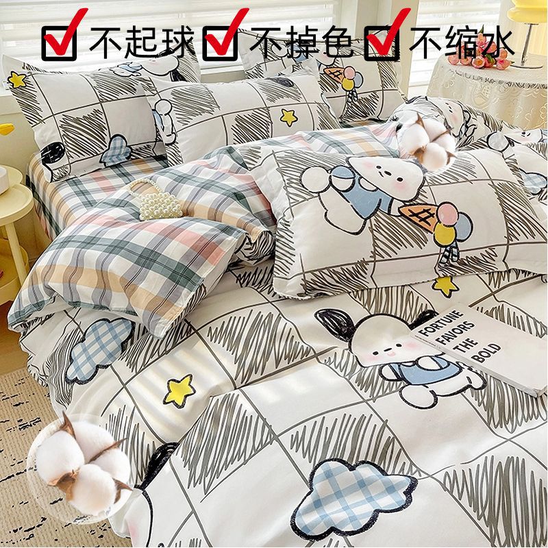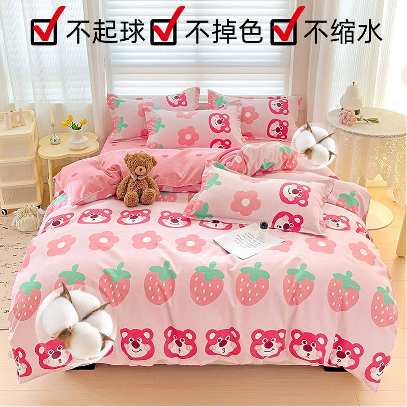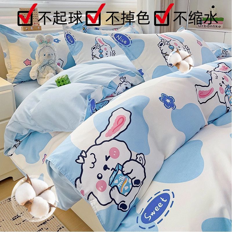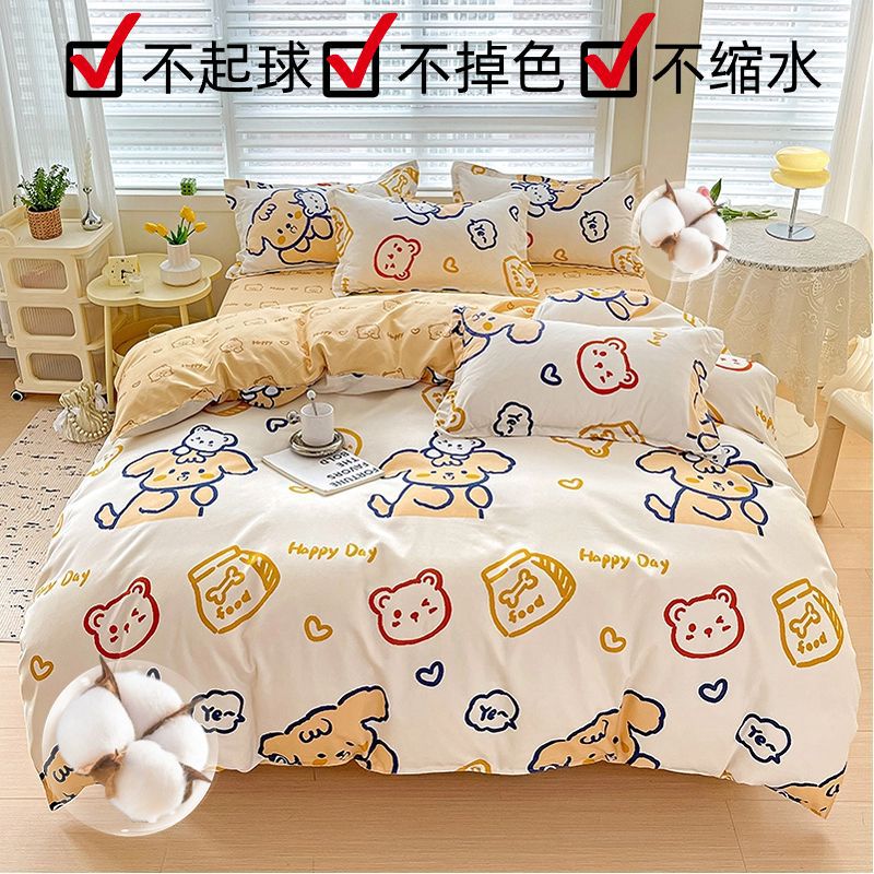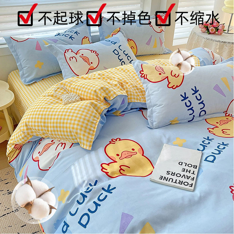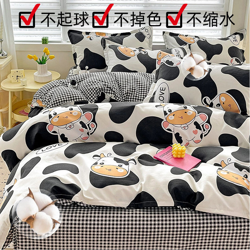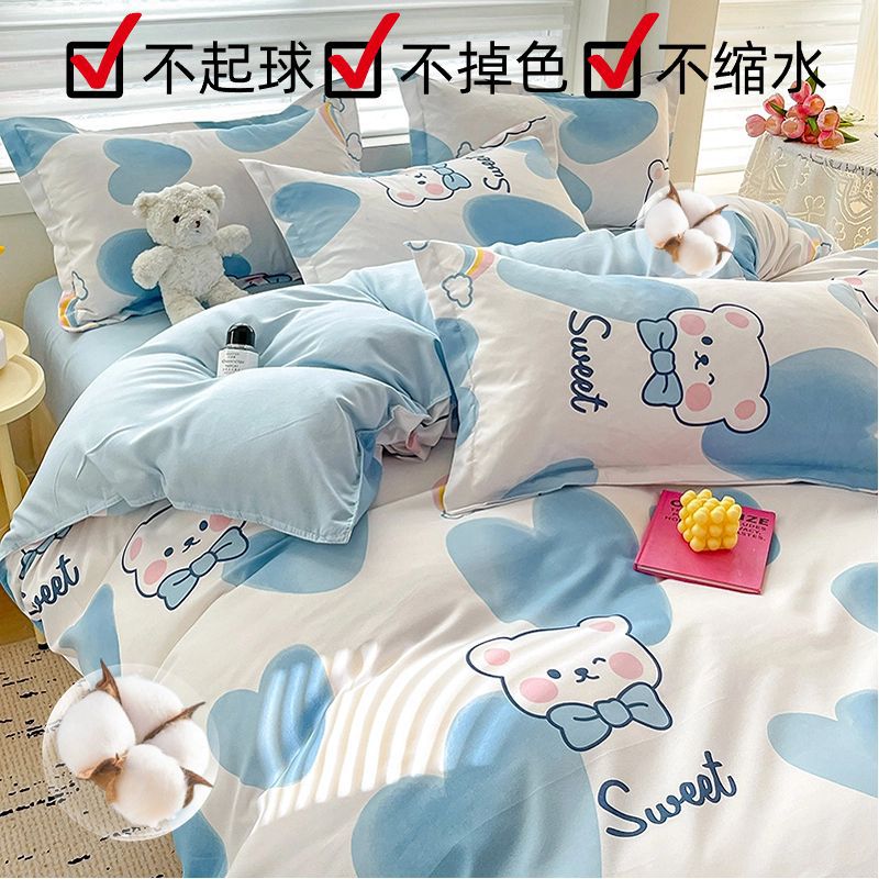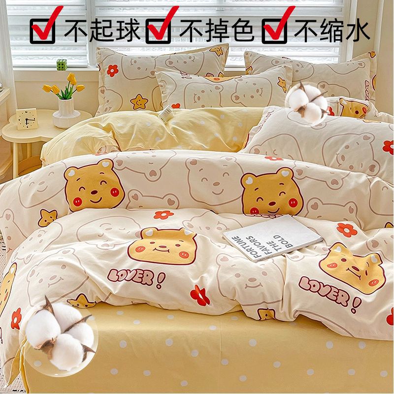 Утолщенные, приятные для кожи хлопковые простыни, пододеяльник из четырех предметов, саржевые простыни, комплект постельного белья из трех предметов в общежитии с героями мультфильмов