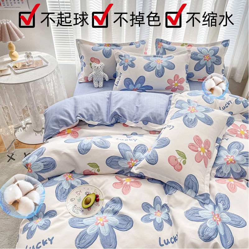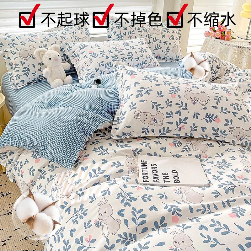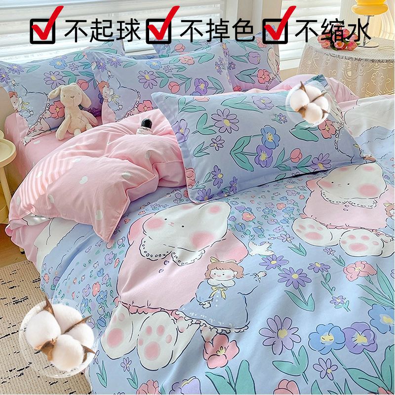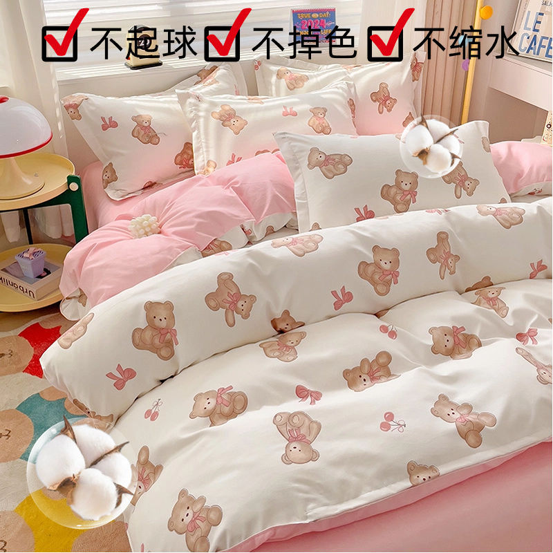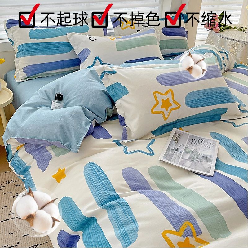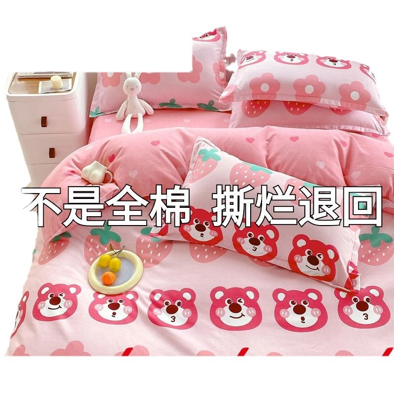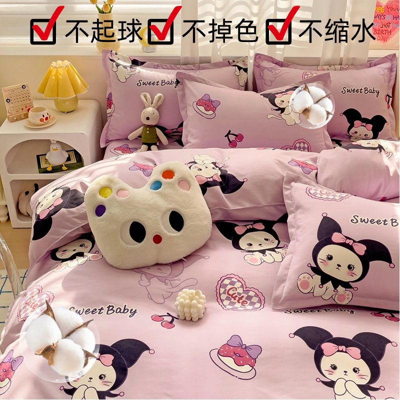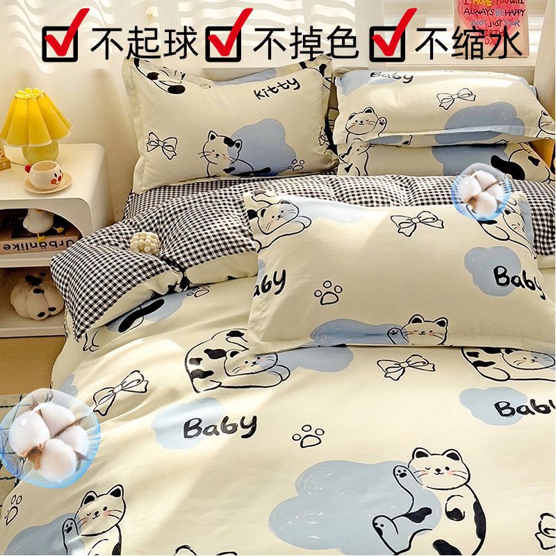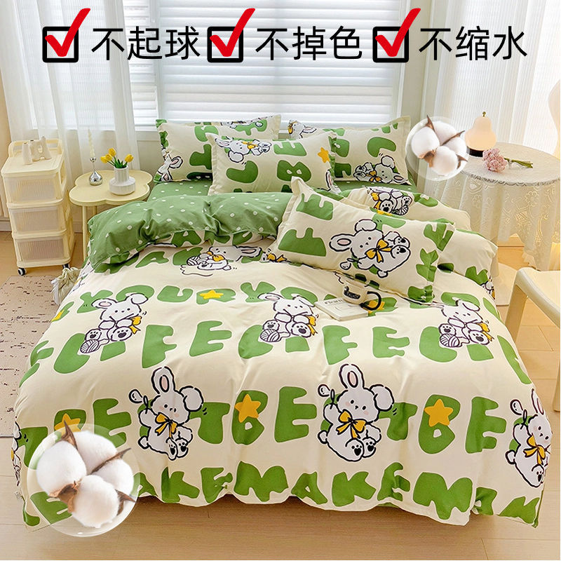 Утолщенные, приятные для кожи хлопковые простыни, пододеяльник из четырех предметов, саржевые простыни, комплект постельного белья из трех предметов в общежитии с героями мультфильмов