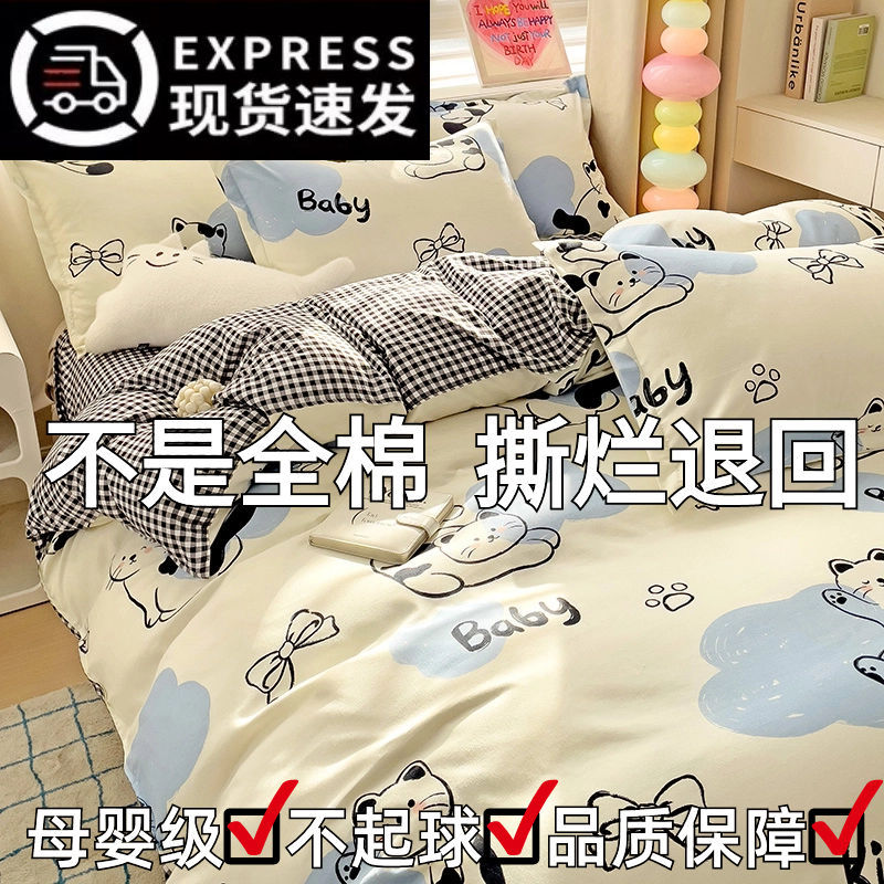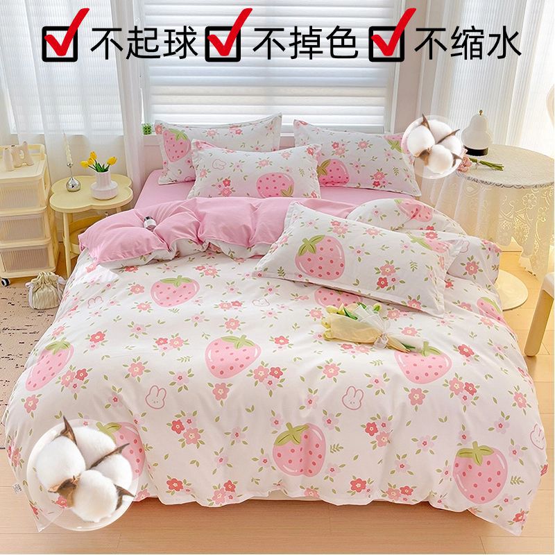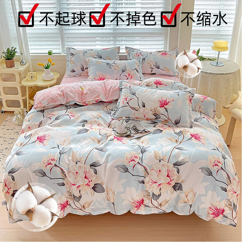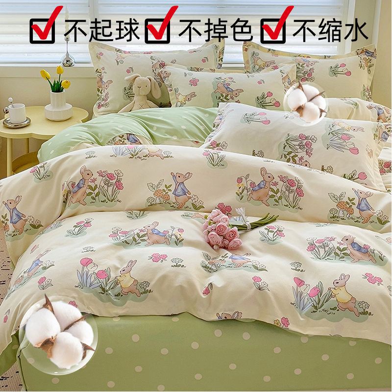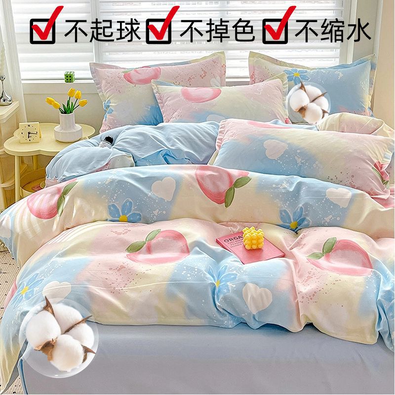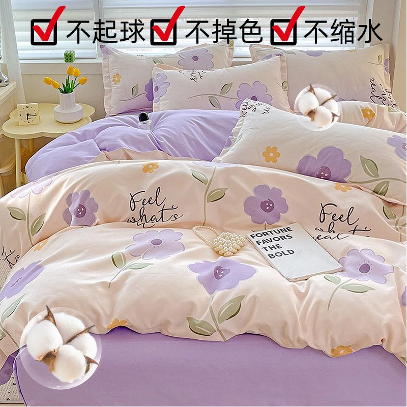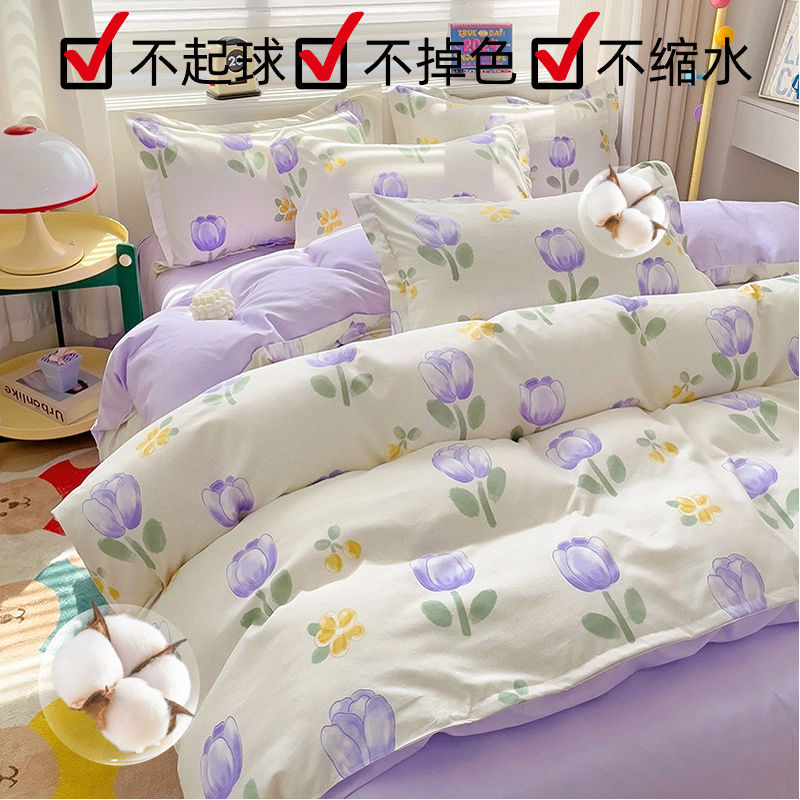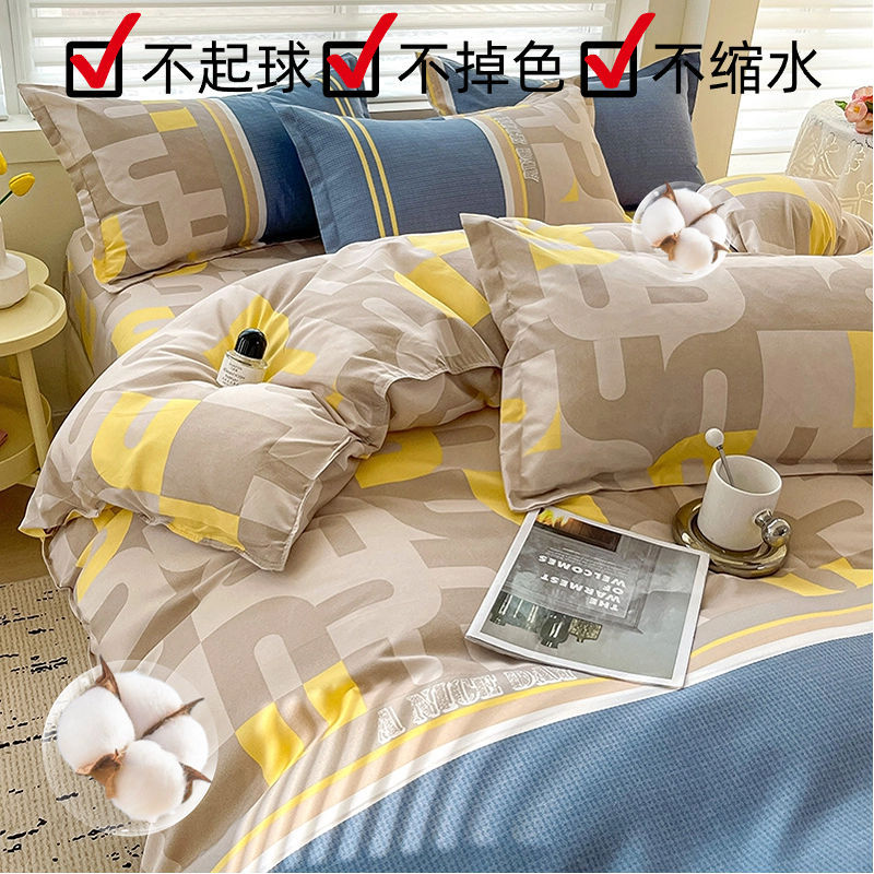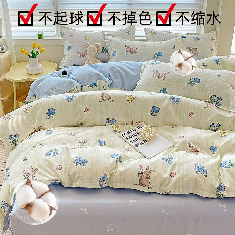 Утолщенные, приятные для кожи хлопковые простыни, пододеяльник из четырех предметов, саржевые простыни, комплект постельного белья из трех предметов в общежитии с героями мультфильмов