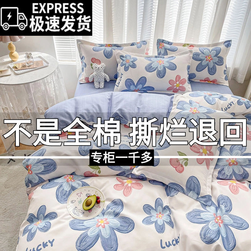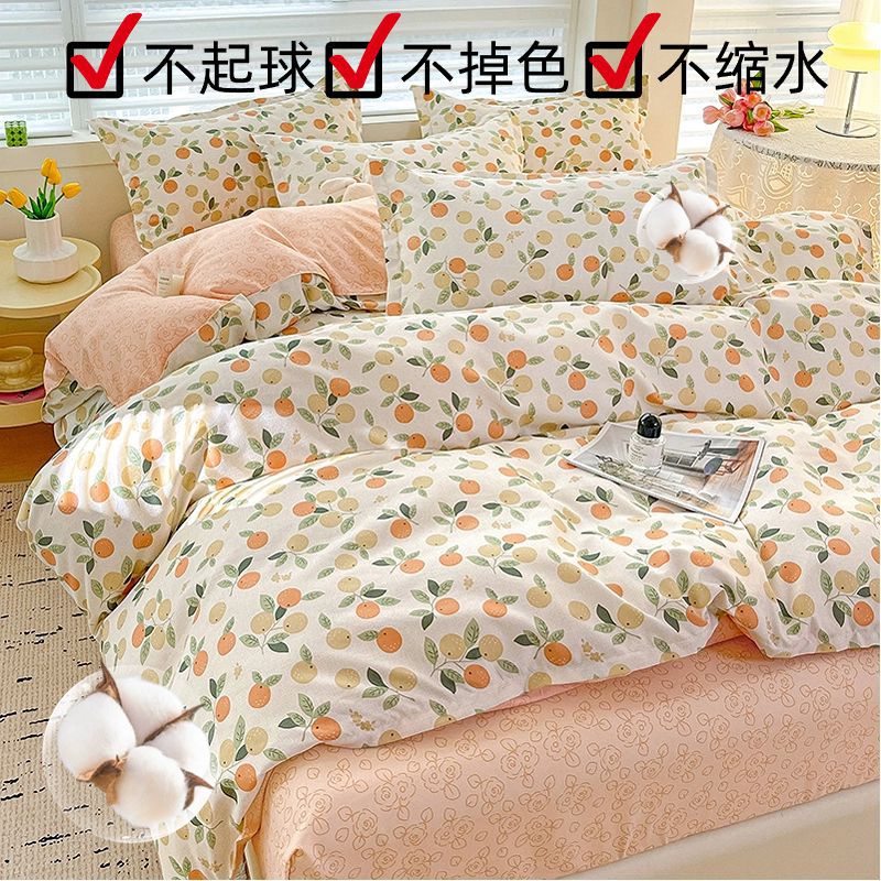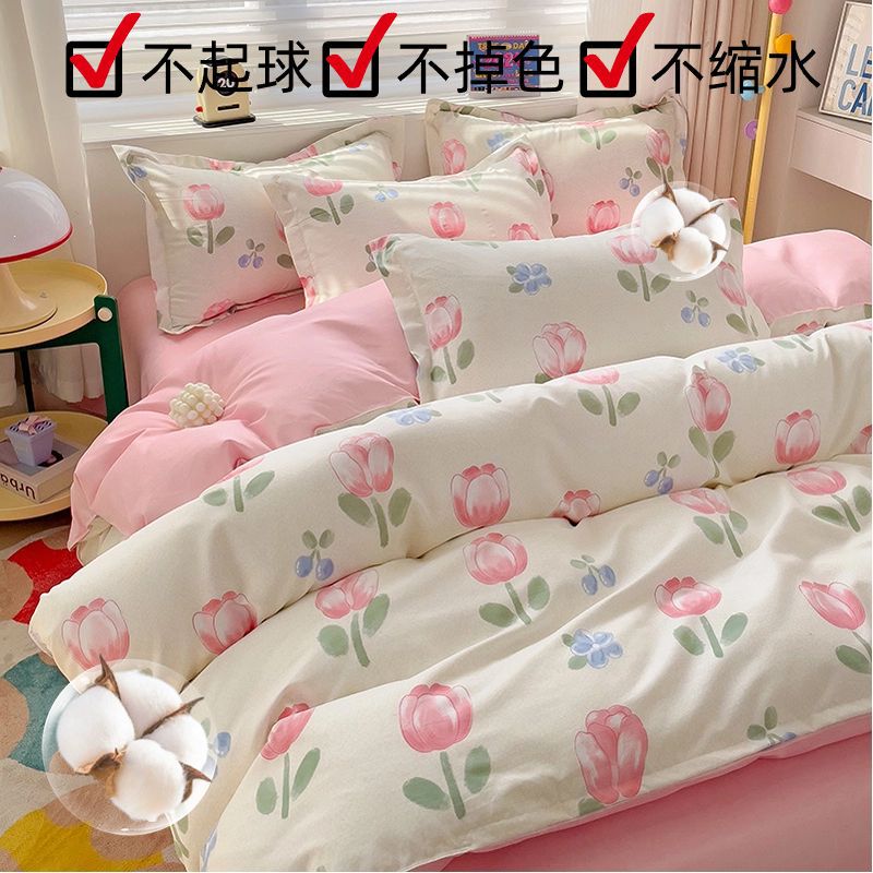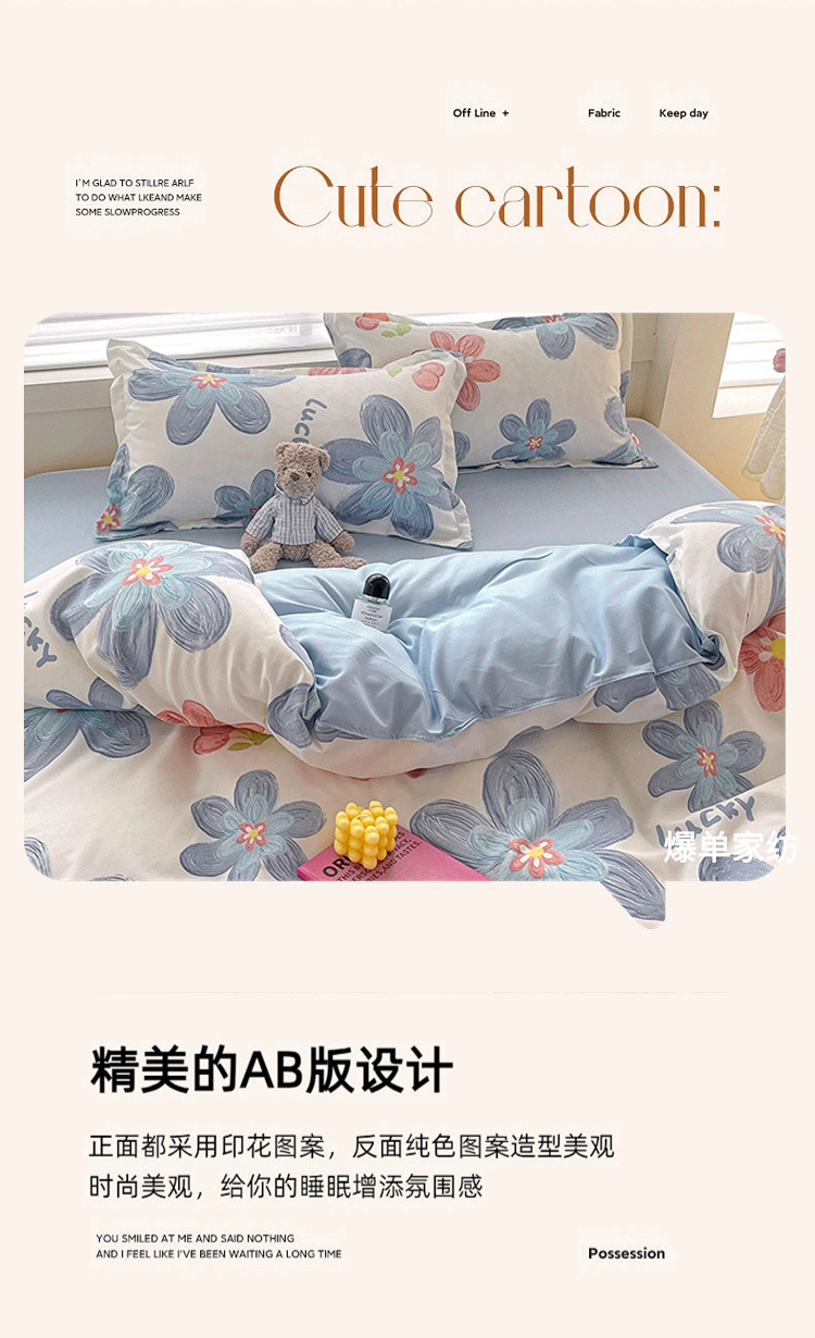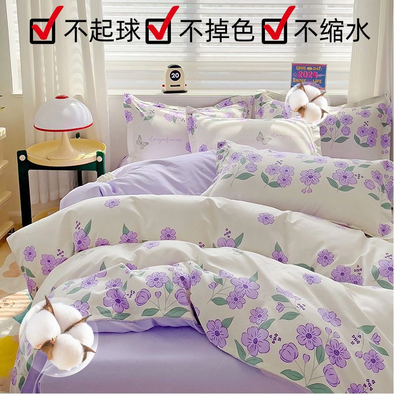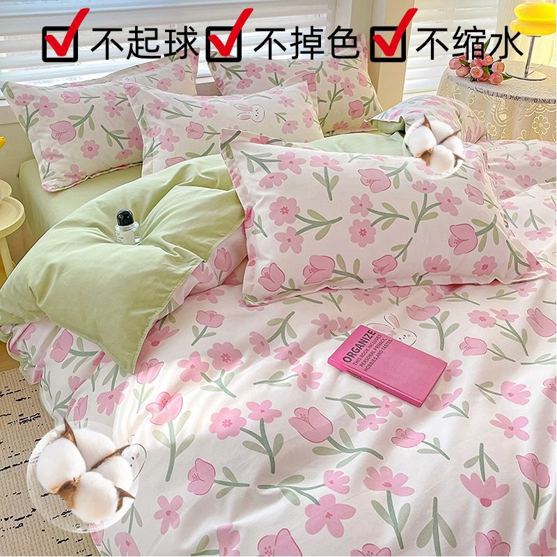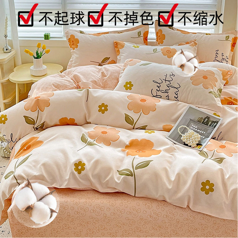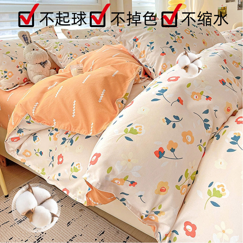 Утолщенные, приятные для кожи хлопковые простыни, пододеяльник из четырех предметов, саржевые простыни, комплект постельного белья из трех предметов в общежитии с героями мультфильмов