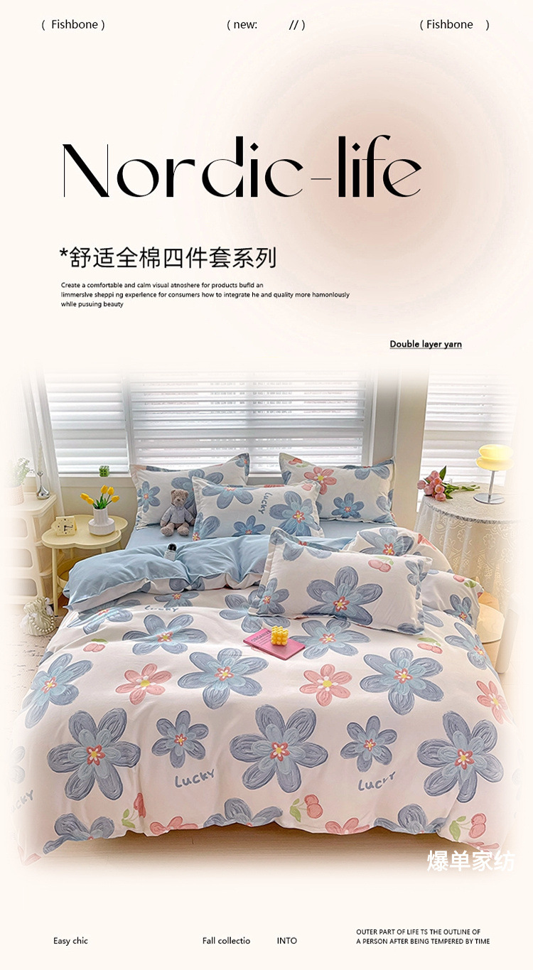 Комплект из трех предметов 1.2: пододеяльник 150*200 + простыни + наволочки; Набор из 1,5 четырех предметов [квидратный чехол 1,5*2,0 + простыни, 2 наволочки; Набор из четырех предметов 1,8] Пододеяльник 1,8*2,2 + 2 простыни и наволочки; Комплект из четырех предметов 2.0 [квивалент 2.0*2,3 + простыни 2 наволочки