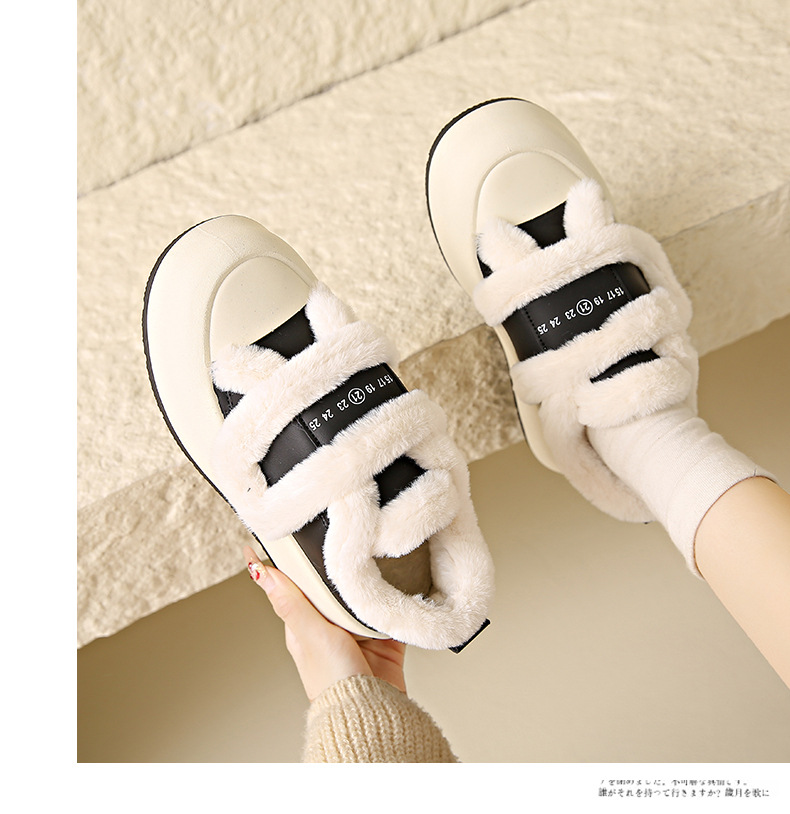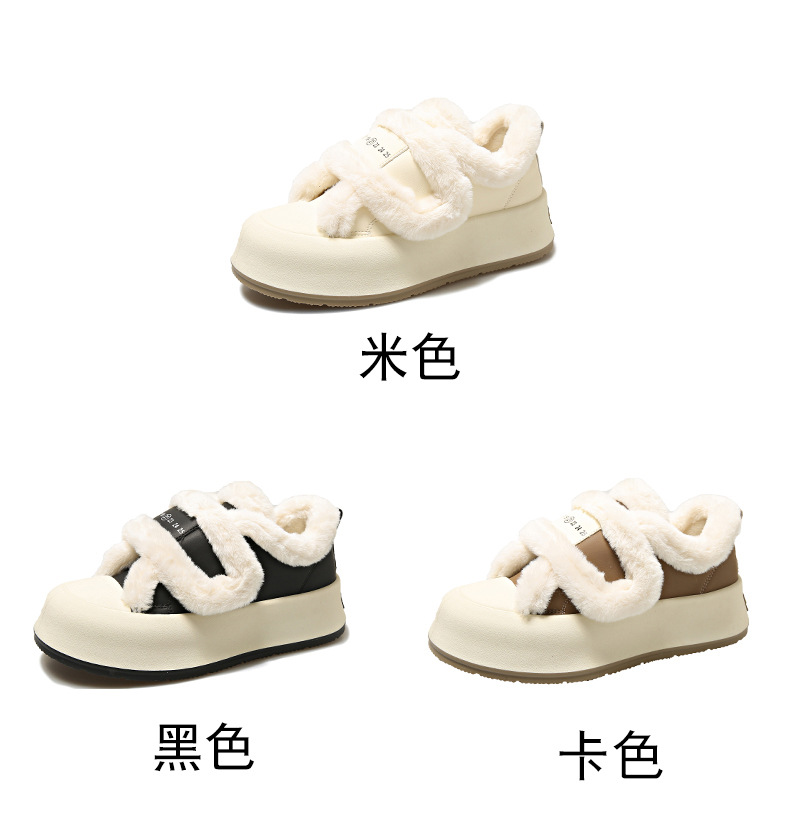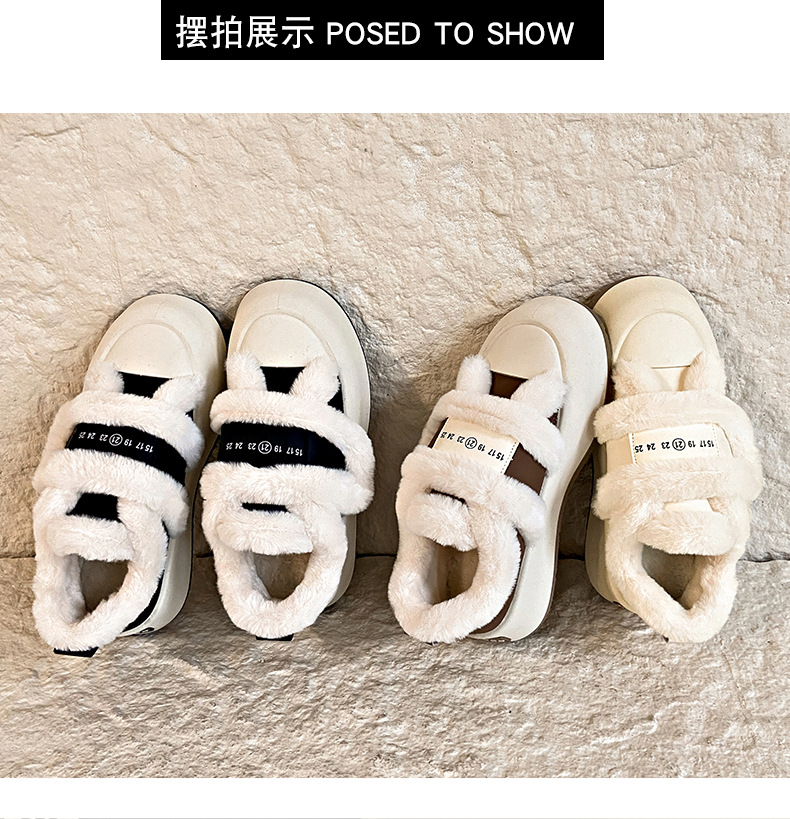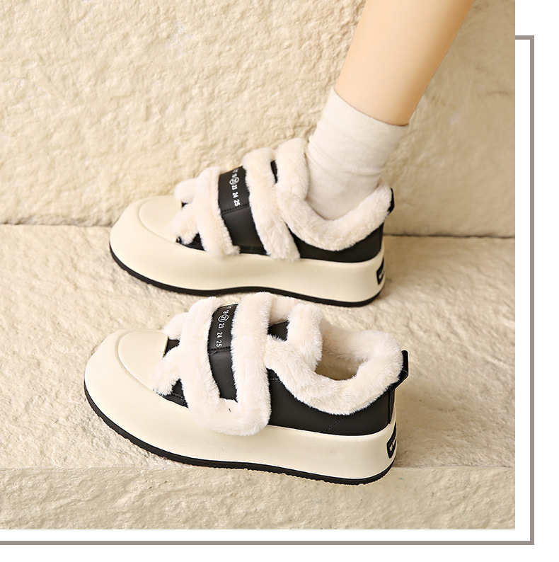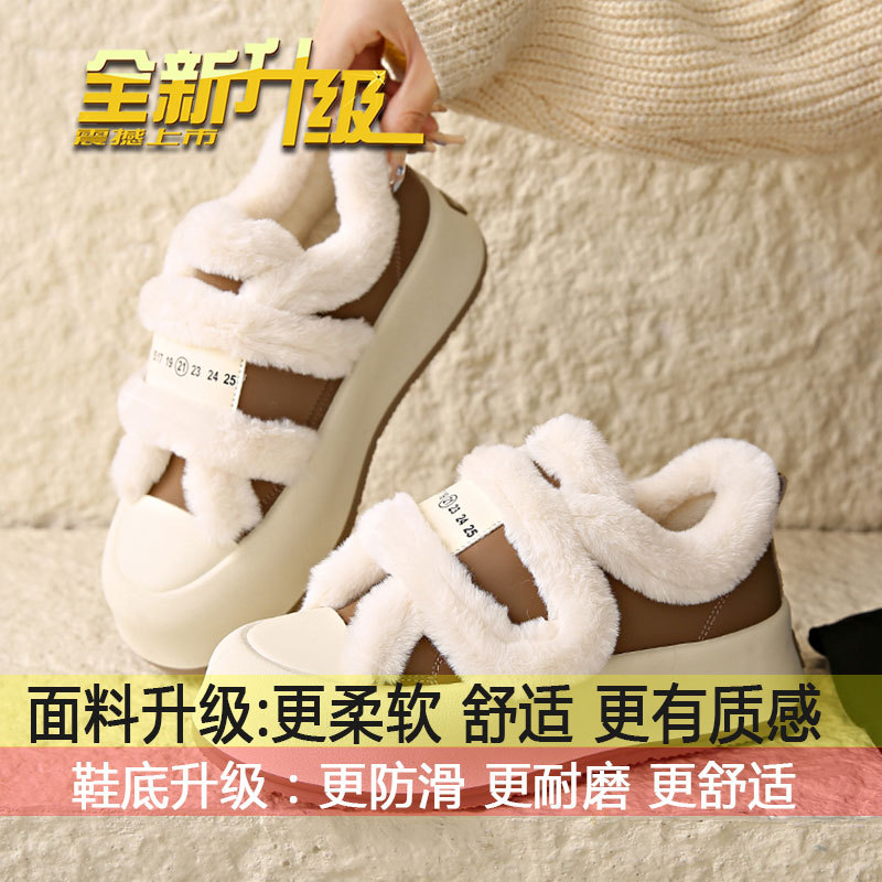 Симпатичные бархатные липучки хлопчатобумажные туфли для женщин осень 2024 новая наружная нескользящая толстая подошва теплая хлебобулочные туфли