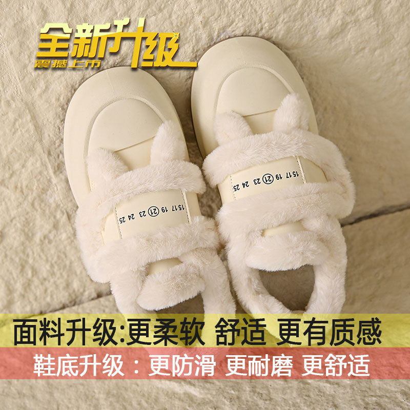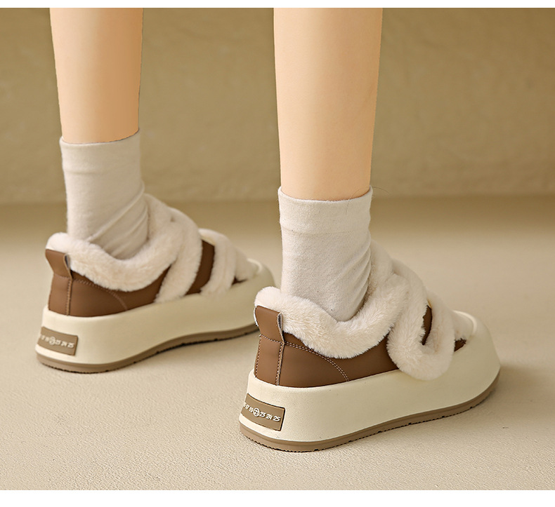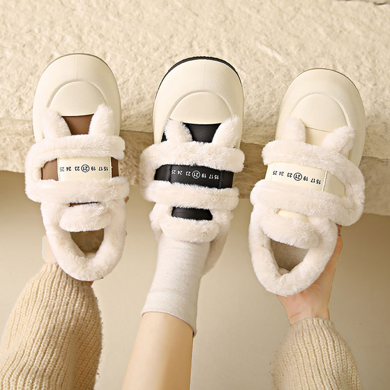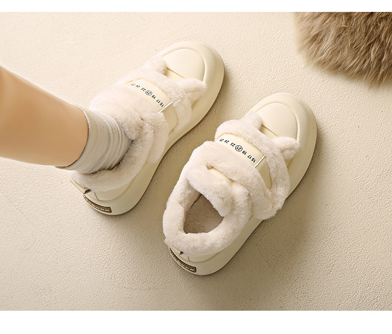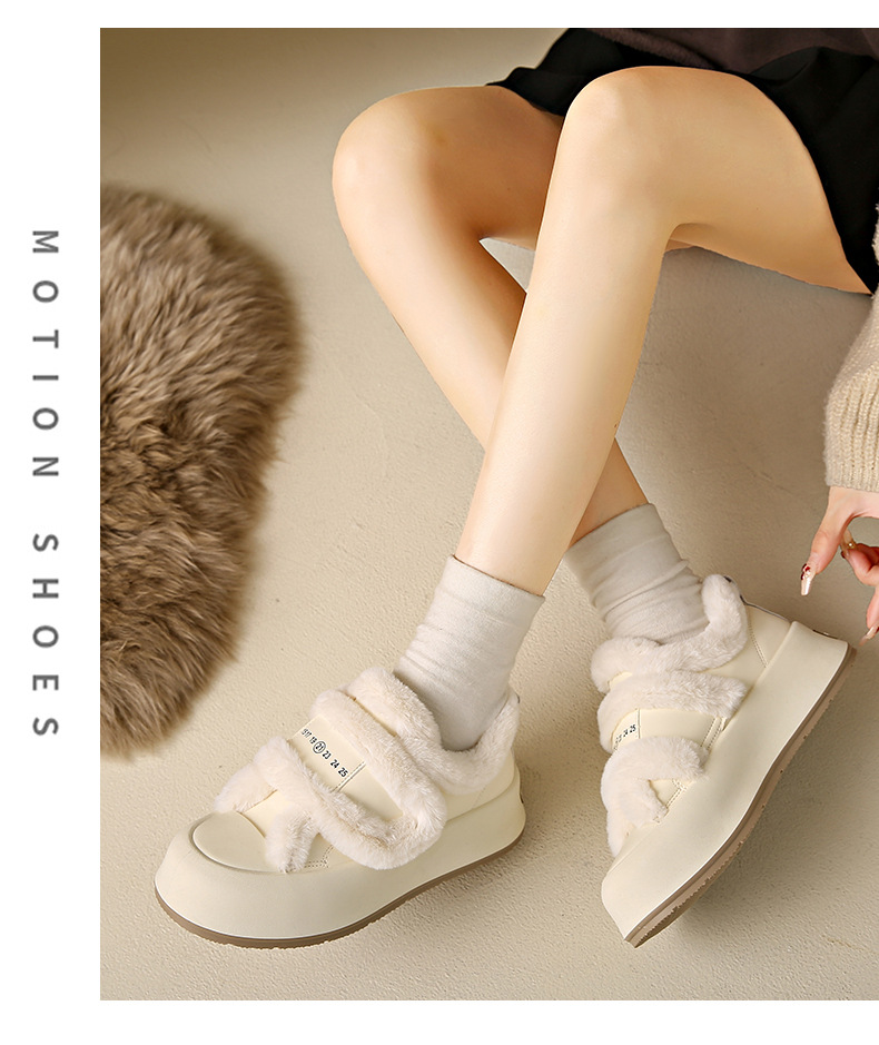 Симпатичные бархатные липучки хлопчатобумажные туфли для женщин осень 2024 новая наружная нескользящая толстая подошва теплая хлебобулочные туфли