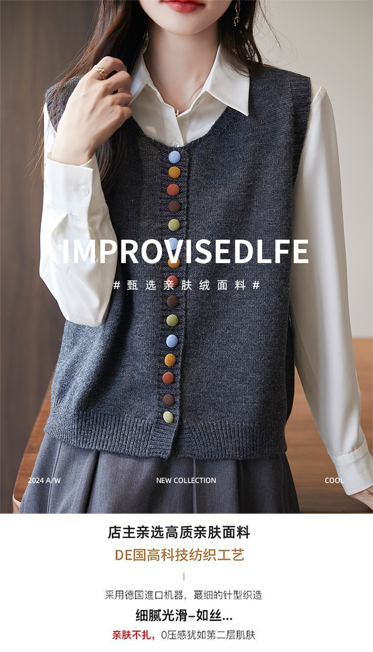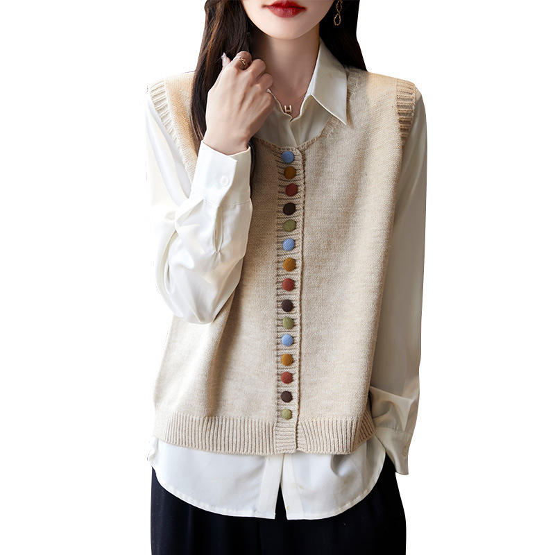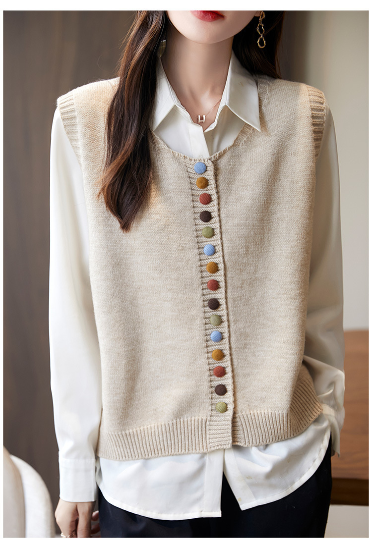 Оптовая продажа ранняя осень 2024 новый ретро вязаный кардиган с круглым вырезом