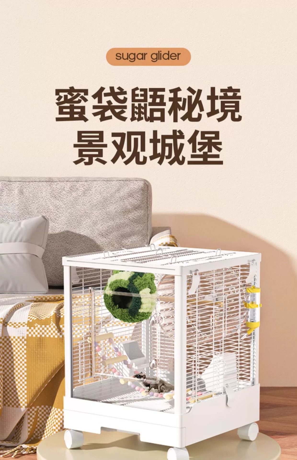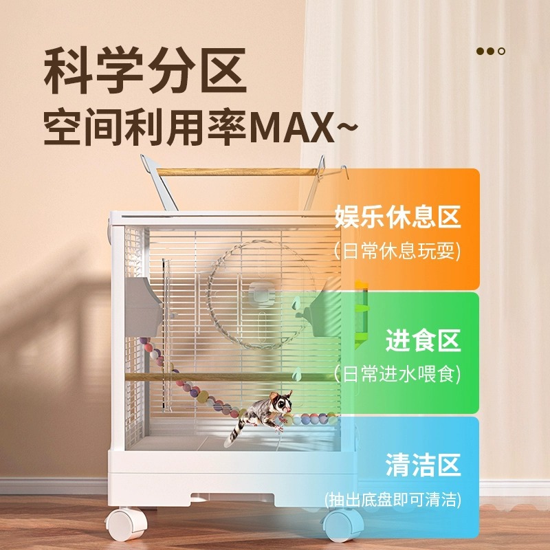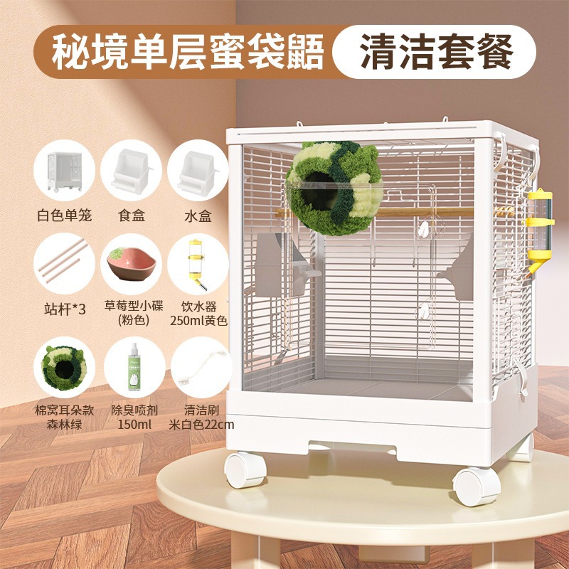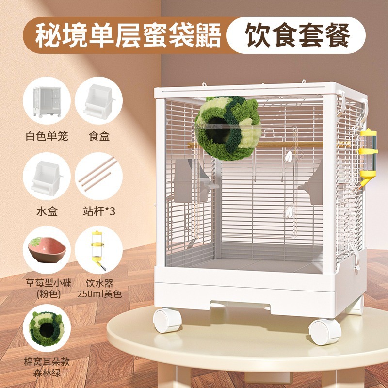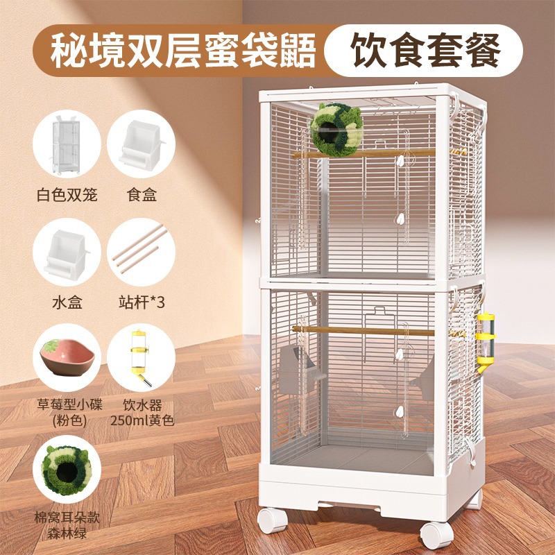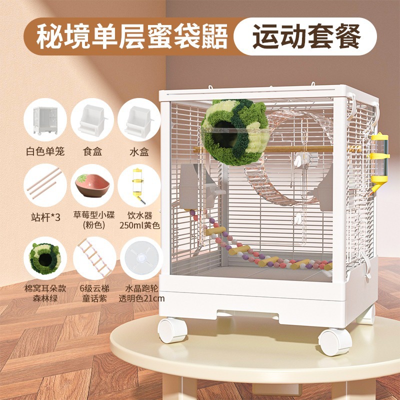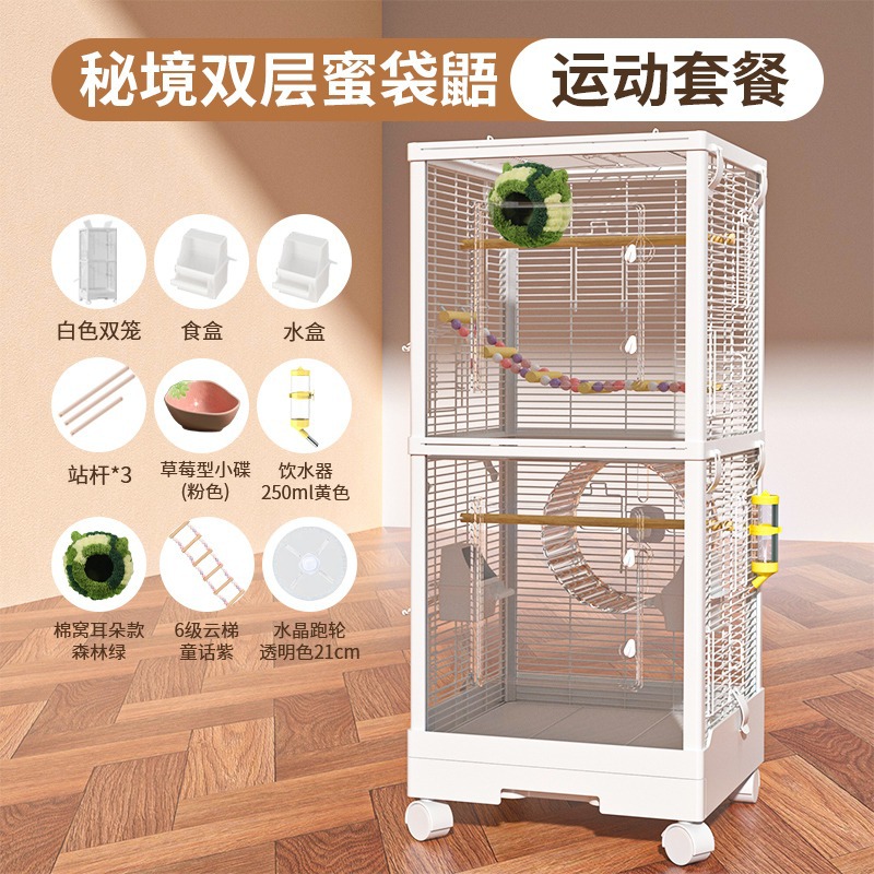 Медовая сумка в клетке для кормления Акриловый поперечный шелк двухъярусный мобильный замок Белка цветочная крыса летучая крыса Роскошная вилла