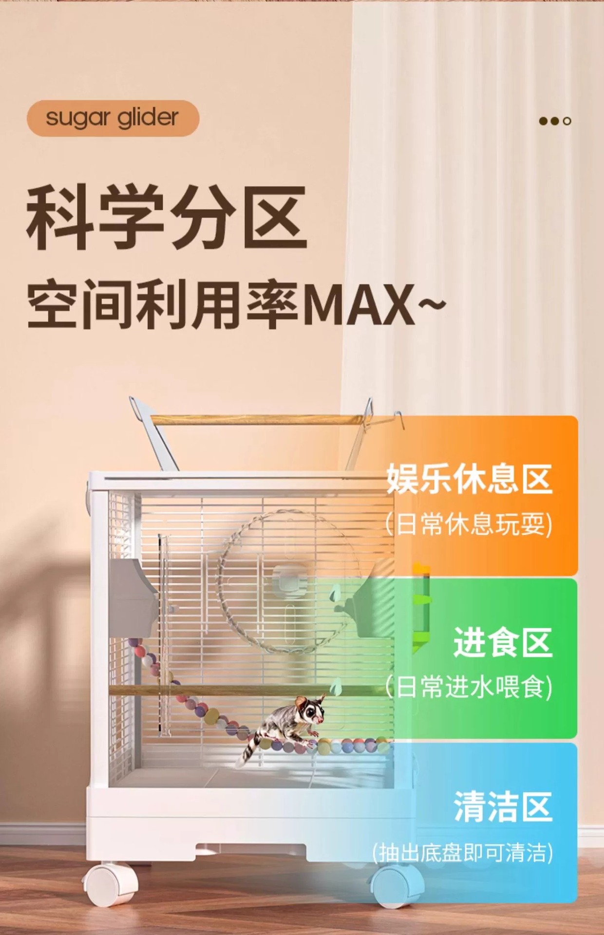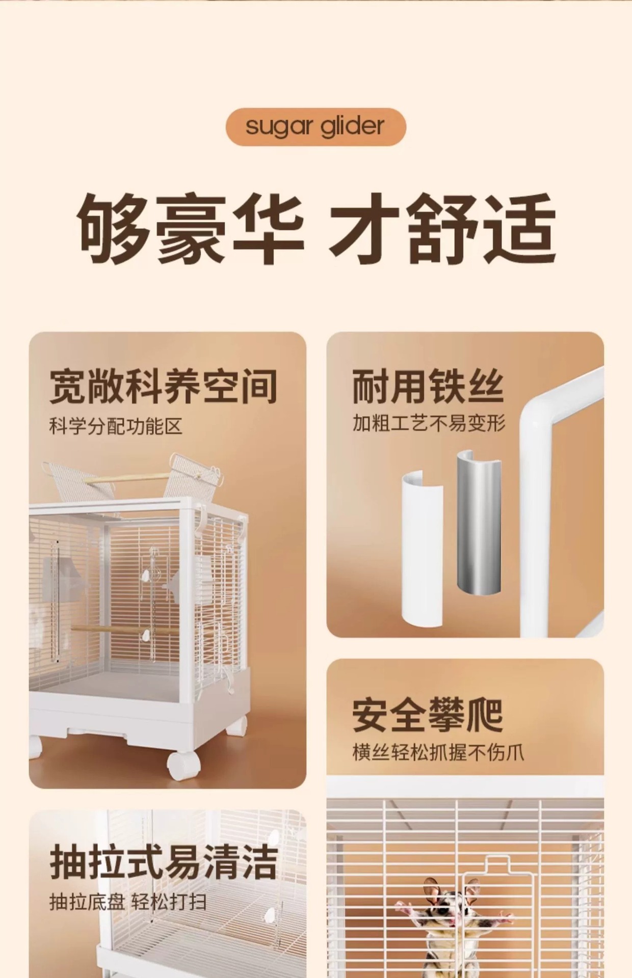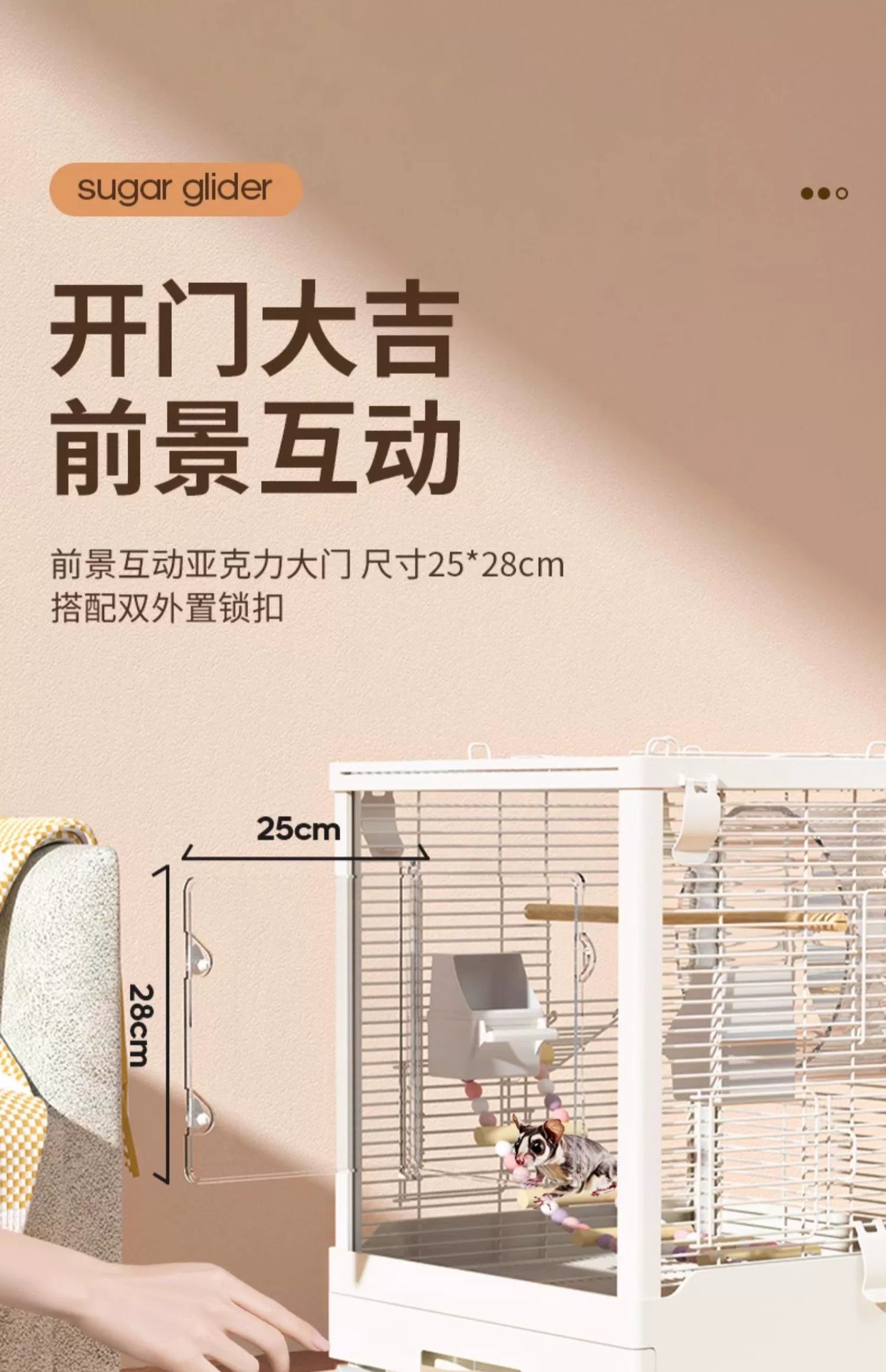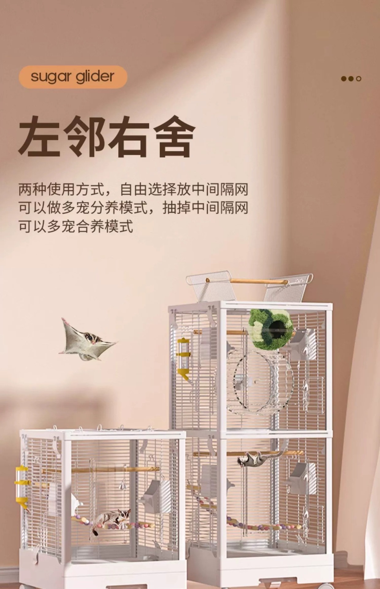 Медовая сумка в клетке для кормления Акриловый поперечный шелк двухъярусный мобильный замок Белка цветочная крыса летучая крыса Роскошная вилла