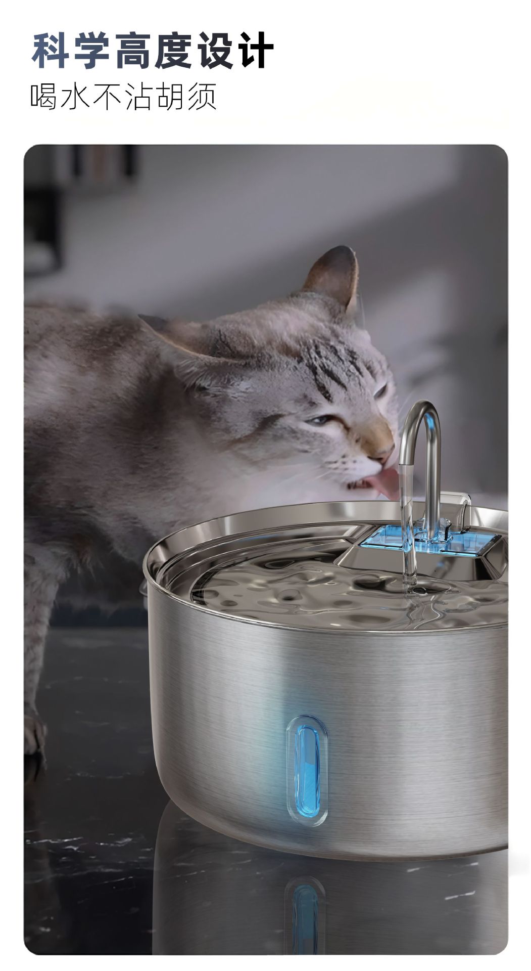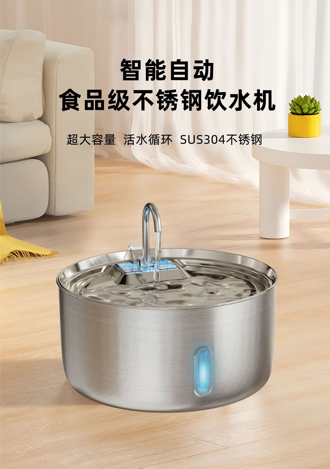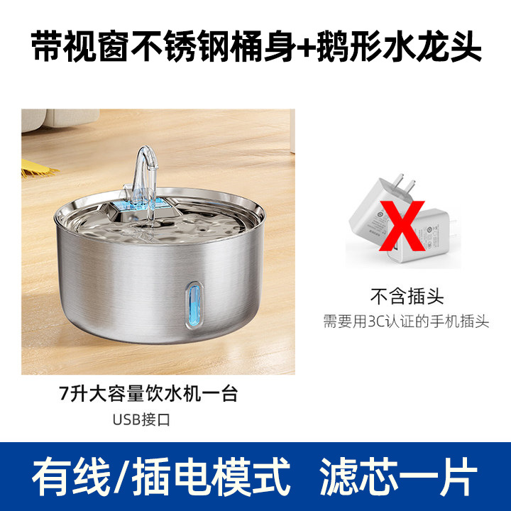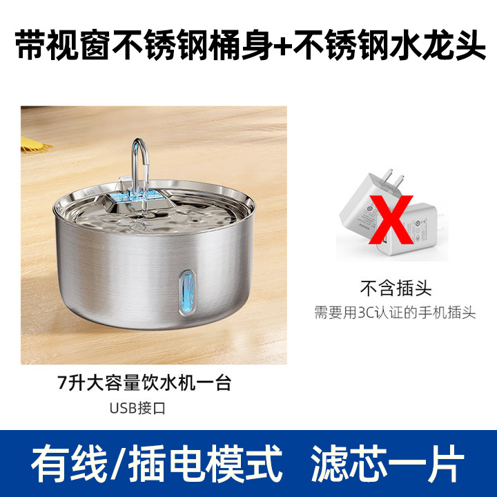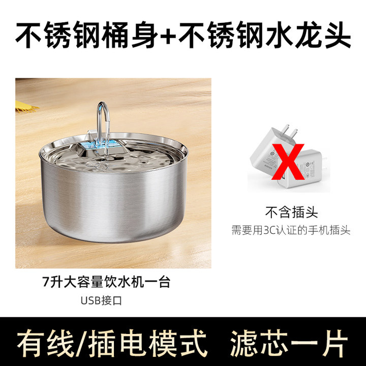 Автоматическая фильтрующая циркуляционная поилка для кошек и собак из нержавеющей стали с проводным подключением и интеллектуальным управлением