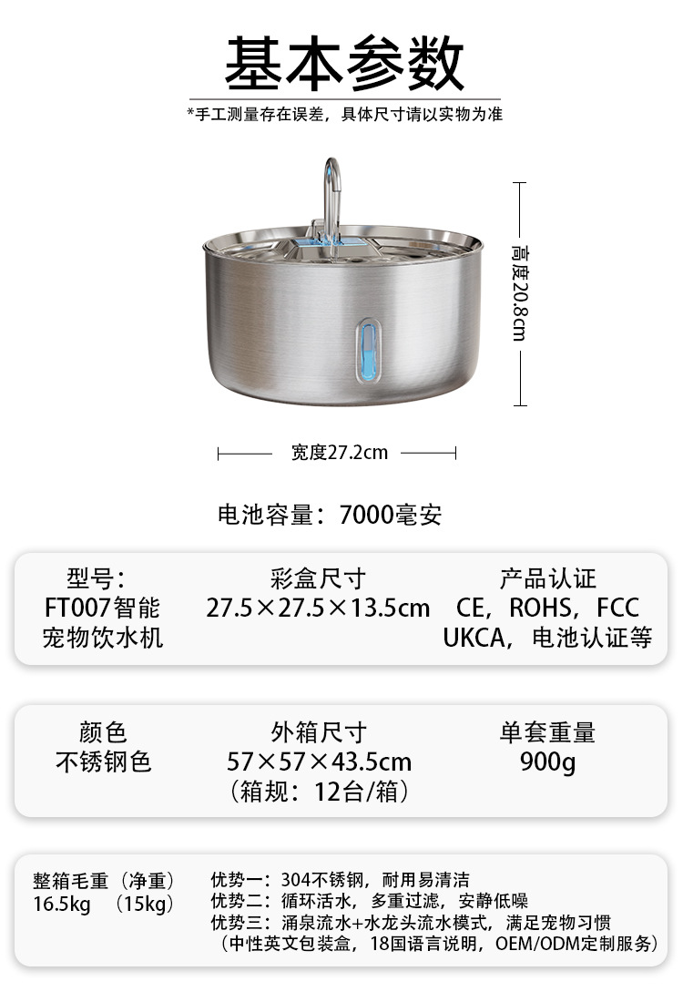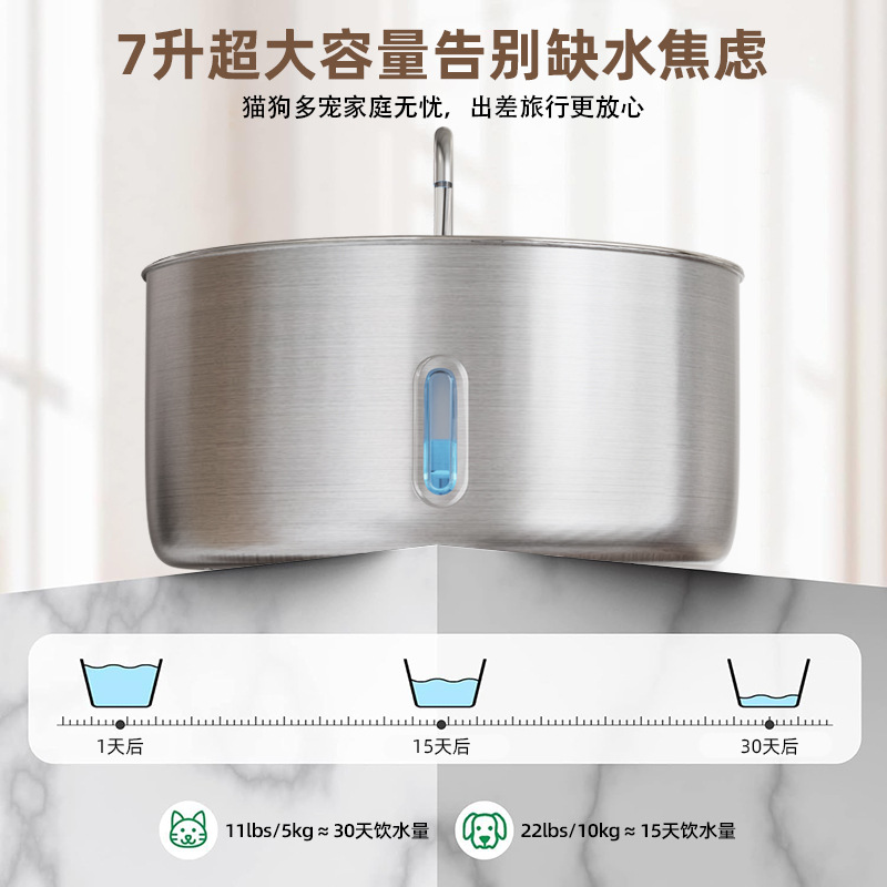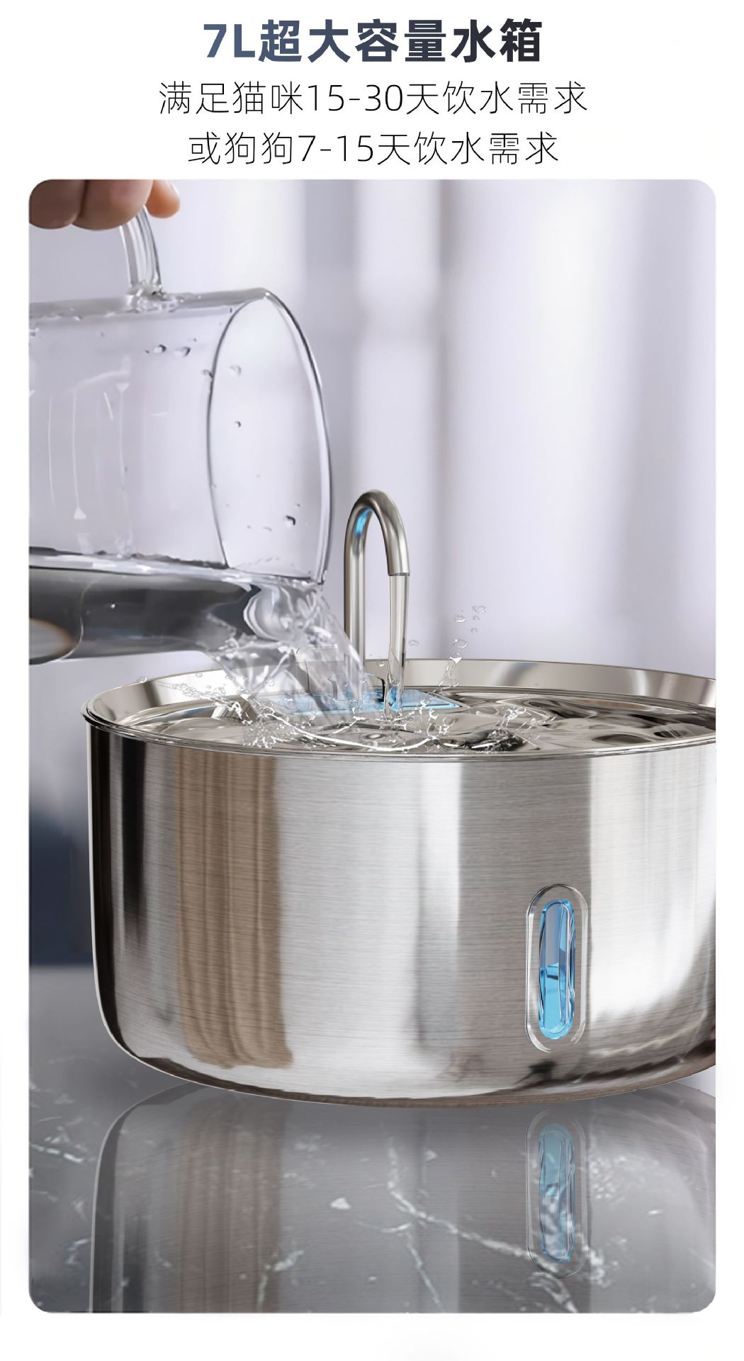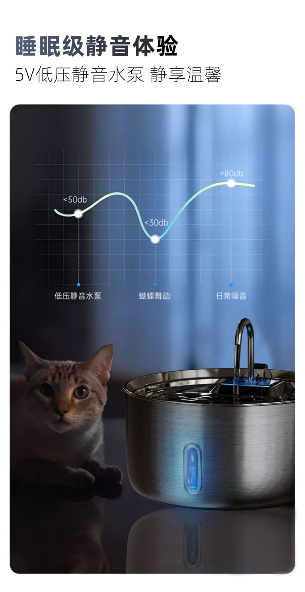 Автоматическая фильтрующая циркуляционная поилка для кошек и собак из нержавеющей стали с проводным подключением и интеллектуальным управлением