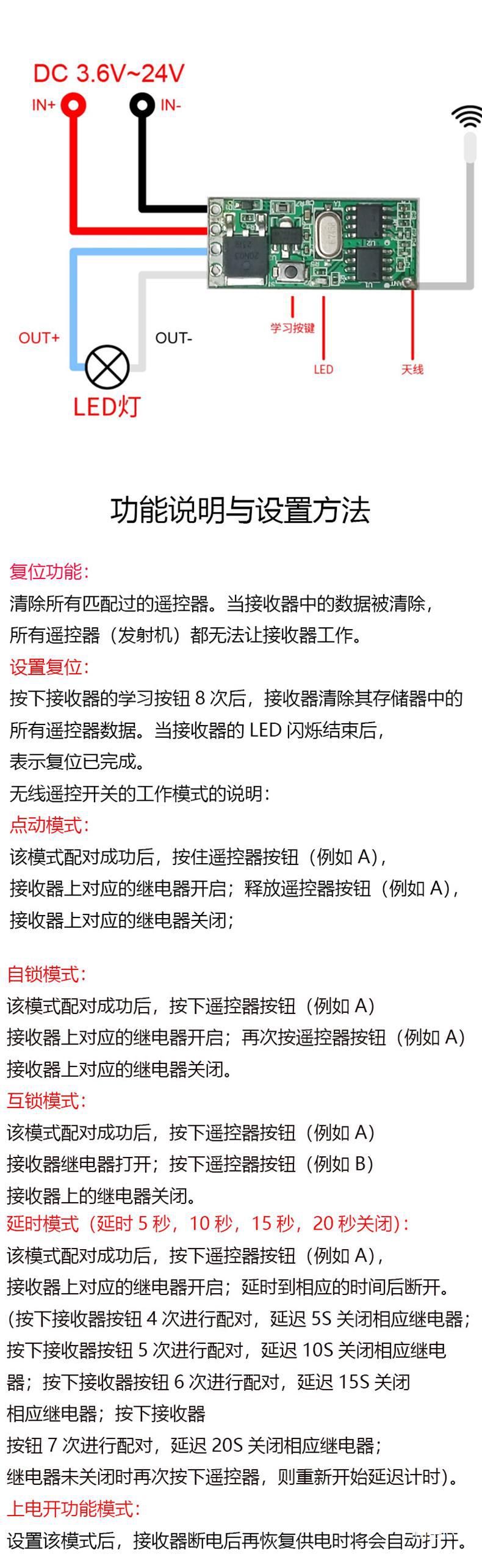 Беспроводной модуль пульта дистанционного переключения с низким энергопотреблением небольшой DC 3.7V4.5V9V12V24V батареи питания светодиодная лампа