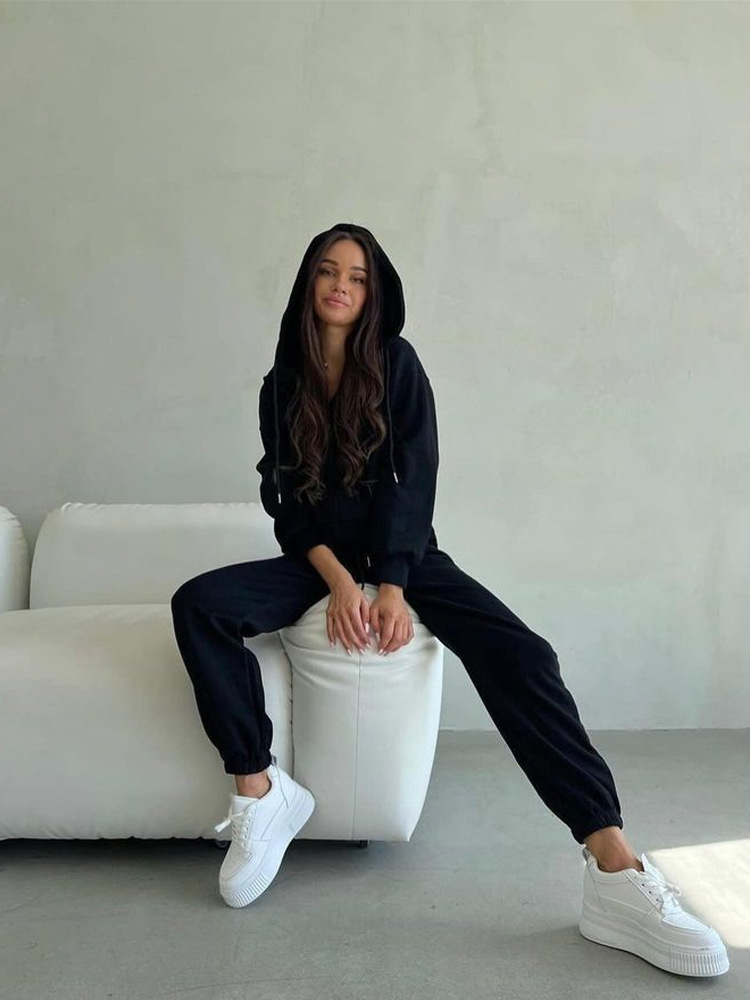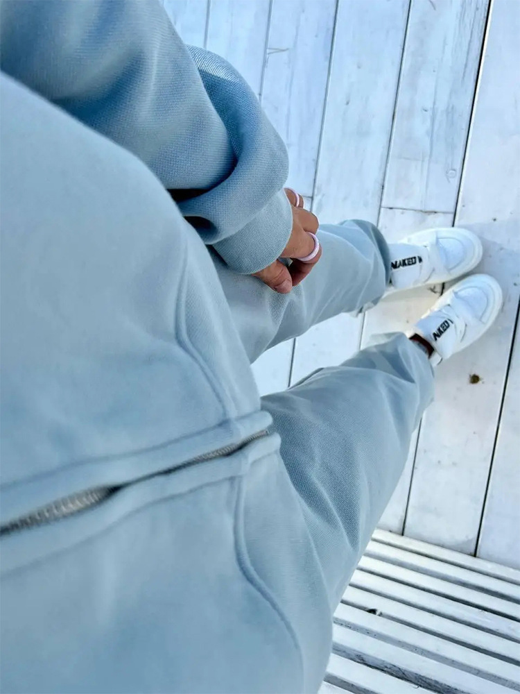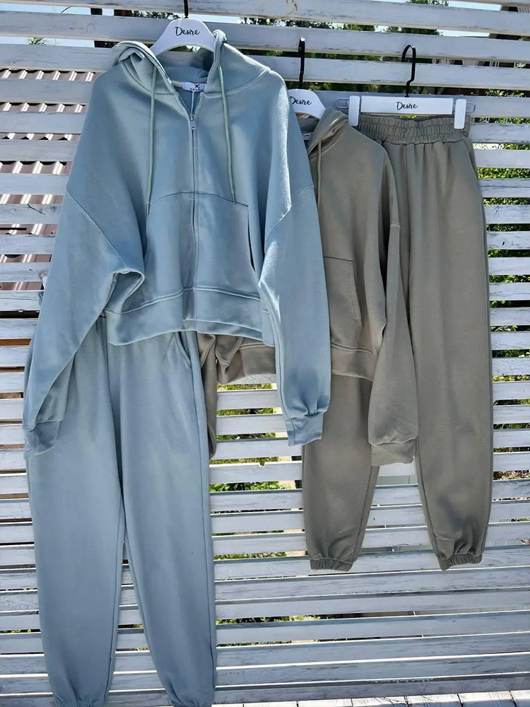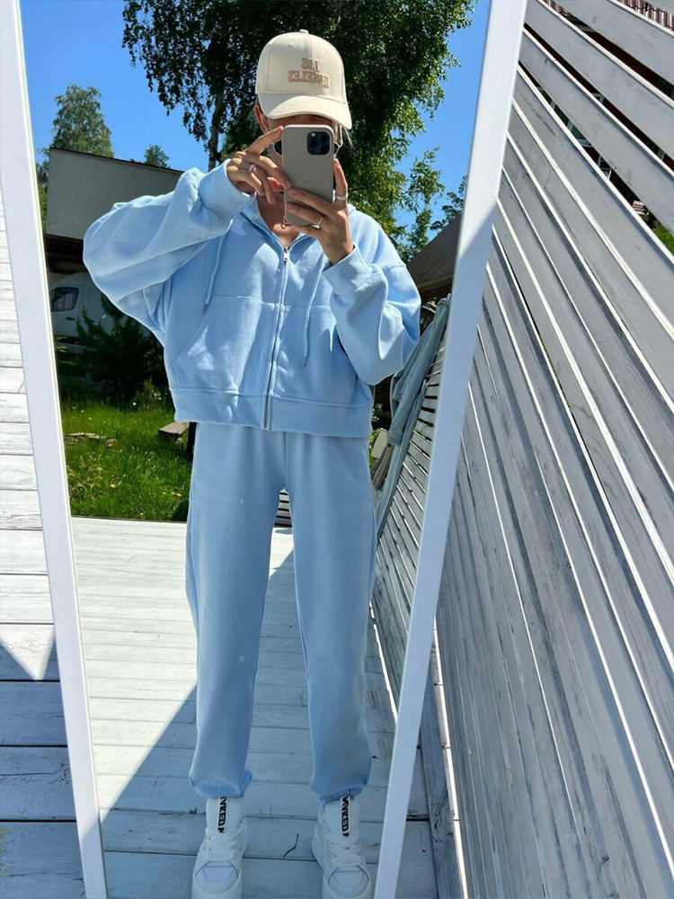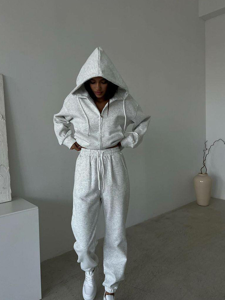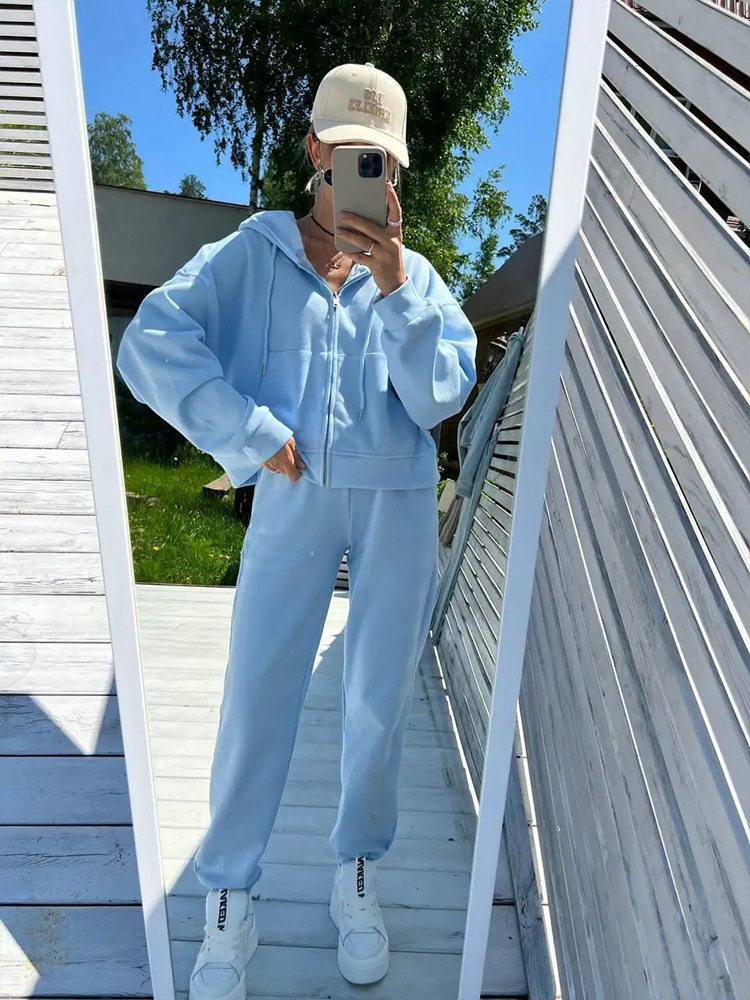Amazon трансграничный повседневный европейский и американский женский костюм сплошной цвет толстовка на молнии с длинными рукавами из двух частей