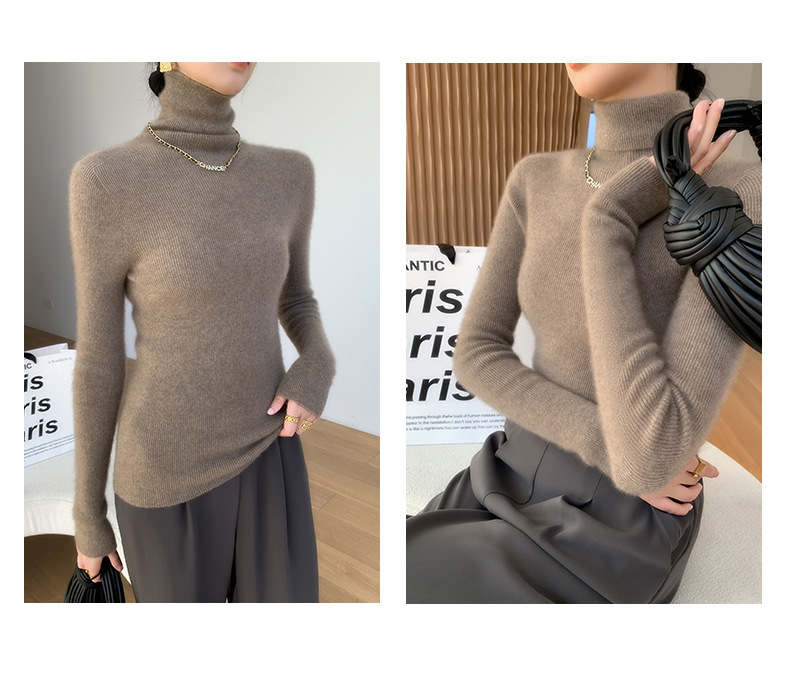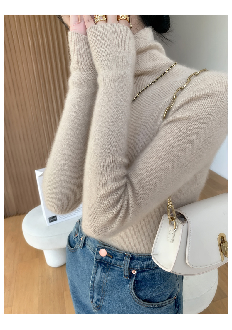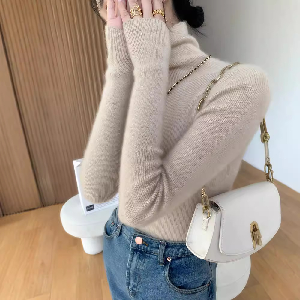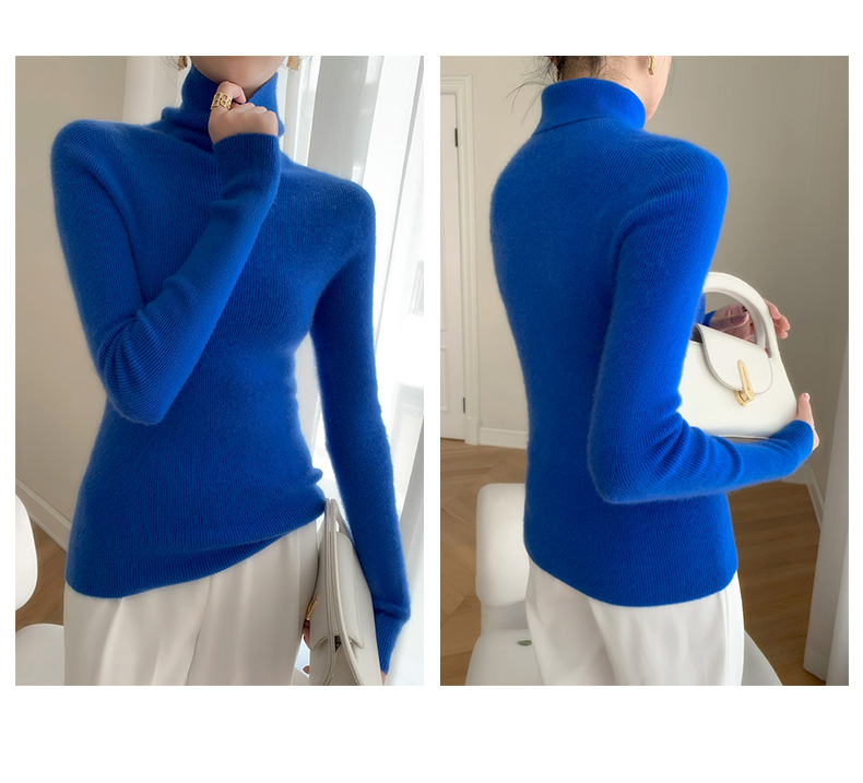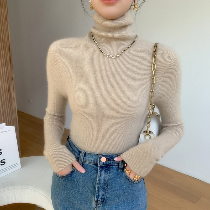 Высокие воротнички кашемировый свитер дамы сплошной цвет галстуков нижний свитер тонкий свитер, трикотажный топ осенью и зимой