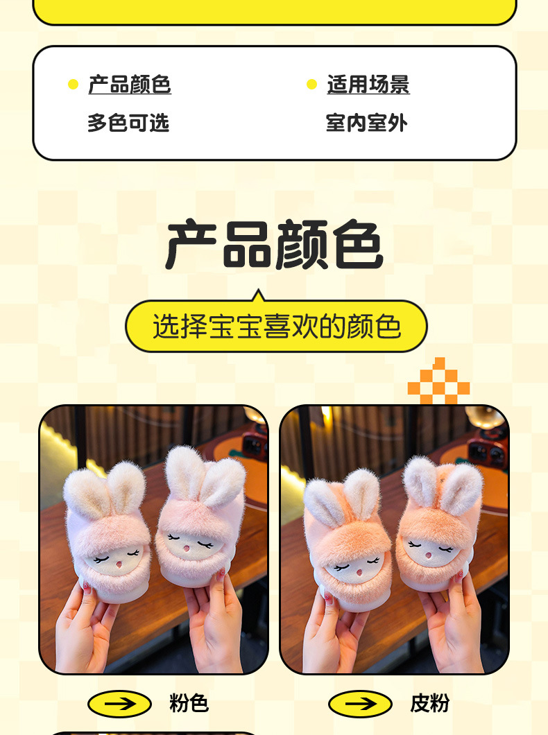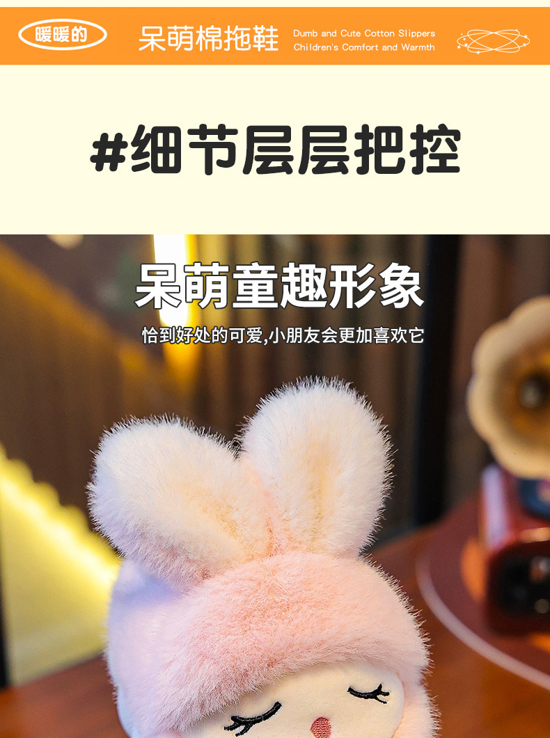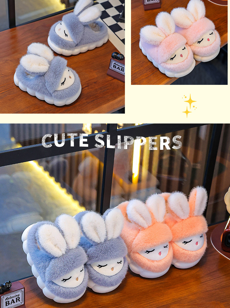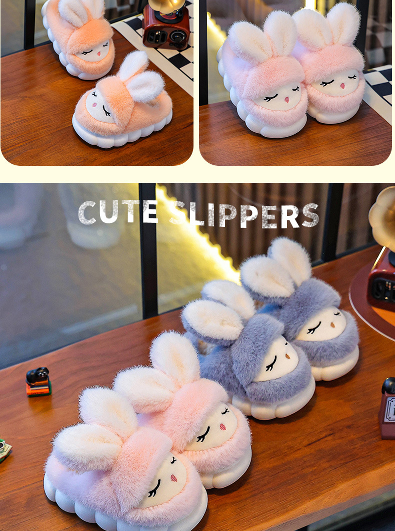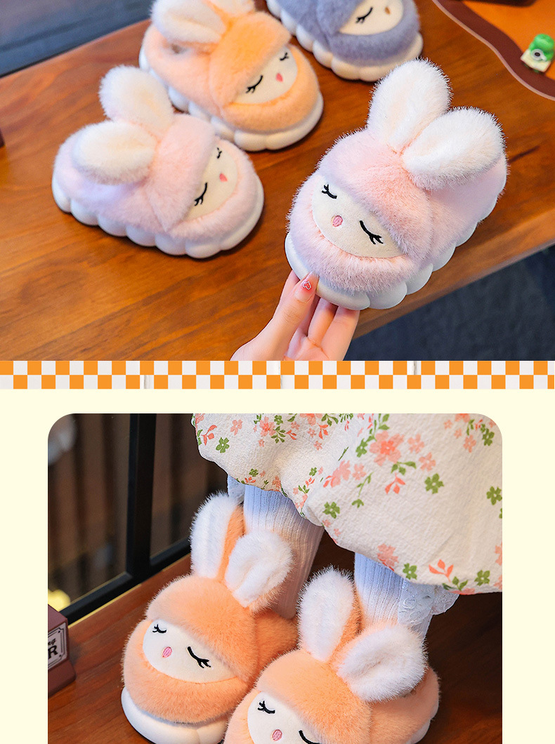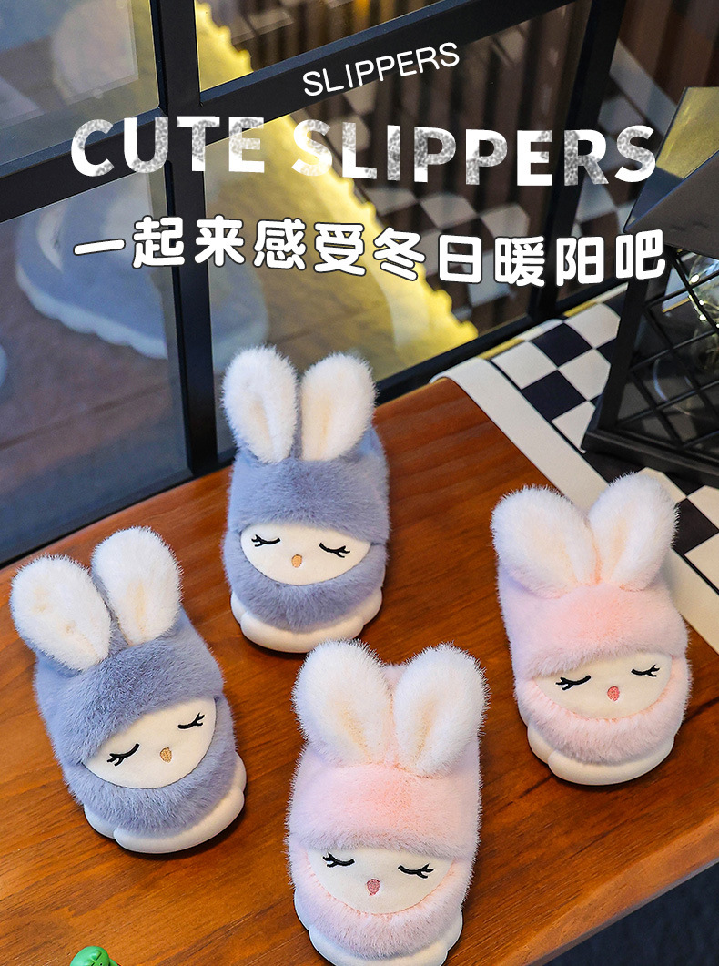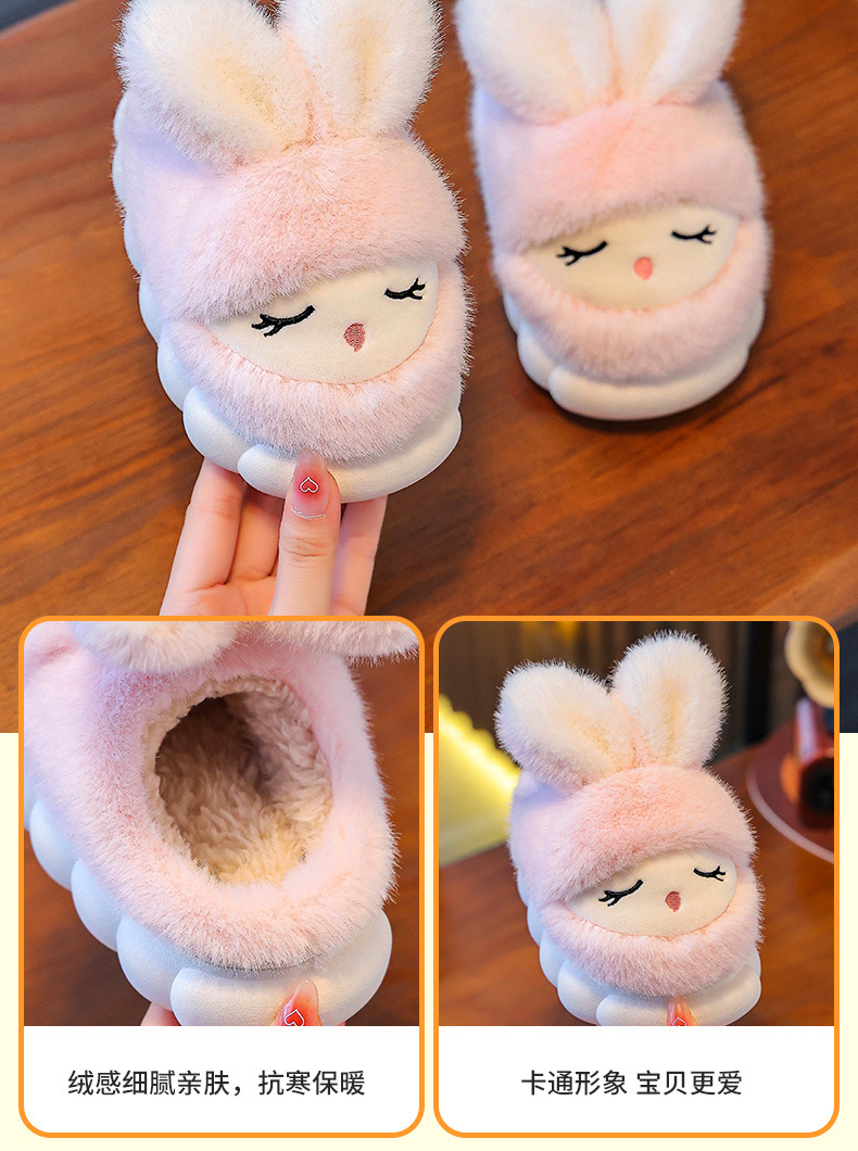 Зимние детские хлопчатобумажные тапочки милые кролики теплые и бархатные девочки родители-дети домашние противоскользящие хлопчатобумажные туфли на толстой подошве