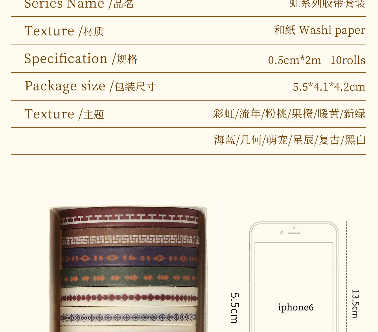 Ретро Радуга серии и бумажная лента Мода ручная лента Материал Лента высокого уровня Чувство Разделения Линия границы Ручная лента