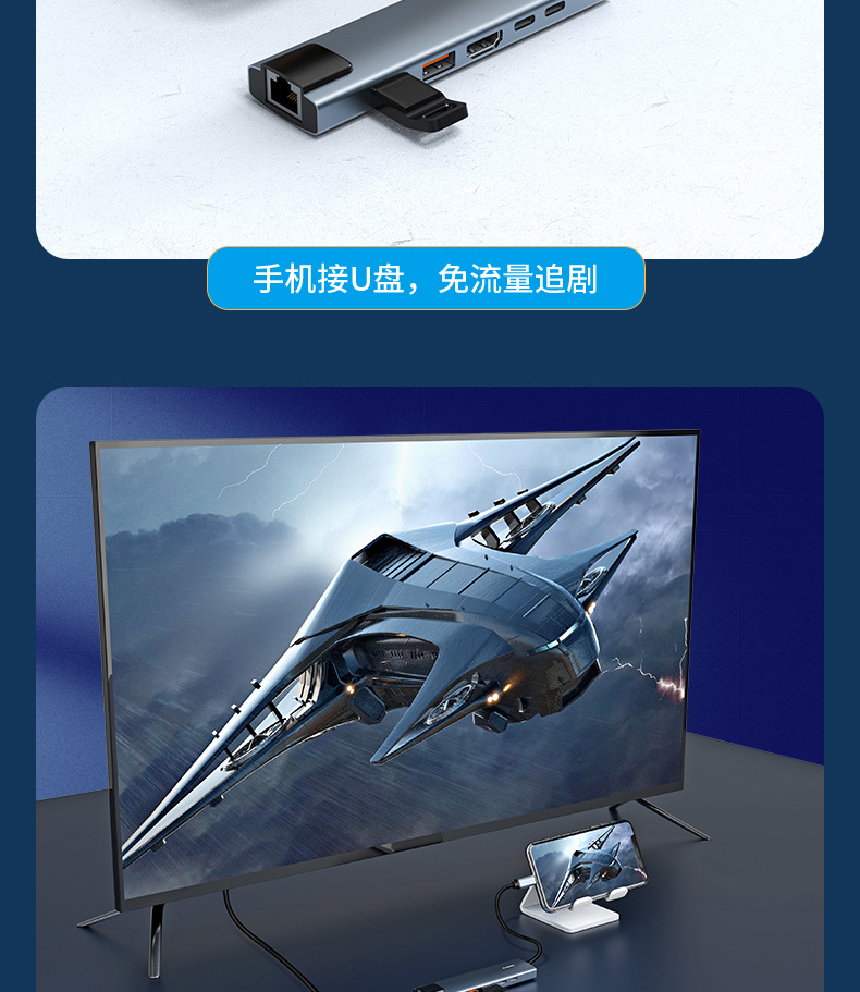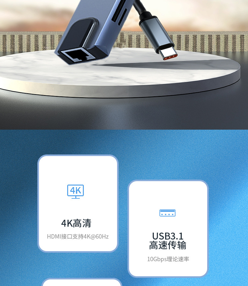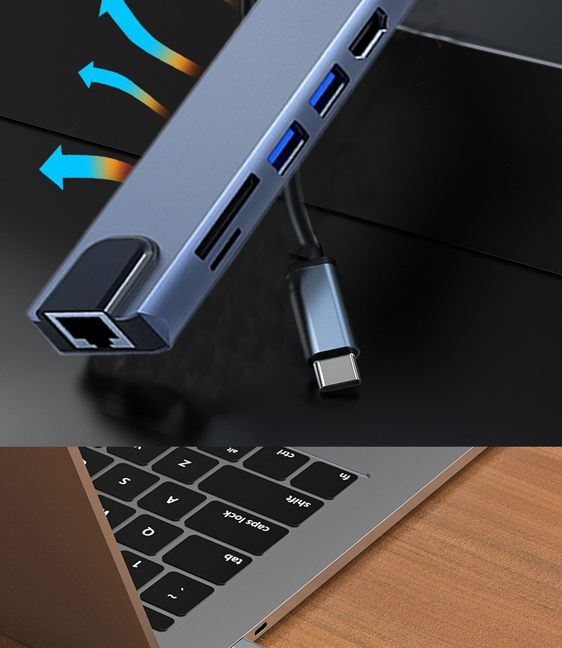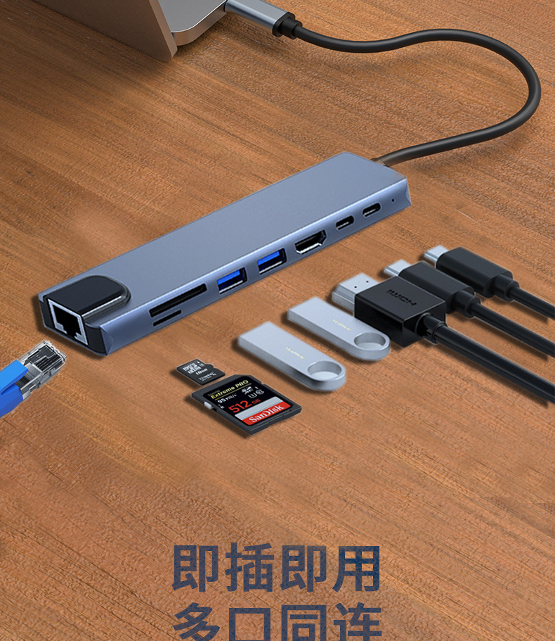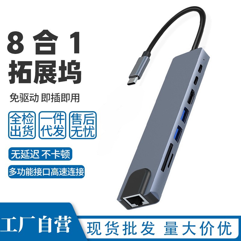 Многофункциональная док-станция 8-в-1: Type-C на HDMI, контроллер, сетевой порт RJ45, сетевая карта, концентратор для компьютера