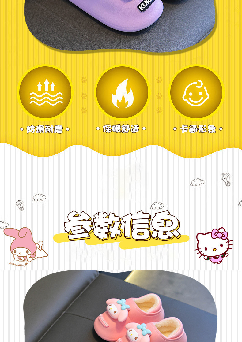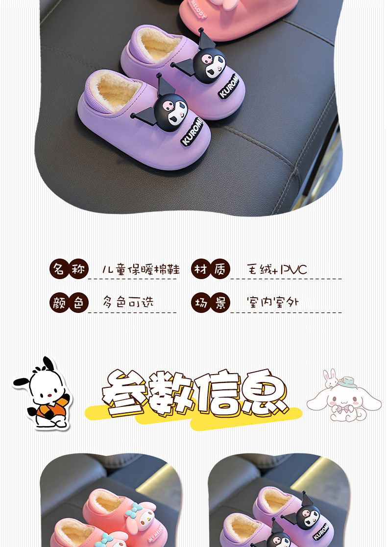 Sanrio Зимняя детская сумка и хлопчатобумажная обувь теплые и бархатные