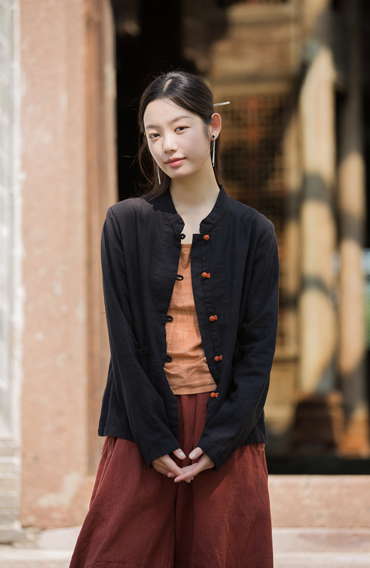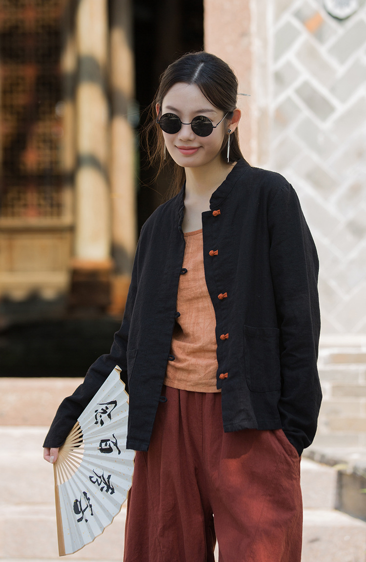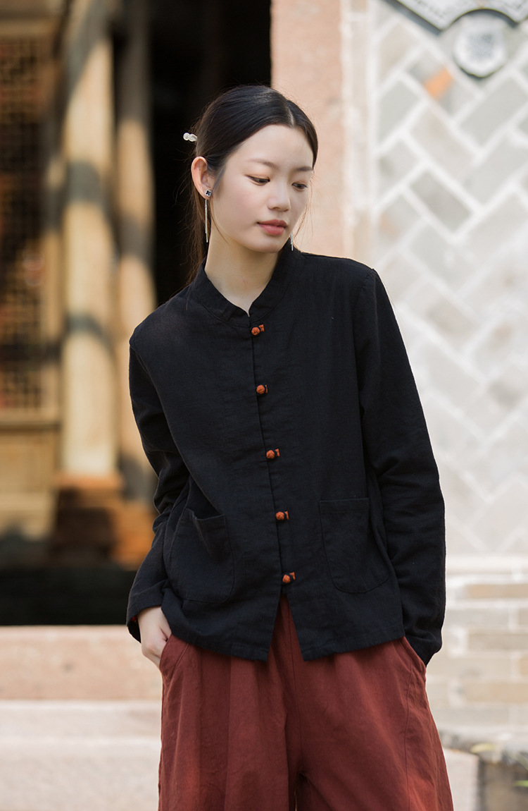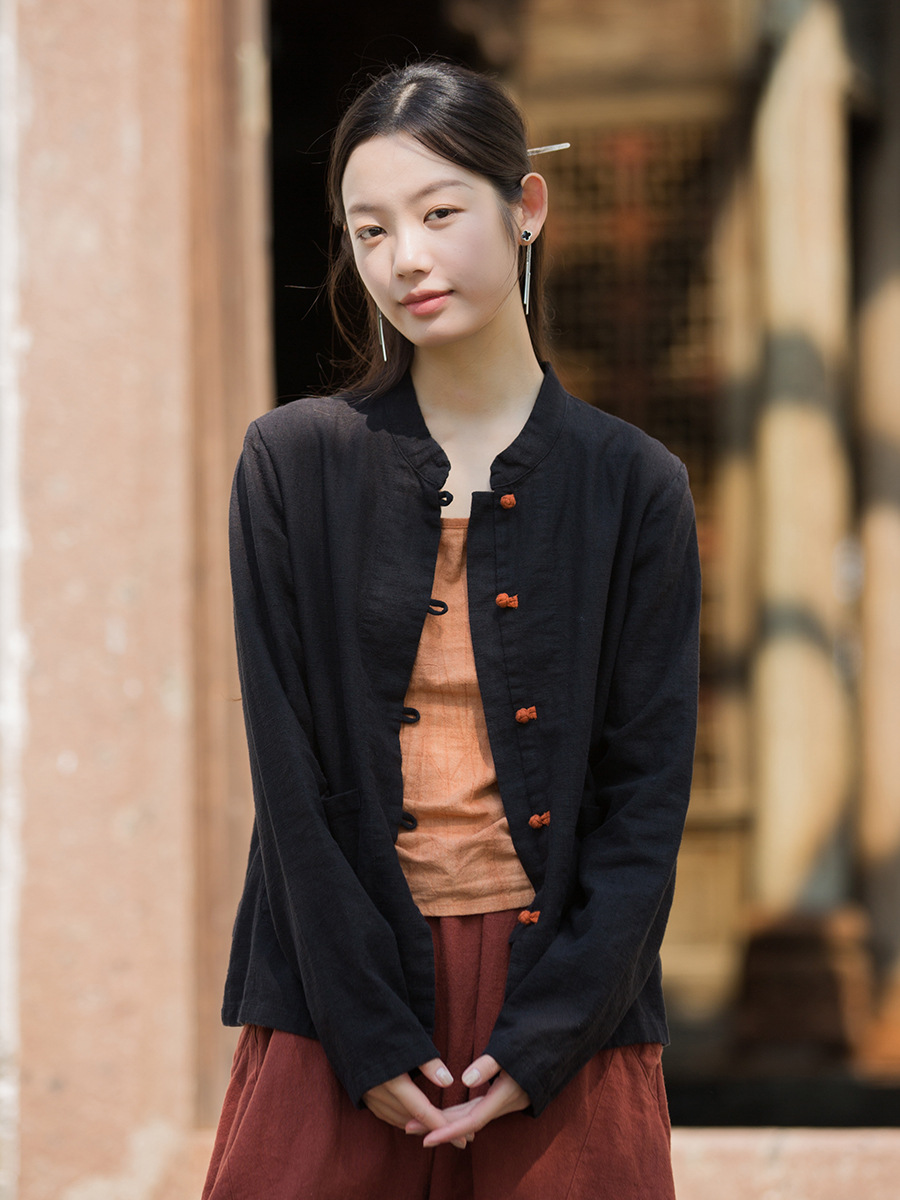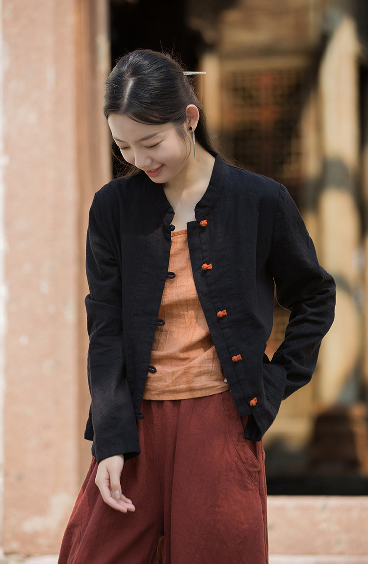Новая осенняя женская одежда из хлопка и льна: улучшенный оригинальный топ с воротником-стойкой, на пуговицах, стильный, уникальный, в новом китайском стиле, женский кардиган.