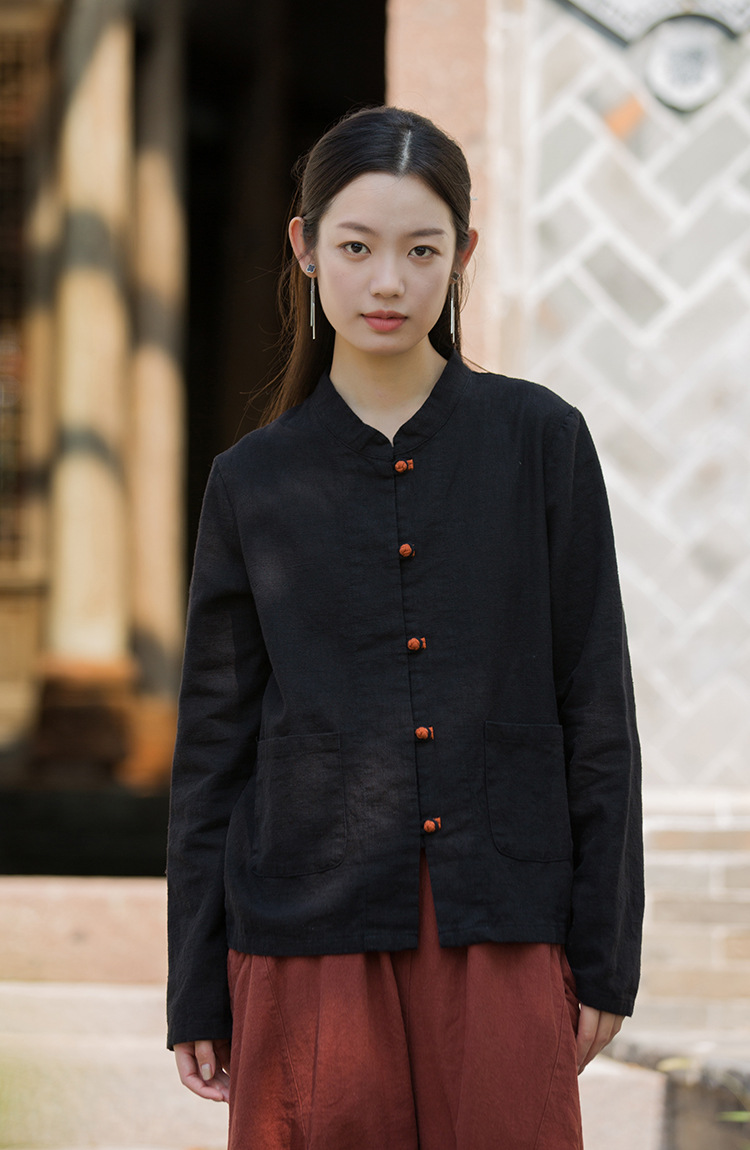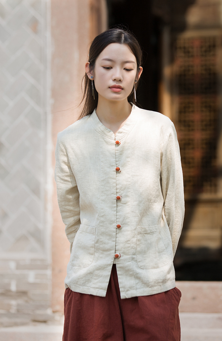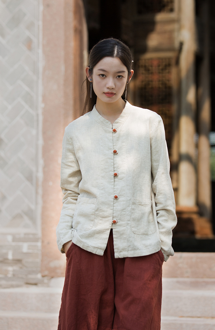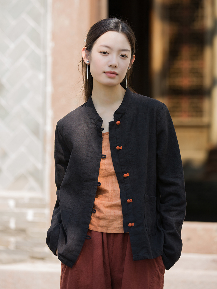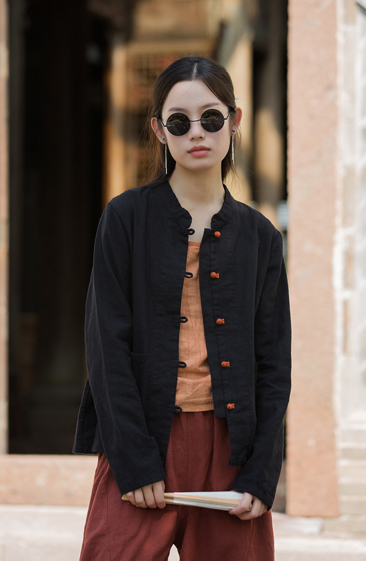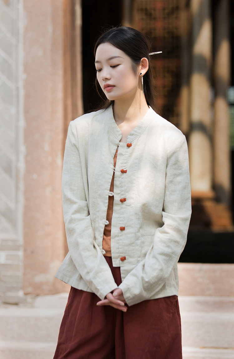 Новая осенняя женская одежда из хлопка и льна: улучшенный оригинальный топ с воротником-стойкой, на пуговицах, стильный, уникальный, в новом китайском стиле, женский кардиган.