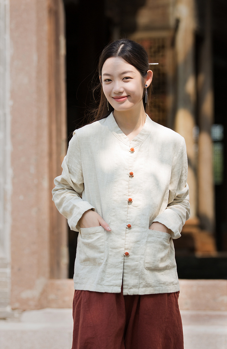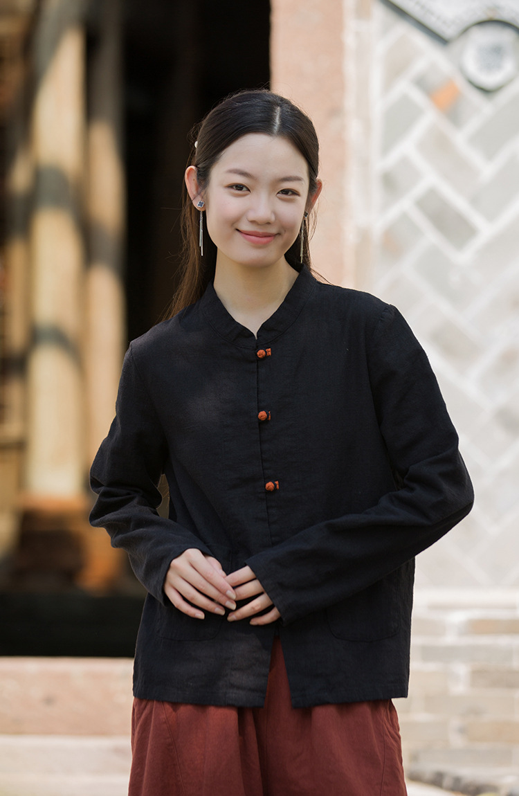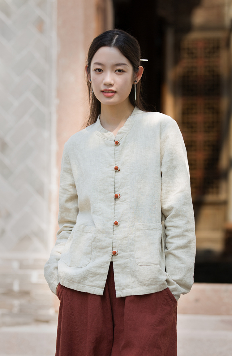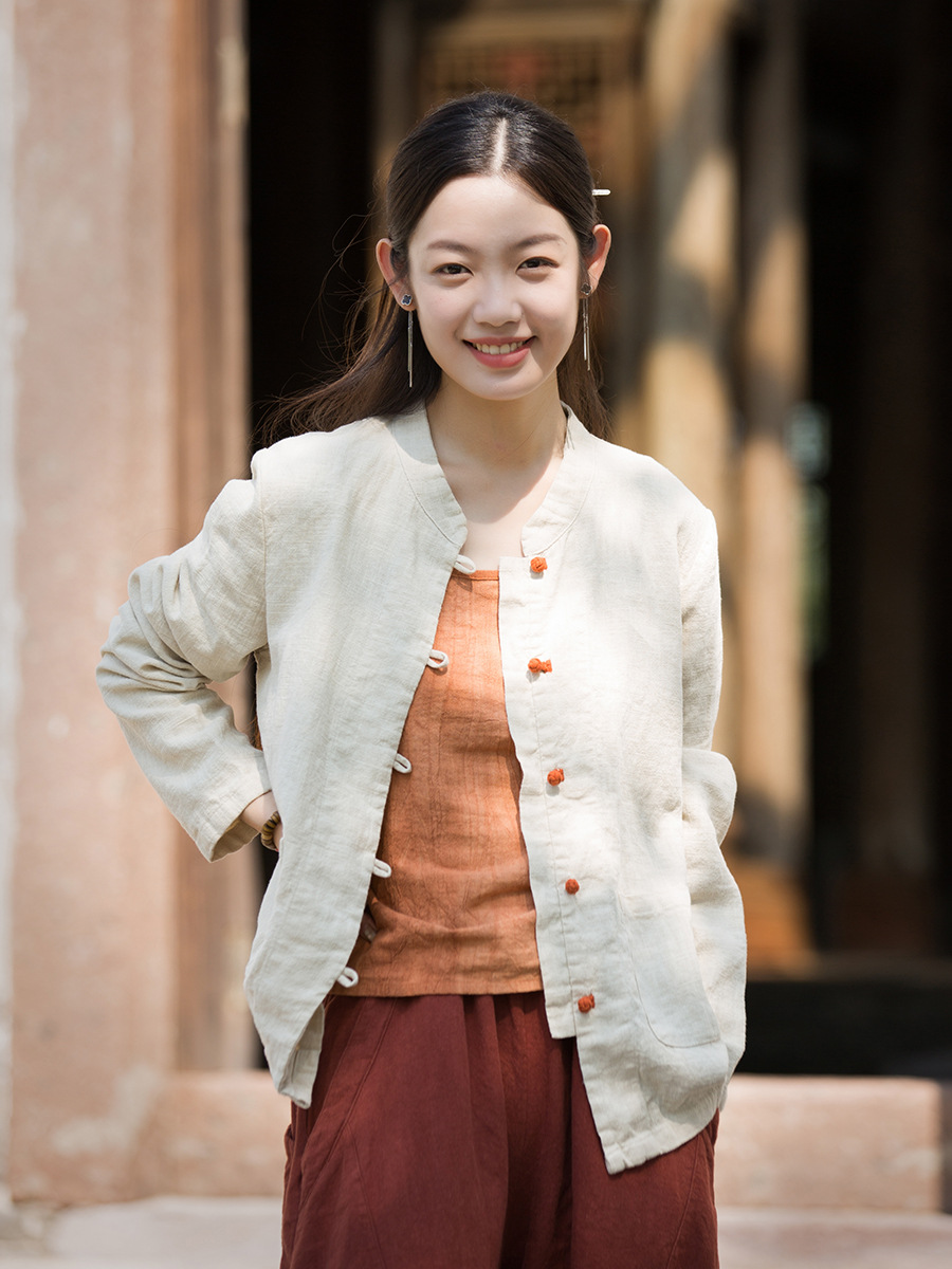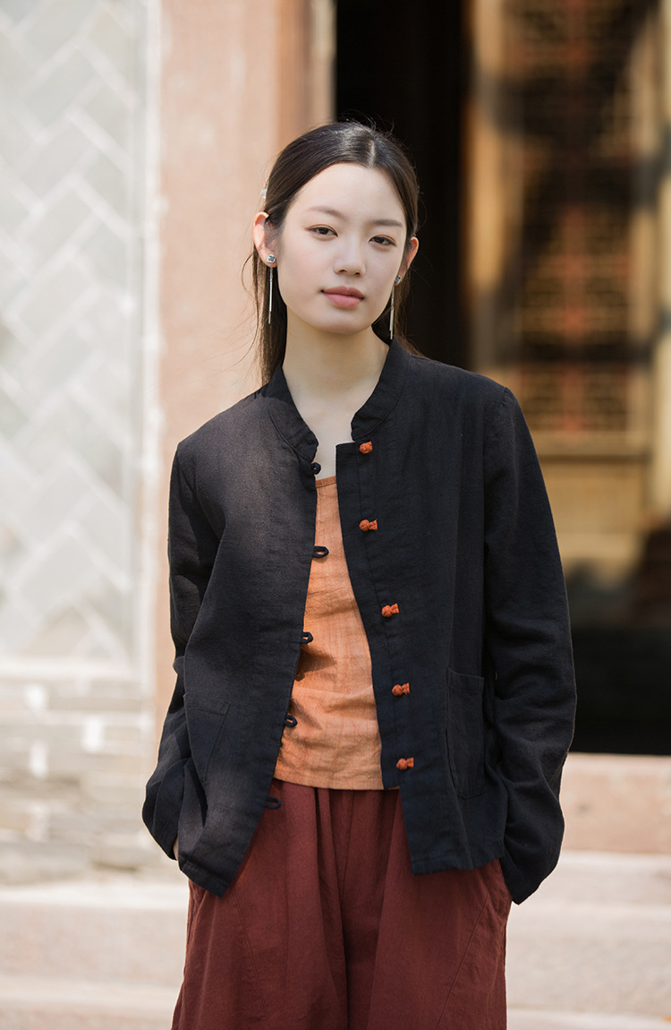 Новая осенняя женская одежда из хлопка и льна: улучшенный оригинальный топ с воротником-стойкой, на пуговицах, стильный, уникальный, в новом китайском стиле, женский кардиган.