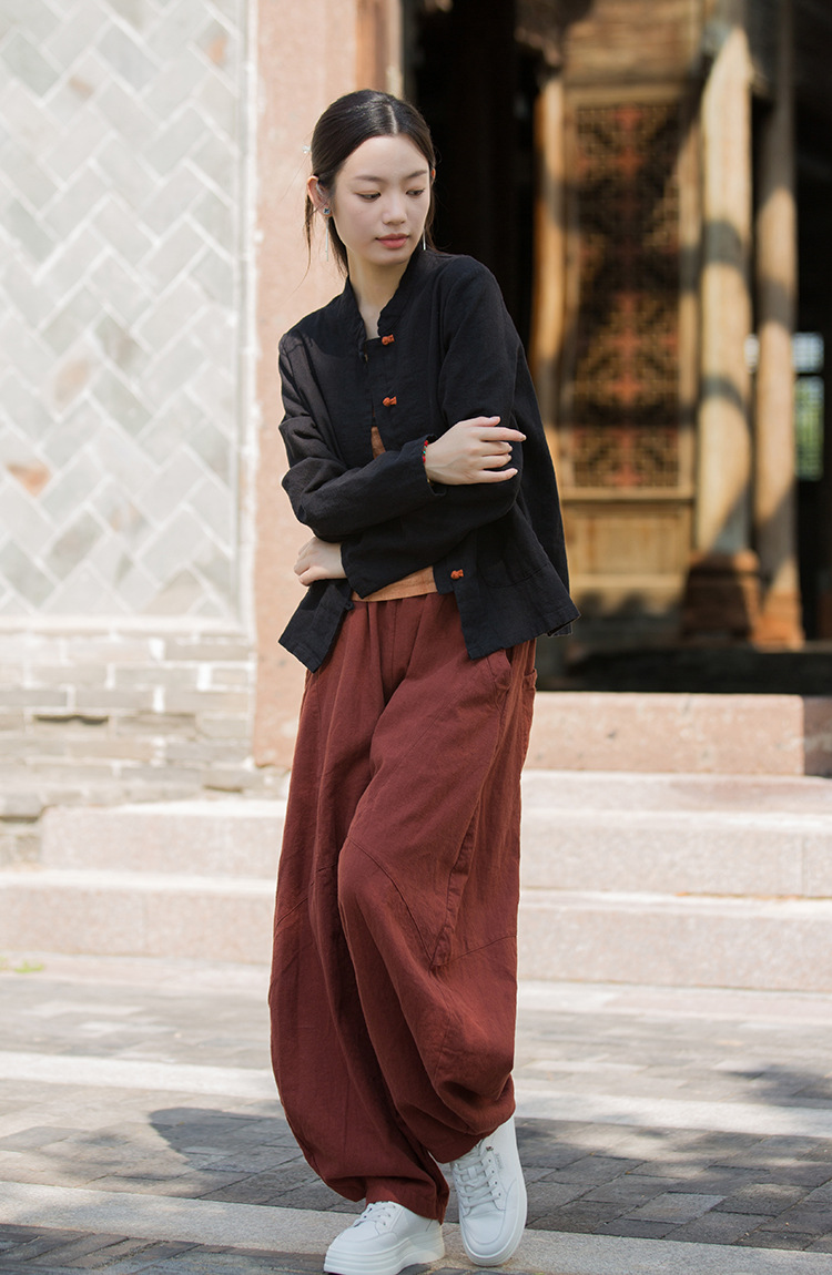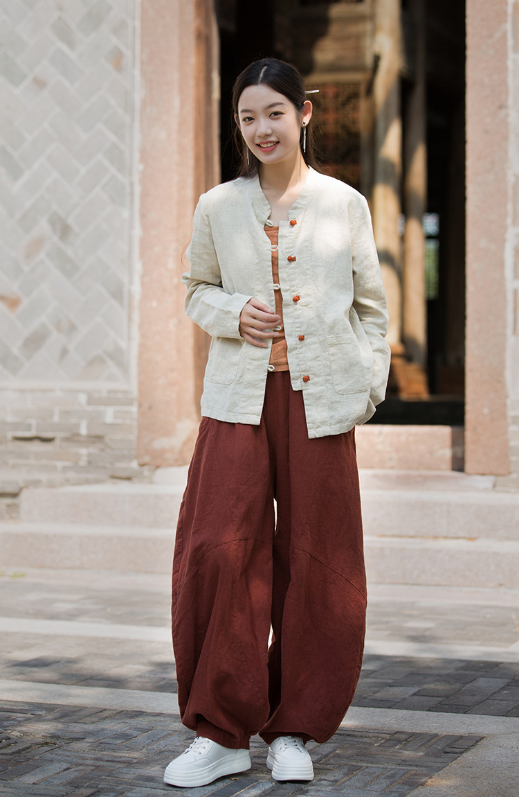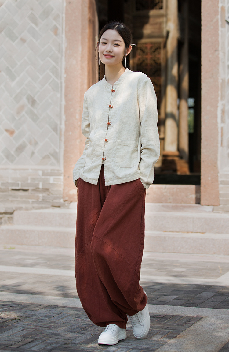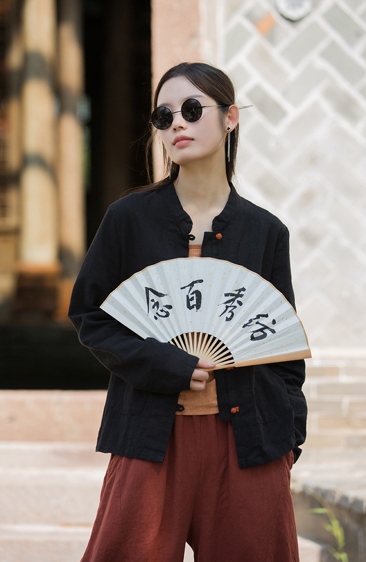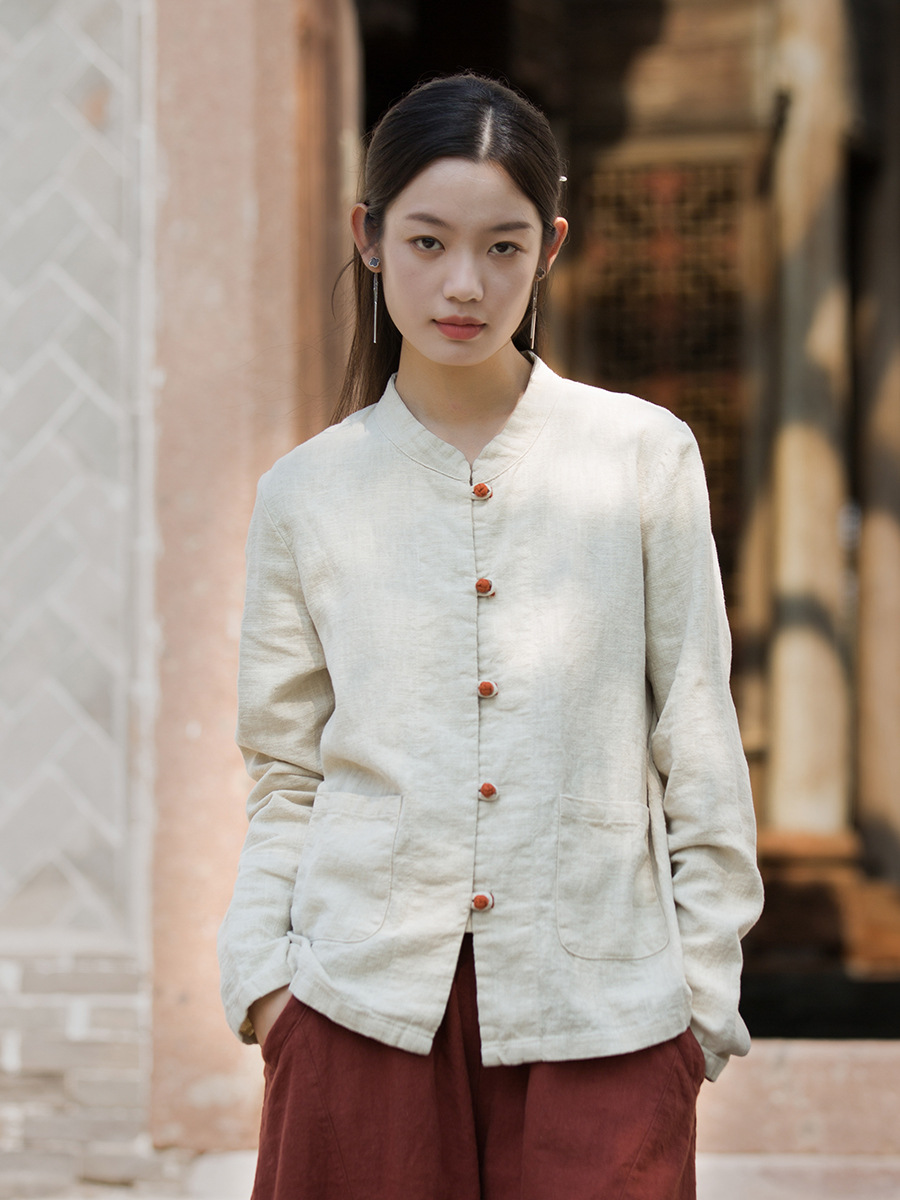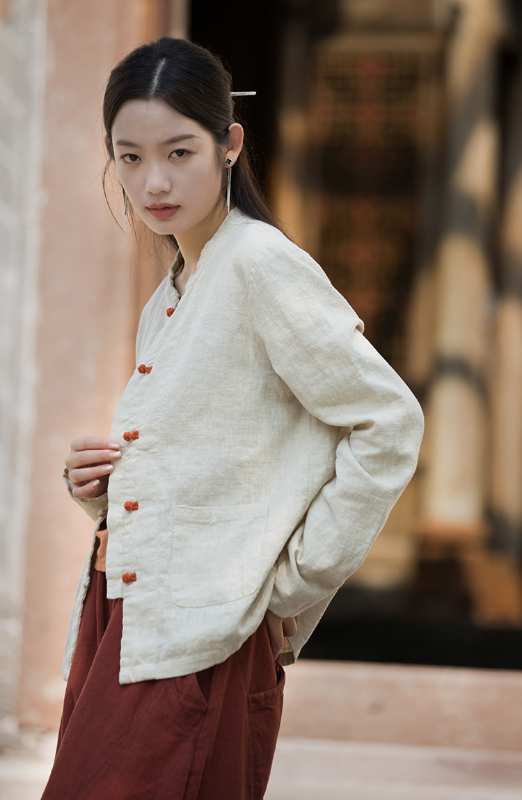 Новая осенняя женская одежда из хлопка и льна: улучшенный оригинальный топ с воротником-стойкой, на пуговицах, стильный, уникальный, в новом китайском стиле, женский кардиган.