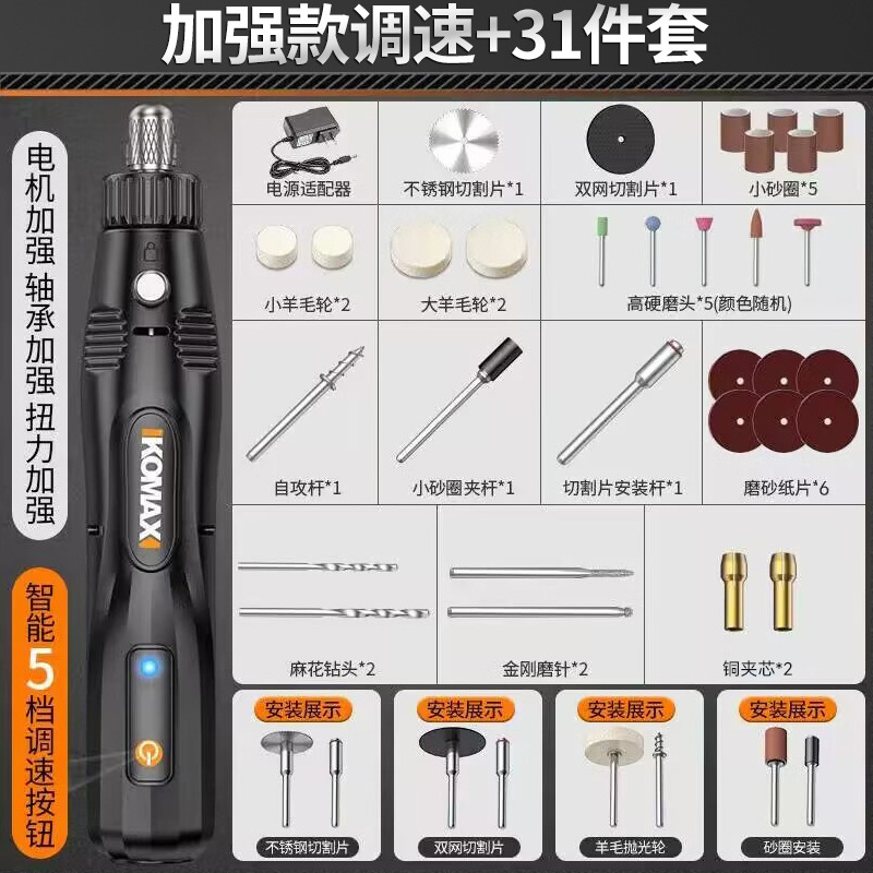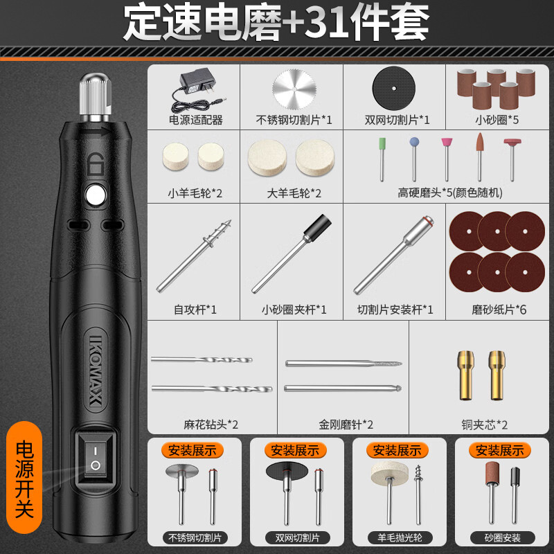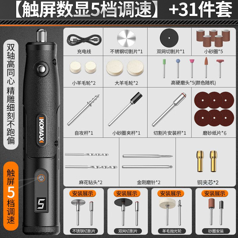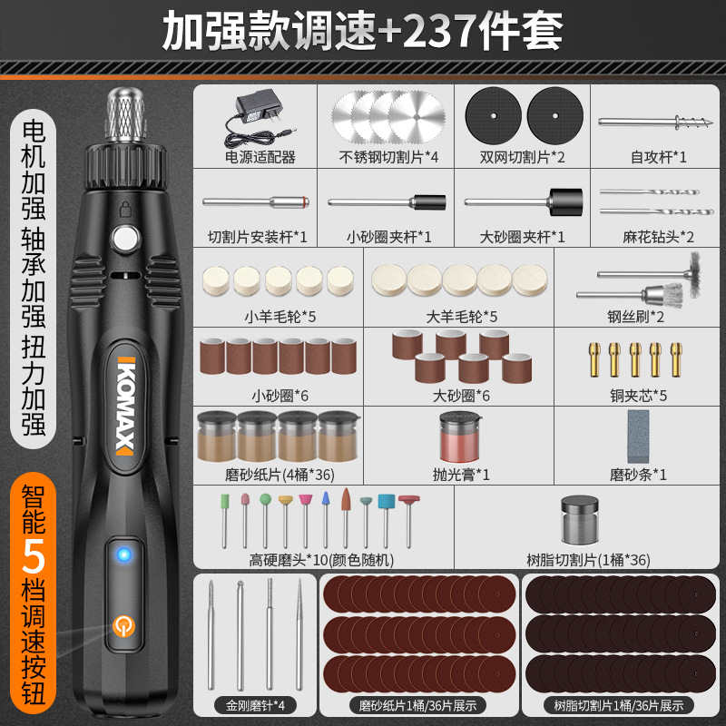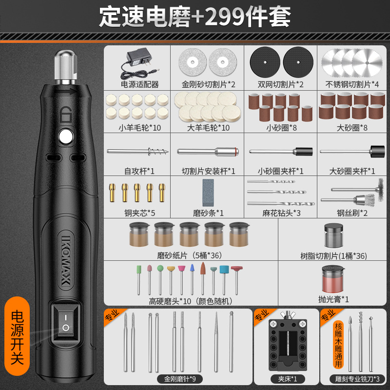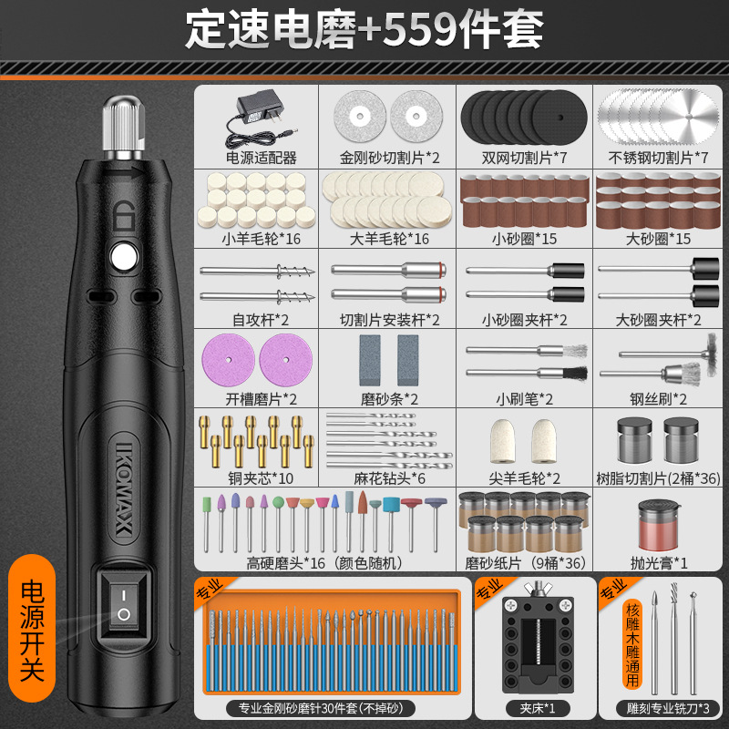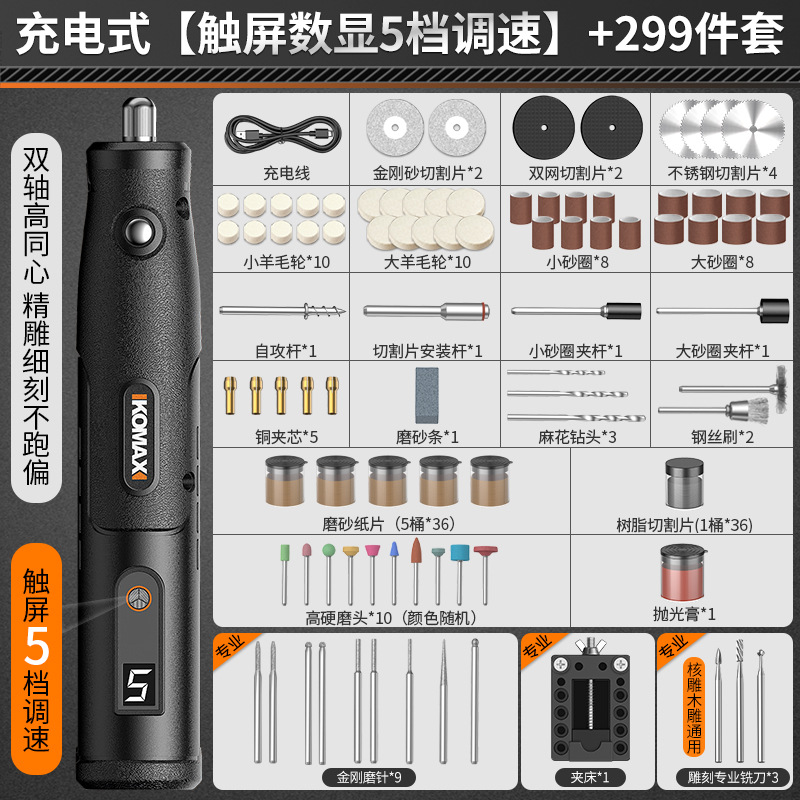 Электрическая шлифовальная машина с фиксированной скоростью (голый металл); Электрическая шлифовальная машина с фиксированной скоростью + набор из 31 шт.; Электрическая шлифовальная машина с фиксированной скоростью + комплект 237 предметов.; Электрическая шлифовальная машина с фиксированной скоростью + комплект 299 предметов.; Электрическая шлифовальная машина с фиксированной скоростью + комплект 369 предметов.; Электрическая шлифовальная машина с фиксированной скоростью + комплект 559 предметов.; Усиленная регулировка скорости + комплект из 31 шт.; Усиленная регулировка скорости + комплект из 237 предметов.; Усиленная регулировка скорости + комплект 299 предметов.; Усиленная регулировка скорости + комплект из 369 предметов.; Усиленная регулировка скорости + комплект из 559 предметов.; [Цифровой сенсорный экран, 5-ступенчатая регулировка скорости] + набор из 31 шт.; [Цифровой сенсорный экран, 5-ступенчатая регулировка скорости] + комплект из 237 предметов; [Цифровой сенсорный экран, 5-ступенчатая регулировка скорости] + набор из 299 предметов; [Цифровой сенсорный экран, 5-ступенчатая регулировка скорости] + набор из 369 предметов; [Цифровой сенсорный экран, 5-ступенчатая регулировка скорости] + набор из 559 предметов; Перезаряжаемый [цифровой сенсорный дисплей, 5-ступенчатая регулировка скорости] + набор из 31 шт.; Перезаряжаемый [цифровой сенсорный дисплей, 5-ступенчатая регулировка скорости] + комплект из 237 предметов; Перезаряжаемый [цифровой сенсорный дисплей, 5-ступенчатая регулировка скорости] + комплект из 299 предметов; Перезаряжаемый [цифровой сенсорный дисплей, 5-ступенчатая регулировка скорости] + комплект из 369 предметов; Перезаряжаемый [цифровой сенсорный дисплей, 5-ступенчатая регулировка скорости] + набор из 559 предметов