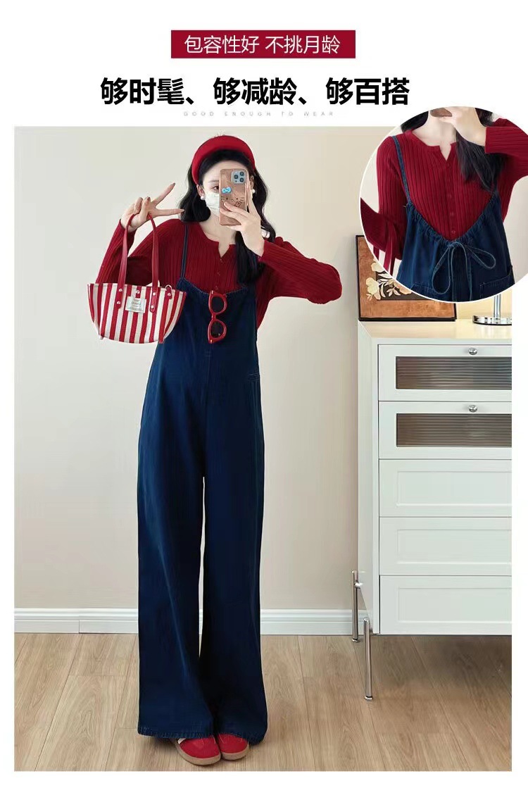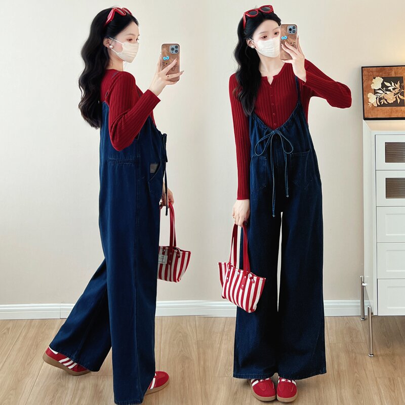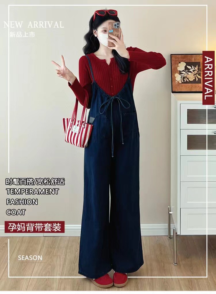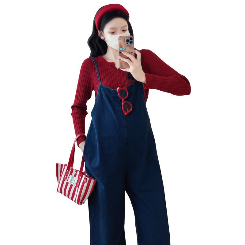 Пятно беременные джинсовые брюки прямо и обратно трикотажный кардиган топ для беременных брюки набор