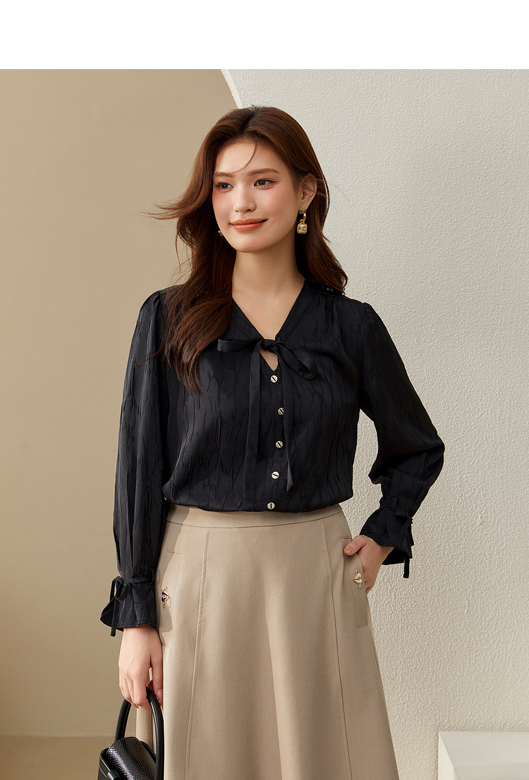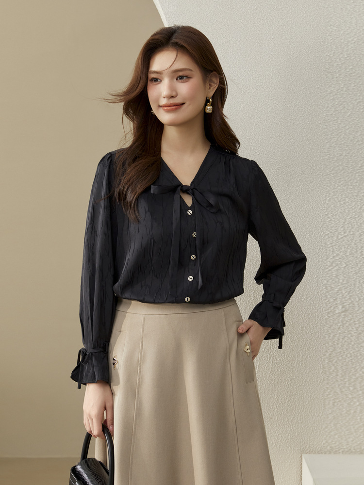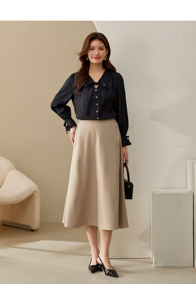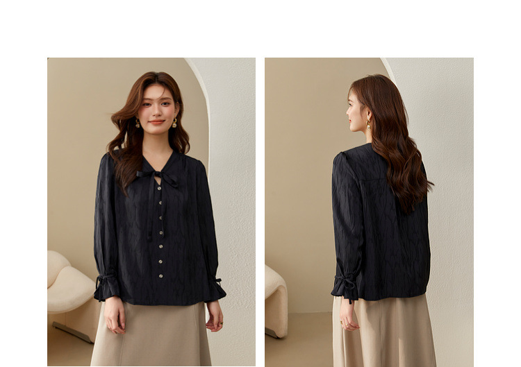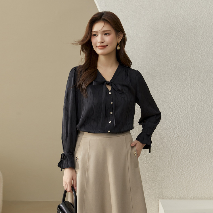 Блэк-шоу большой размер женской одежды ретро элегантный шикарный нишевые текстуры теплый и мягкий ветер рубашка жирный mm2024 осень новый стиль
