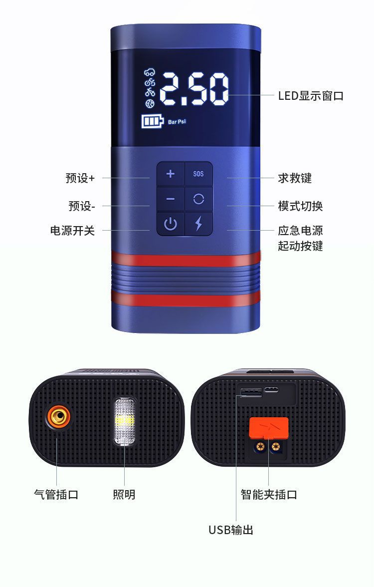 Беспроводной воздушный насос, аварийный источник питания, зарядка мобильного телефона