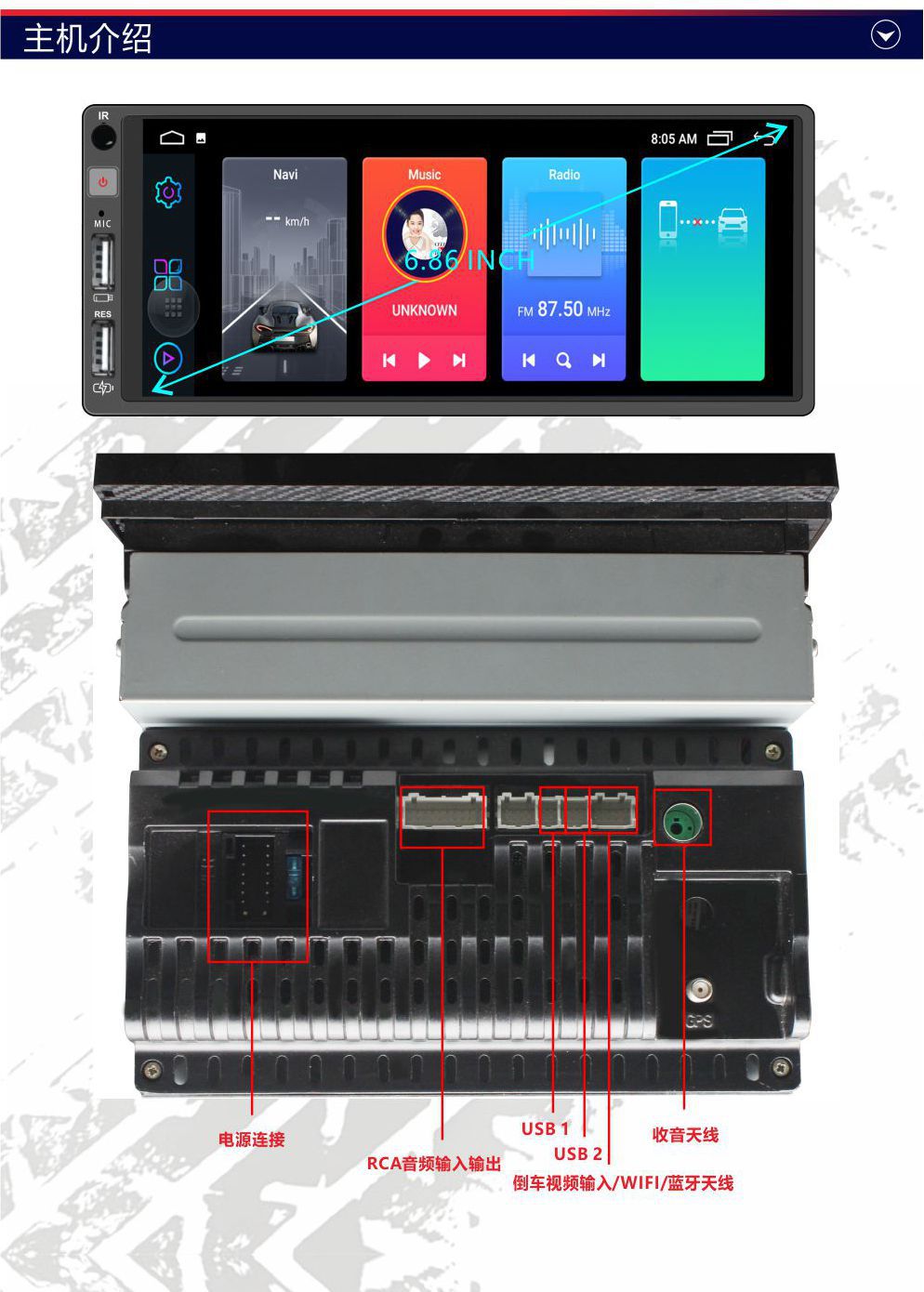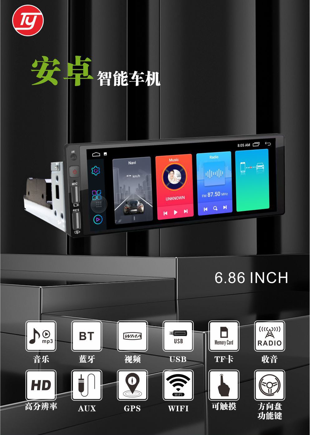 6,86-дюймовый один слиток MP5 сенсорный экран встроенный carplay Bluetooth GPS WiFi универсальный автомобильный радиоприемник автомобиля