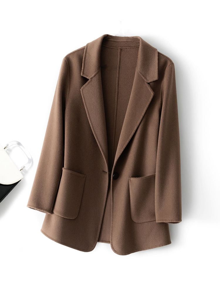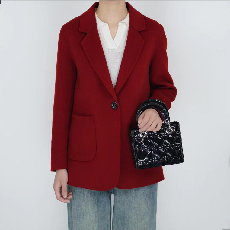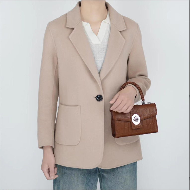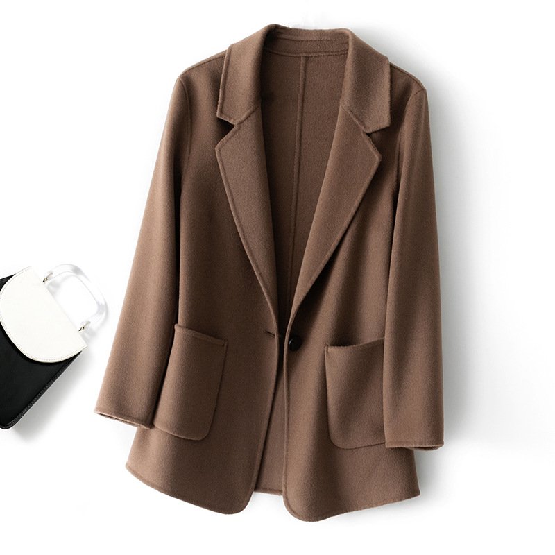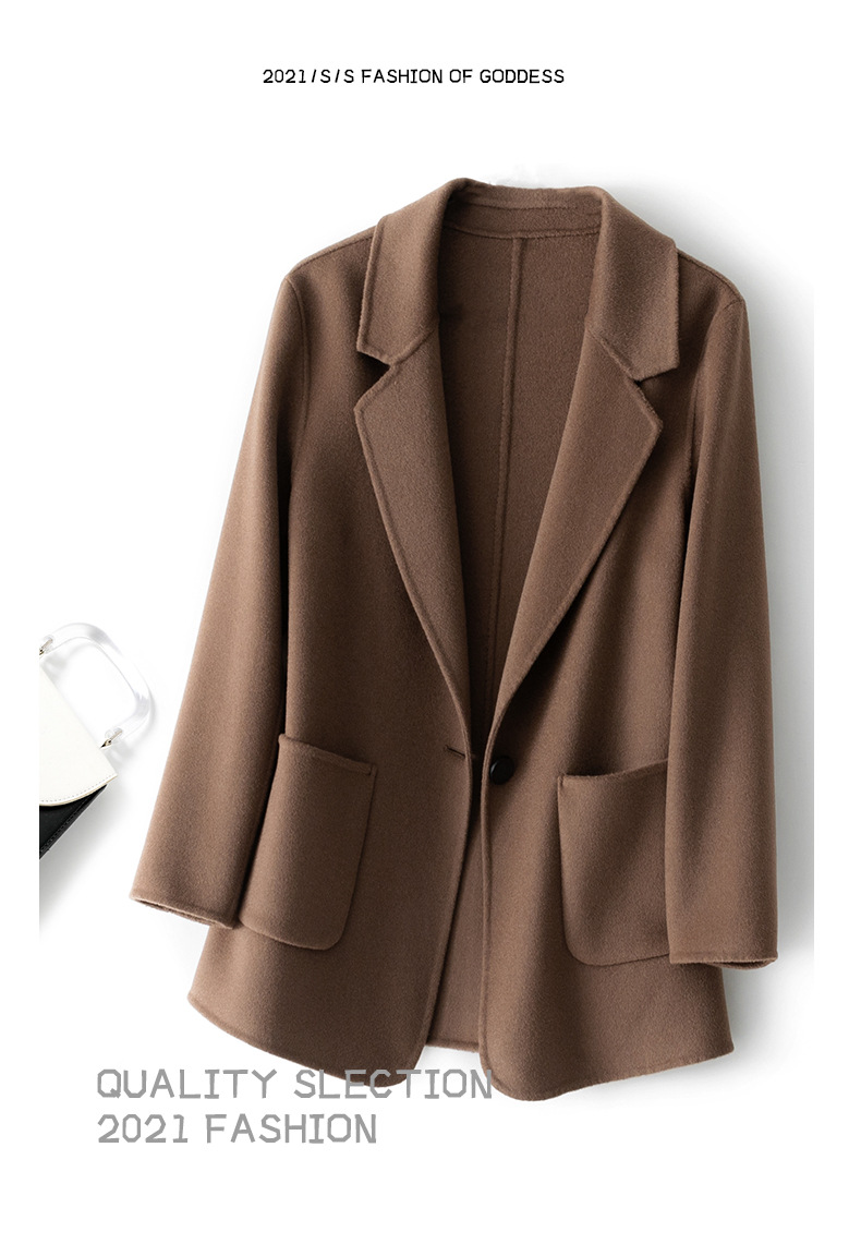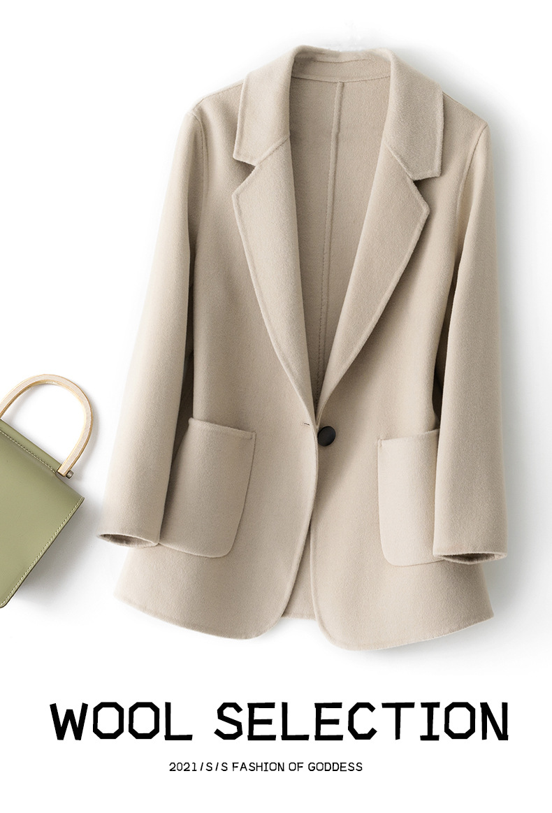 24 новых костюмный воротник двухстороннее шерстяное пальто женское повседневное минималистское модное дикое рабочее место куртка