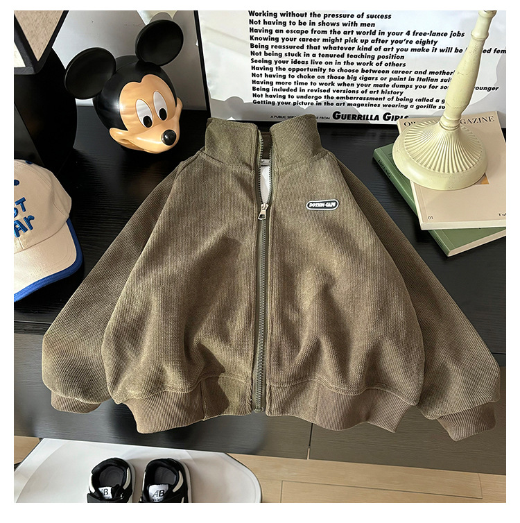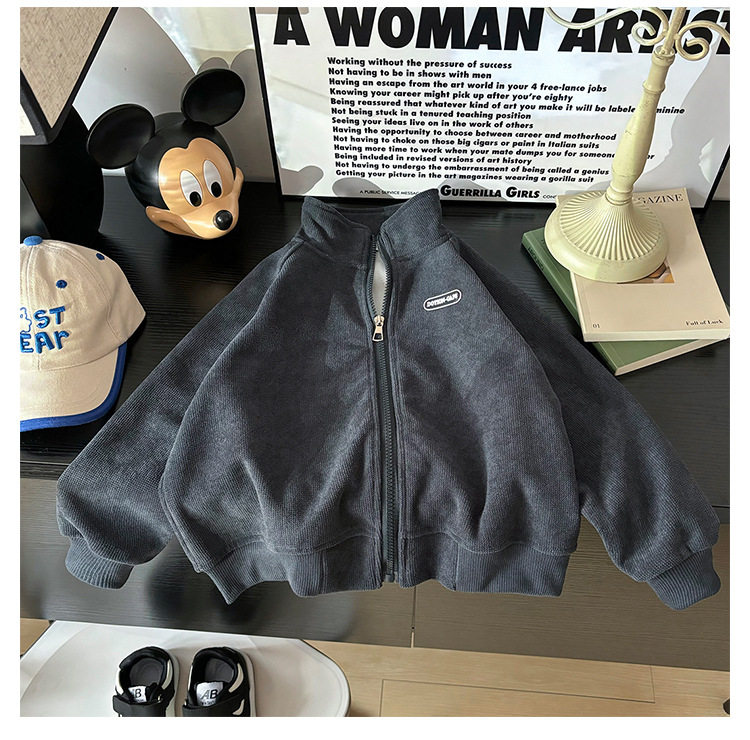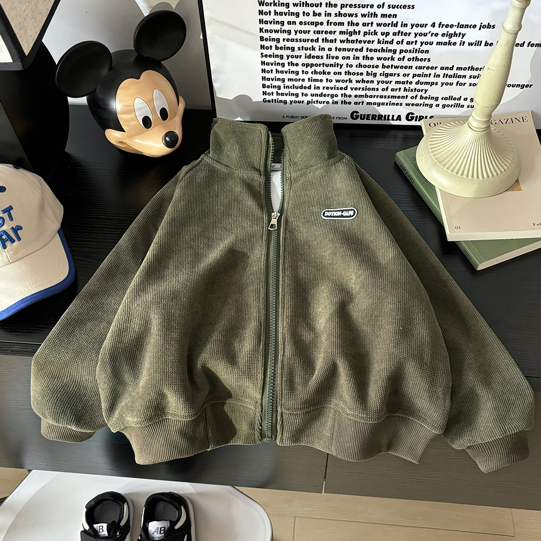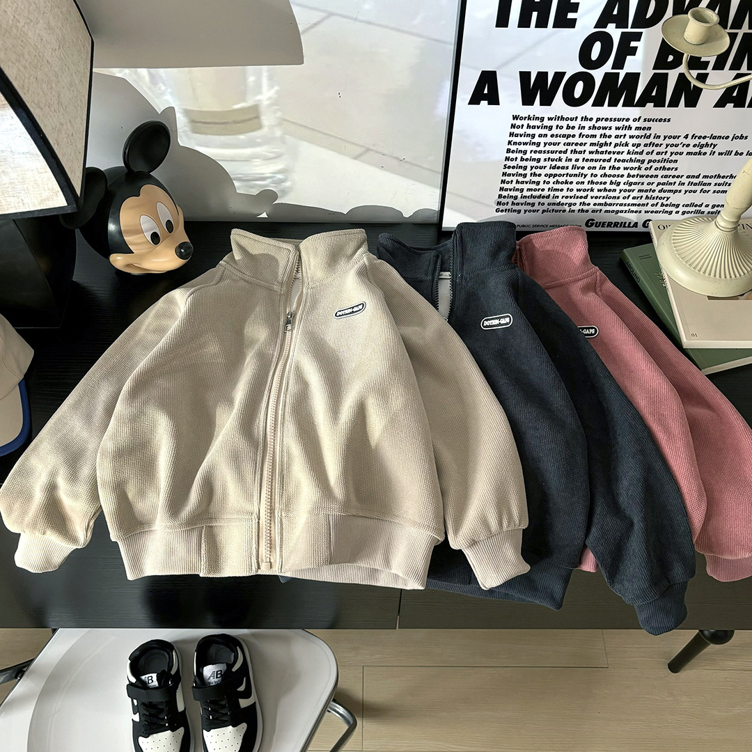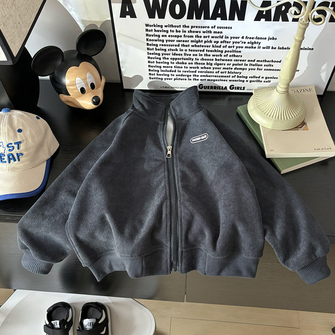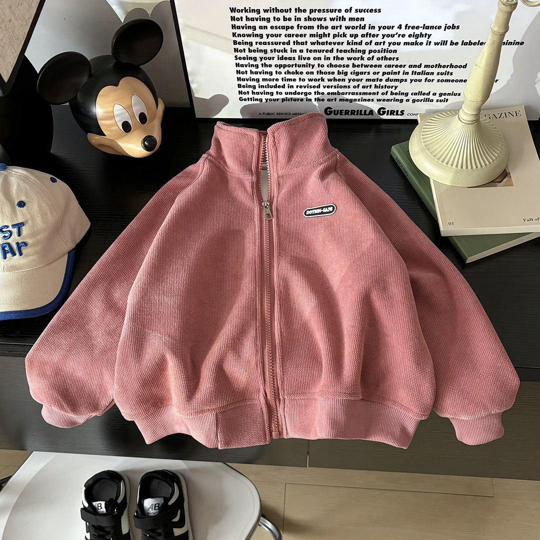 2024 Осень и зима Детские гранулированные пальто повседневные дикие мальчики и девочки рубашки на молнии