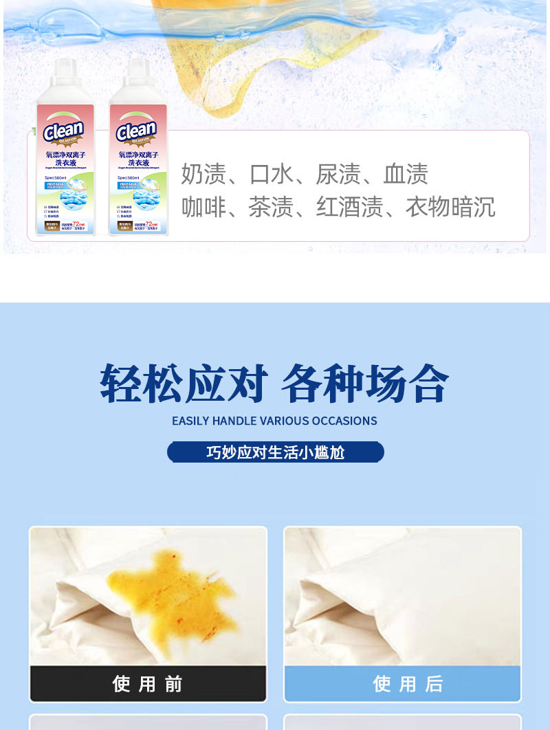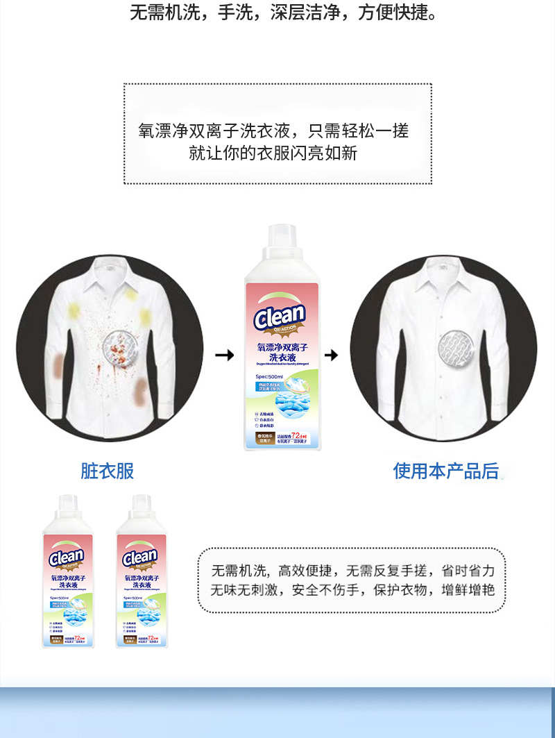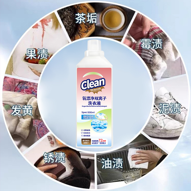 Кислородный отбеливатель двойной ионный жидкий раствор для стирки активный кислород формула для удаления пожелтения и отбеливания