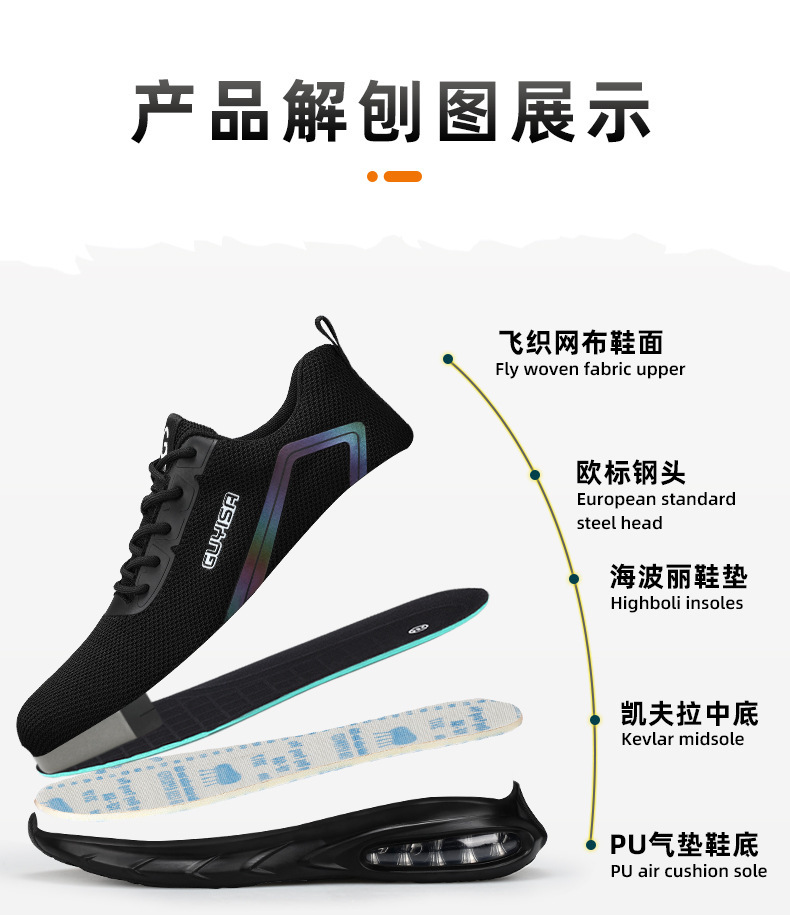 Обувь для защиты труда Мужская дышащая и противоударная, защитная обувь легкая и удобная, амортизация и медленная работа