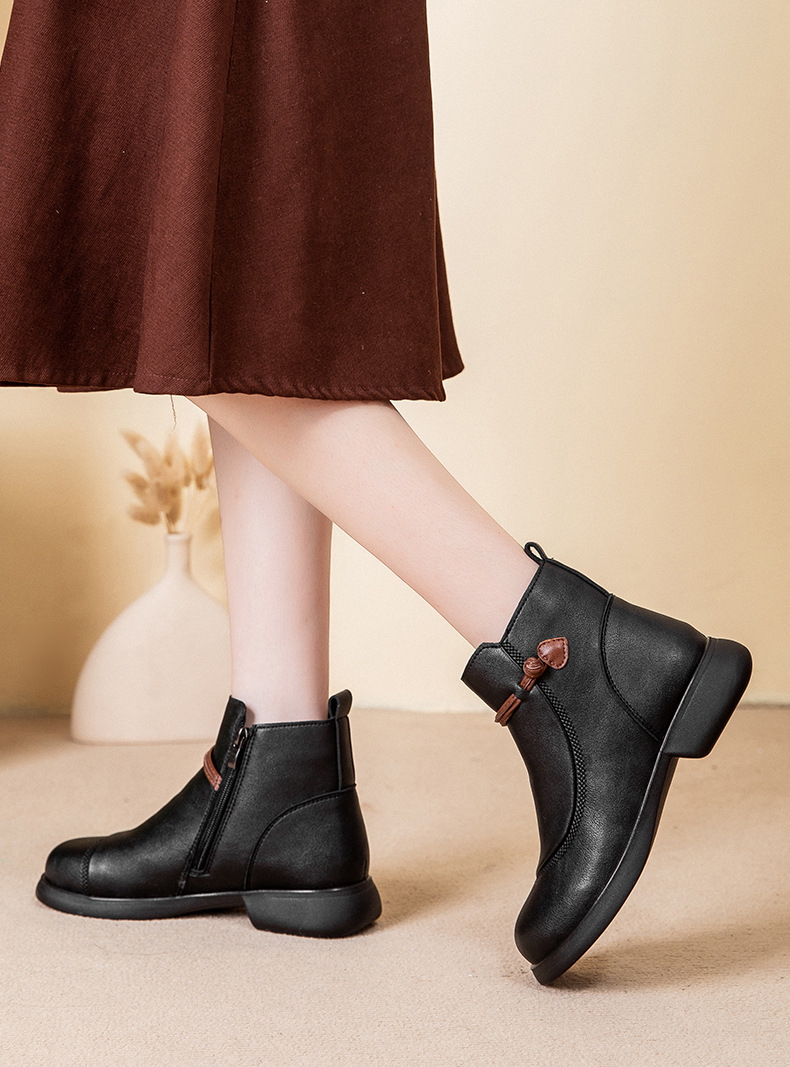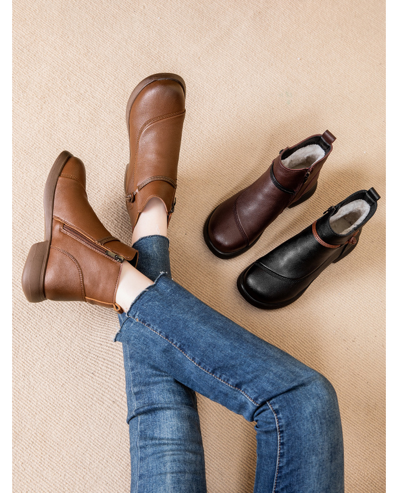 В наличии: женские утепленные короткие сапоги из хлопка на флисе для осени и зимы, теплые, на толстой подошве, нескользящие, для женщин среднего и старшего возраста, зимние кожаные туфли.