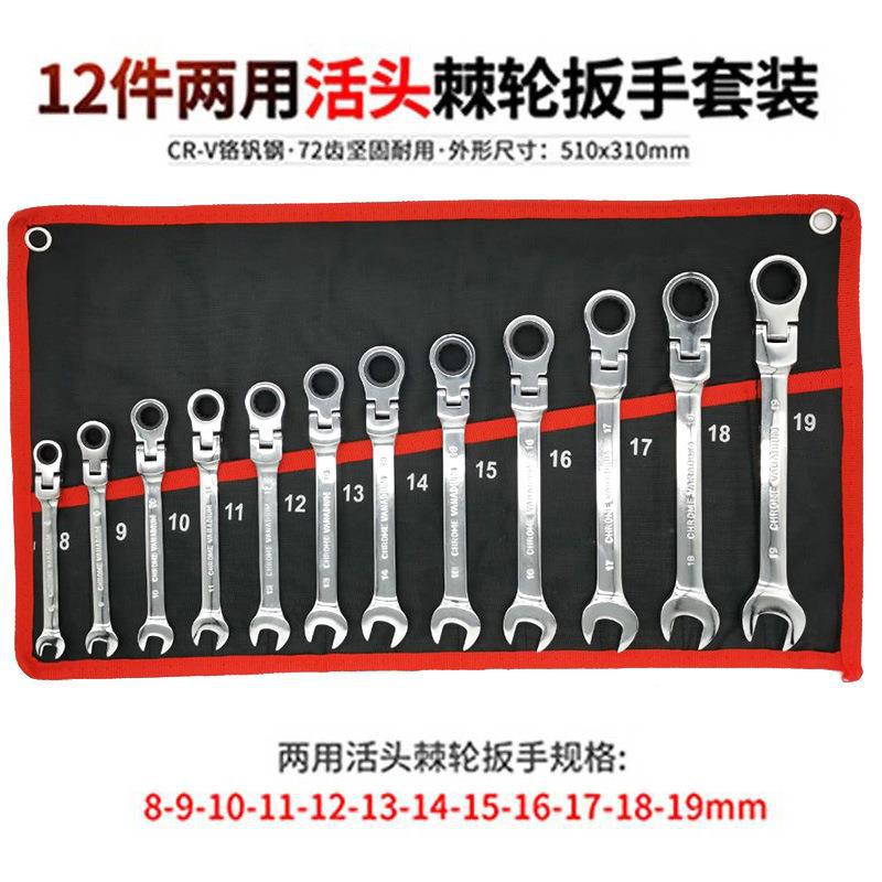 Набор инструментов для авторемонта: трещоточный ключ, сумка-органайзер из ткани, 12 предметов, регулируемый, двойного назначения, с поворотной головкой на 72 зубца, трещоточный тип