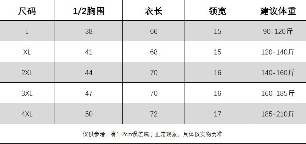 L 【 45-57.5kg 】; XL 【 57.5-67.5kg 】; 2XL 【 67.5-77.5kg 】; 3XL [ 77.5-90kg 】; 4XL [ 90-105kg 】