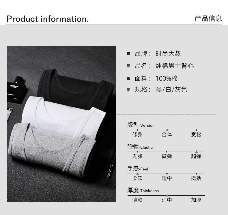 Бавовняный жилет-черный; Жилет из чистого хлопка-белый.; Жилет из чистого хлопка-серый