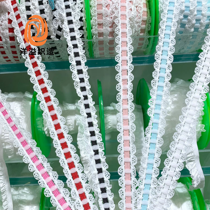 Прямая продажа с фабрики 1.7cm двухсторонний веер эластичный эластичный ремень с ажурным кружевным лентом DIY ремень для украшения одежды