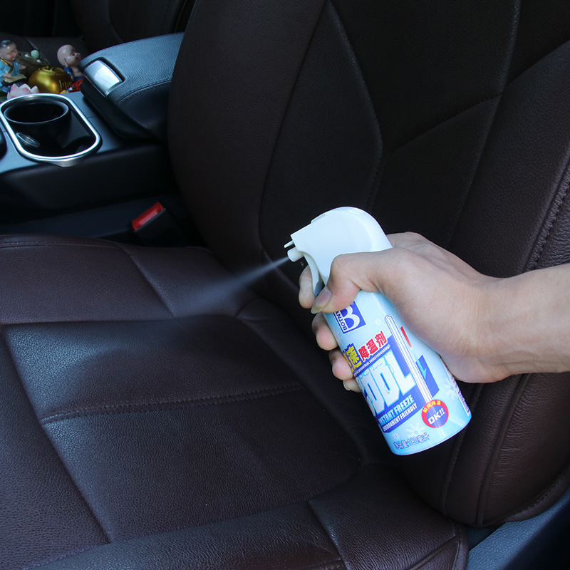 3、在对持续高温情况下暴晒的汽车使用时,建议对准人体需要接触到的部位喷射,例如:方向盘、座椅等表面,并配合打开汽车空调,切勿对着车内空间喷射,因为空间范围太大,并不会起到太大效果。
