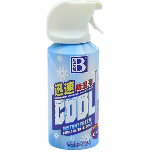 富含有效降温因子,喷射后遇热即迅速汽化,从而吸收空气及实物表面热量达到快速降温效果,瞬间感受凉爽