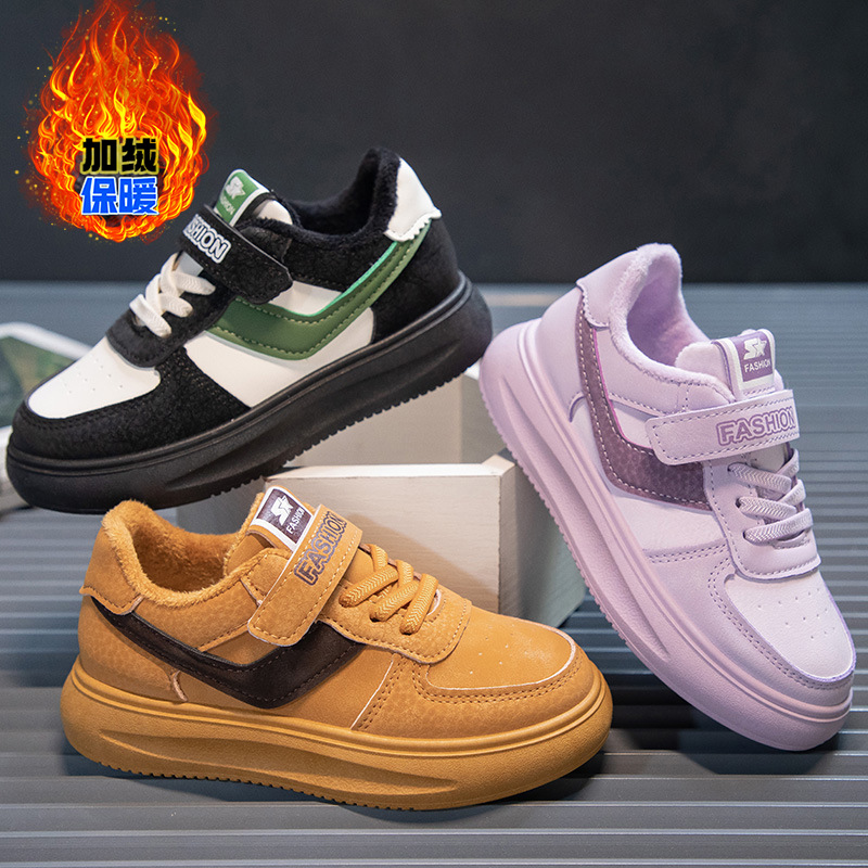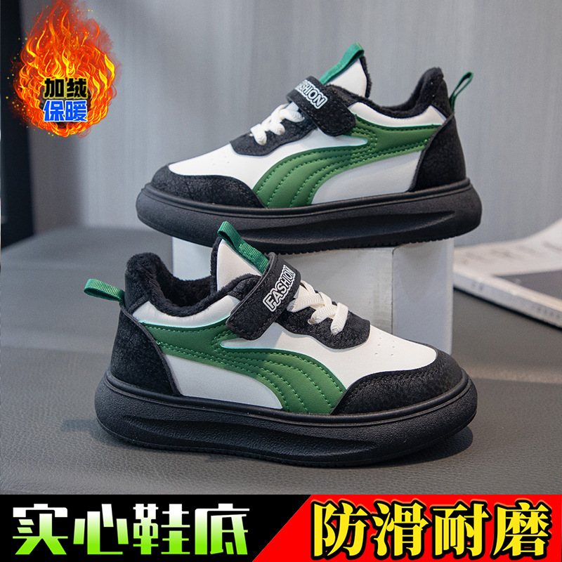 Детские кроссовки для мальчиков Спортивная обувь 2024 осень и зима с флисом из хлопка повседневная обувь утолщение теплые кроссовки для мальчиков