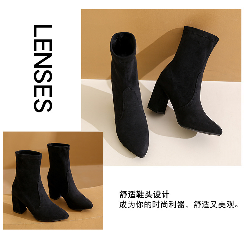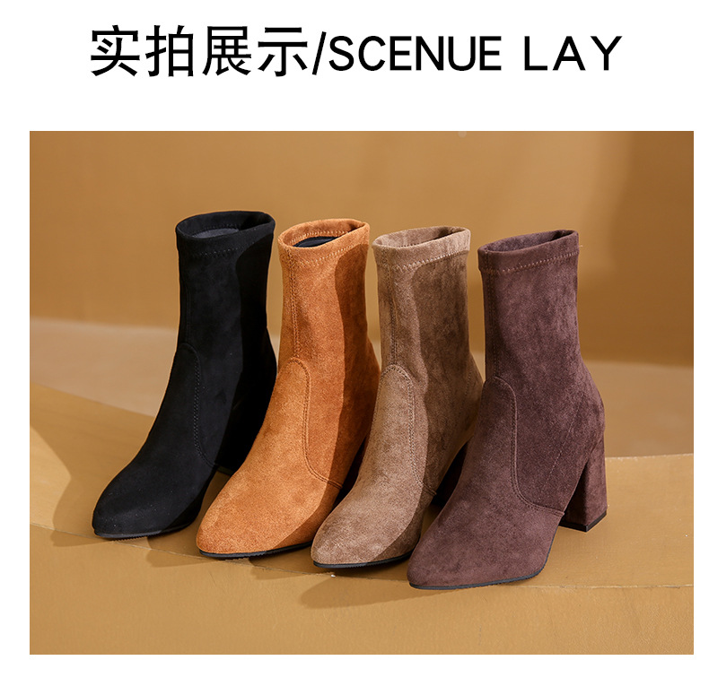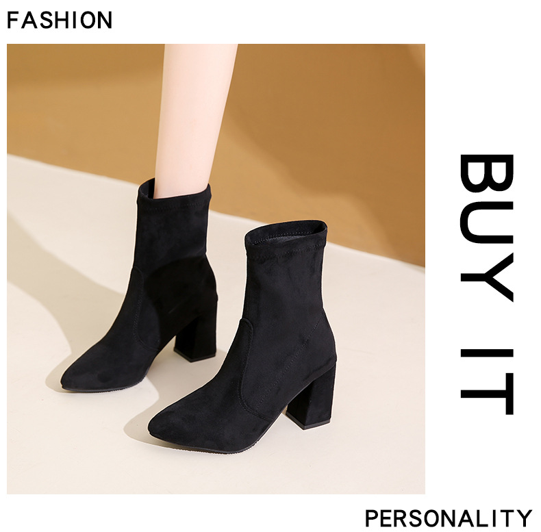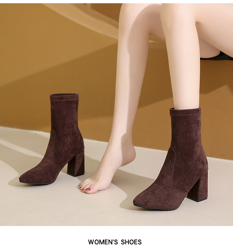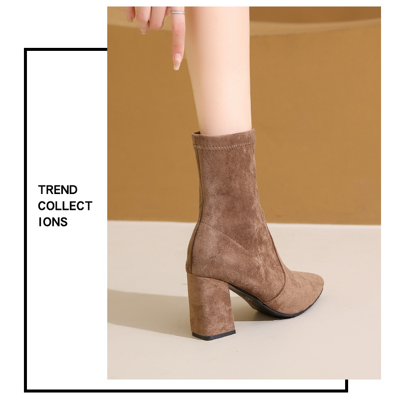 Английский стиль ретро остроконечный Челси тонкие сапоги осенние и зимние каблуки короткие сапоги женские короткие сапоги эластичные сапоги