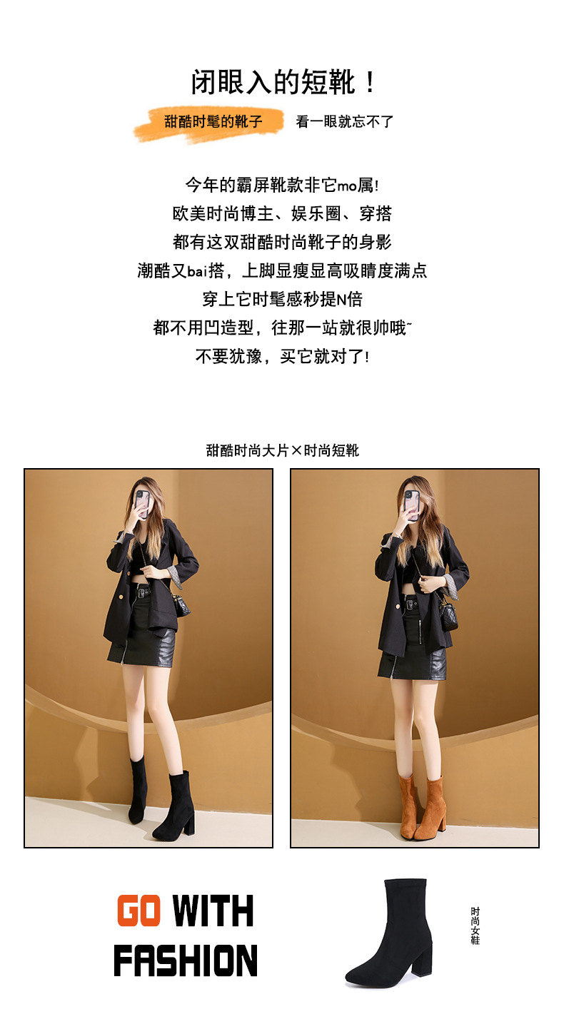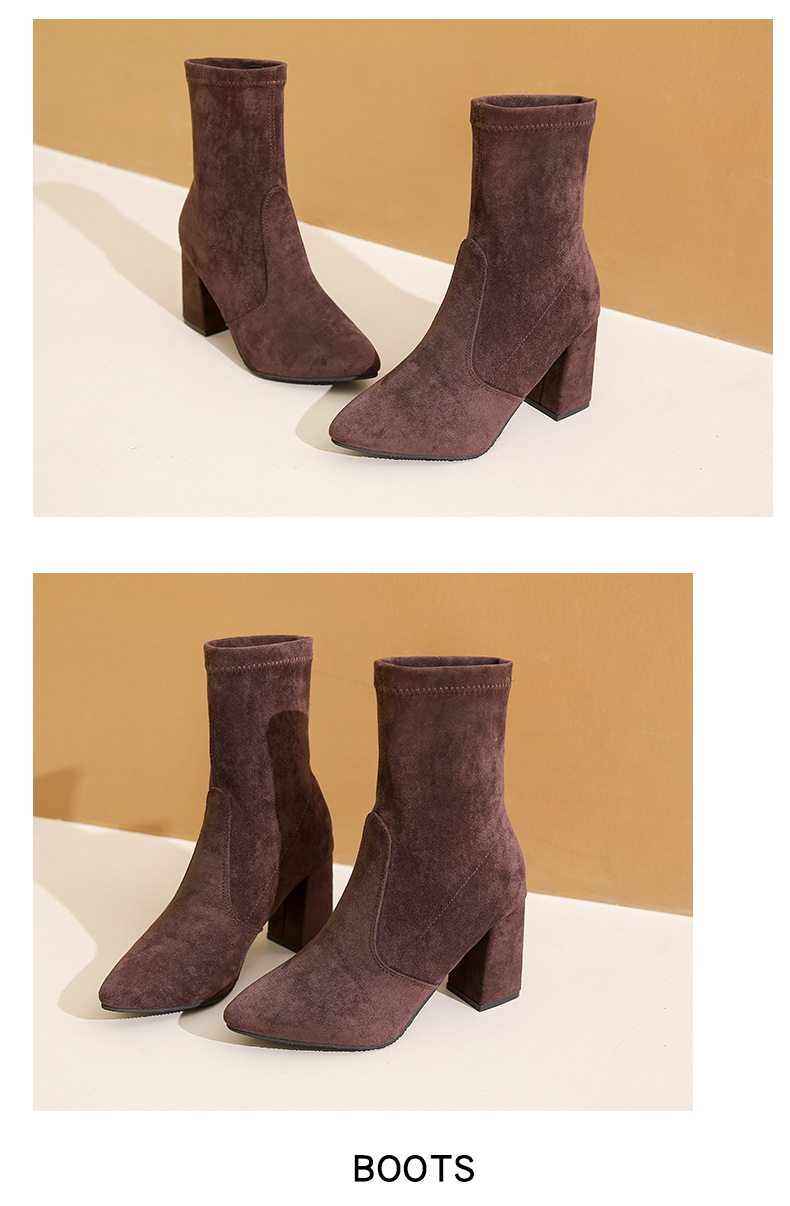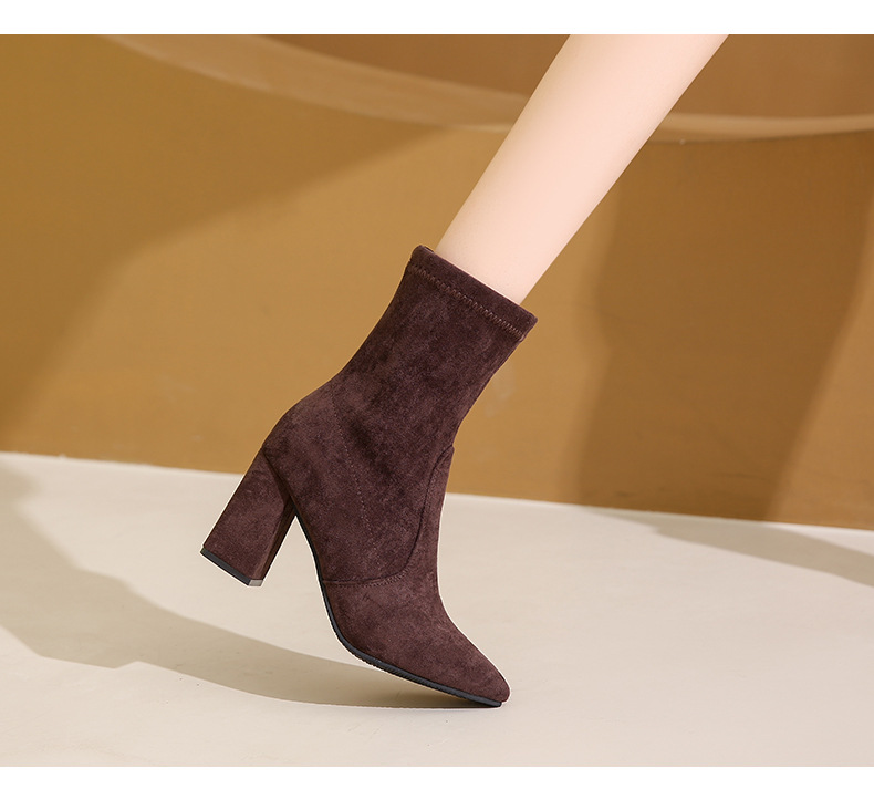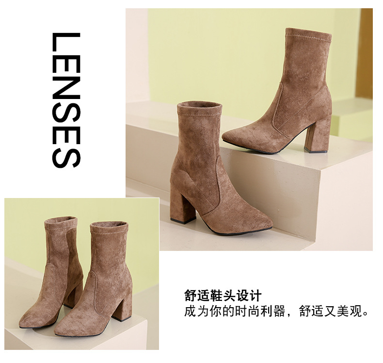 Английский стиль ретро остроконечный Челси тонкие сапоги осенние и зимние каблуки короткие сапоги женские короткие сапоги эластичные сапоги