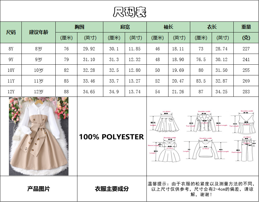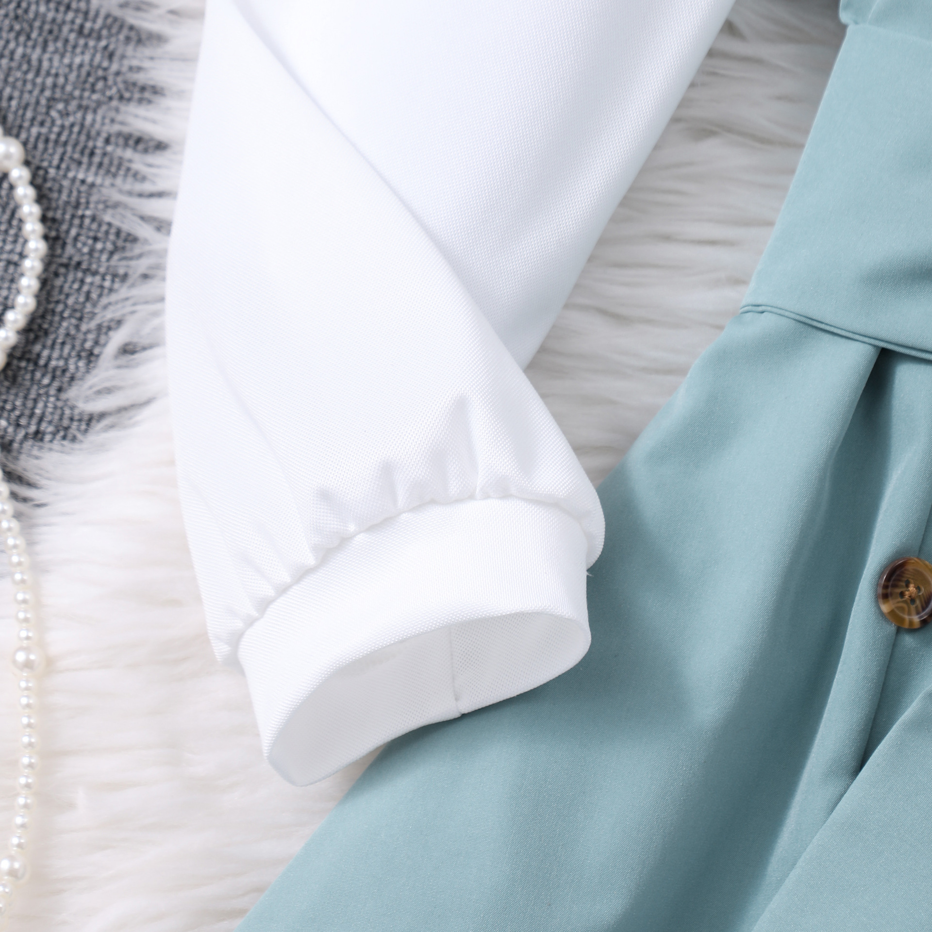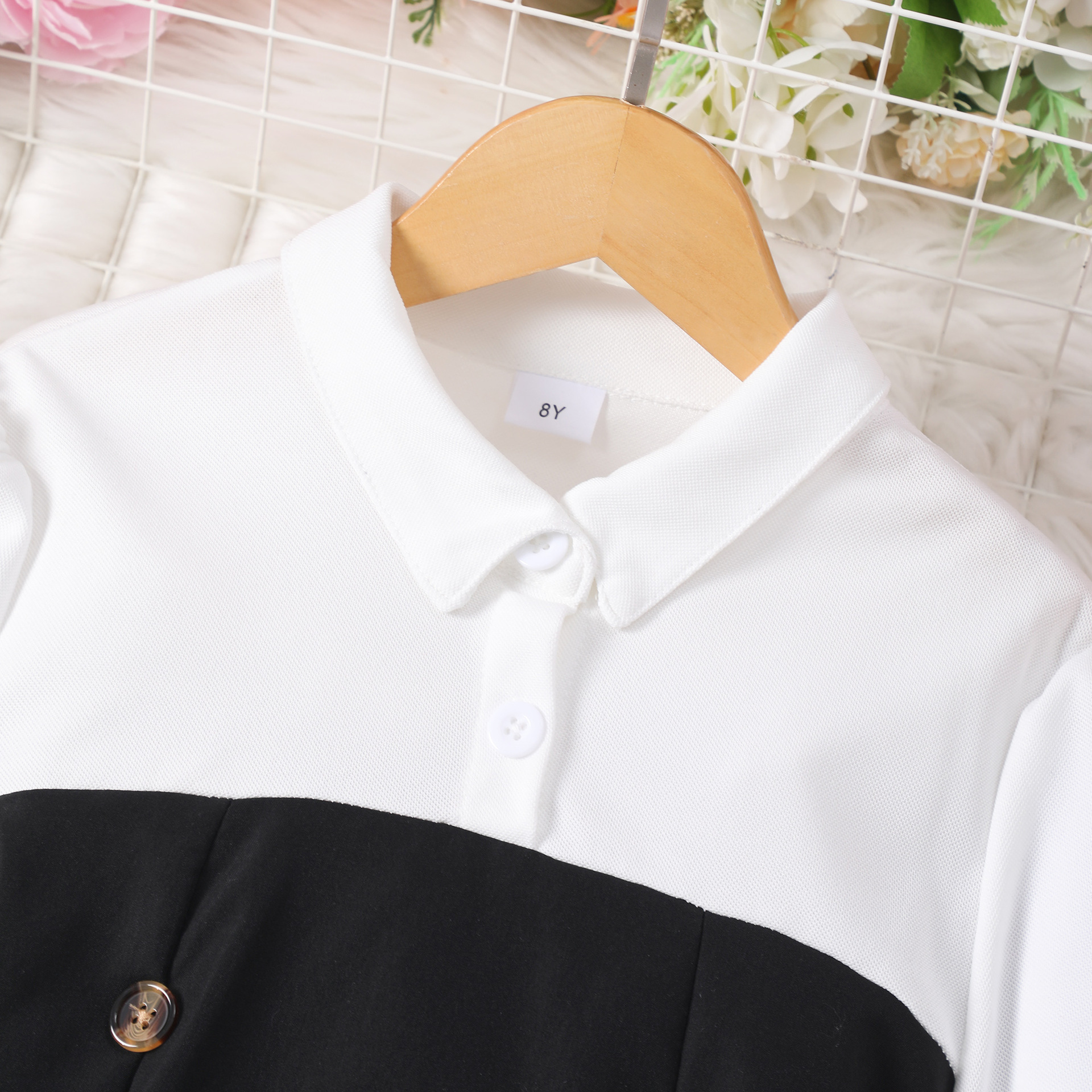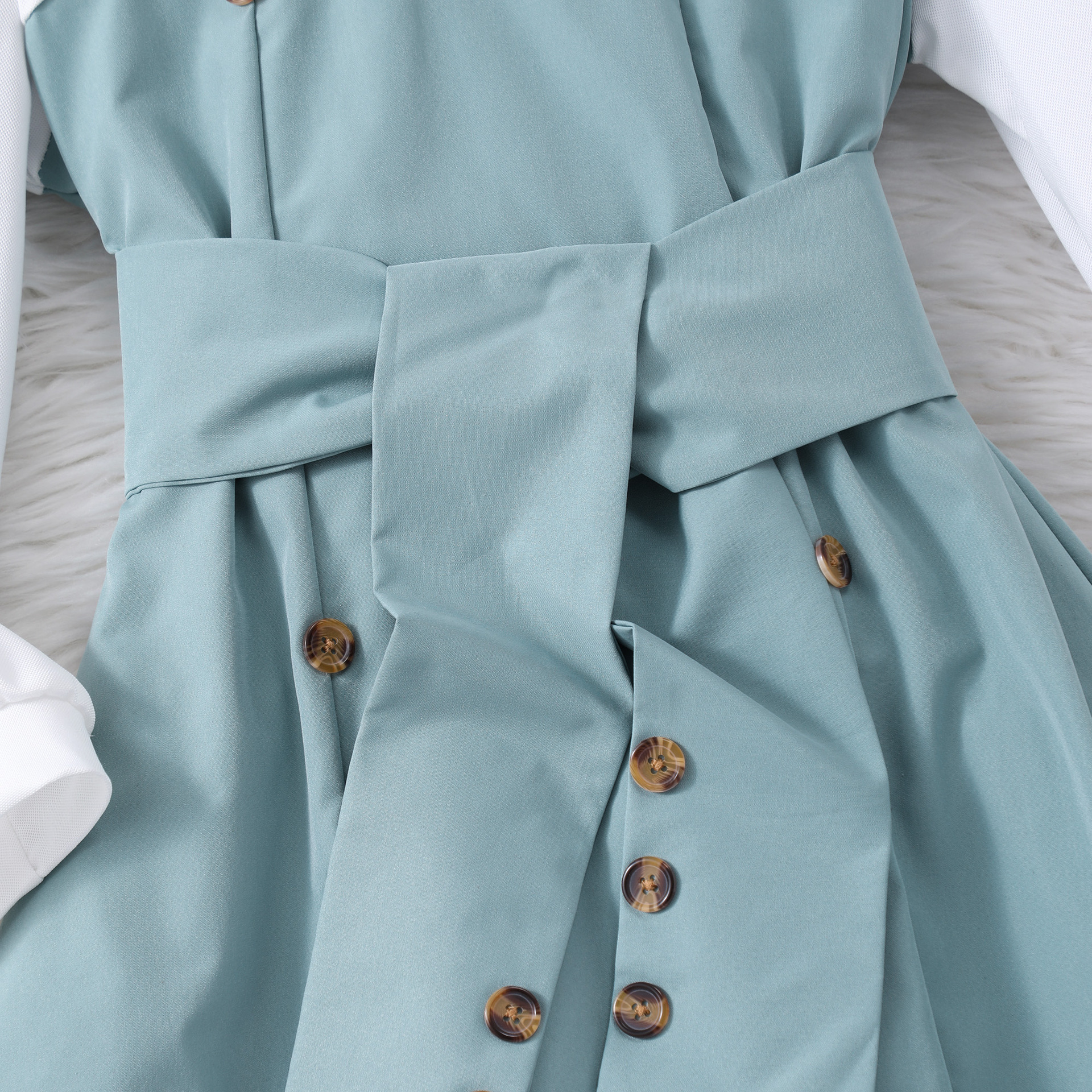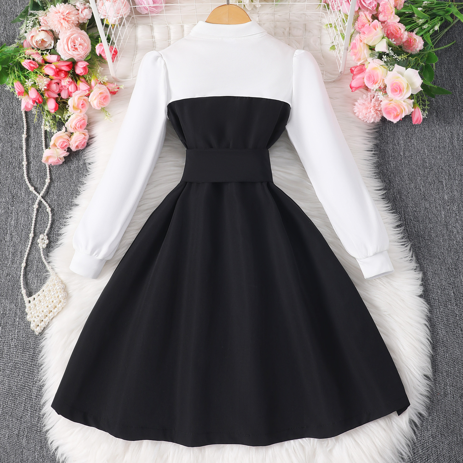 Трансграничный бестселлер для девочек, длинные рукава с лацканами и пуговицами, модное простое платье контрастного цвета.
