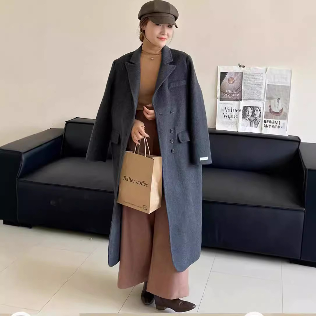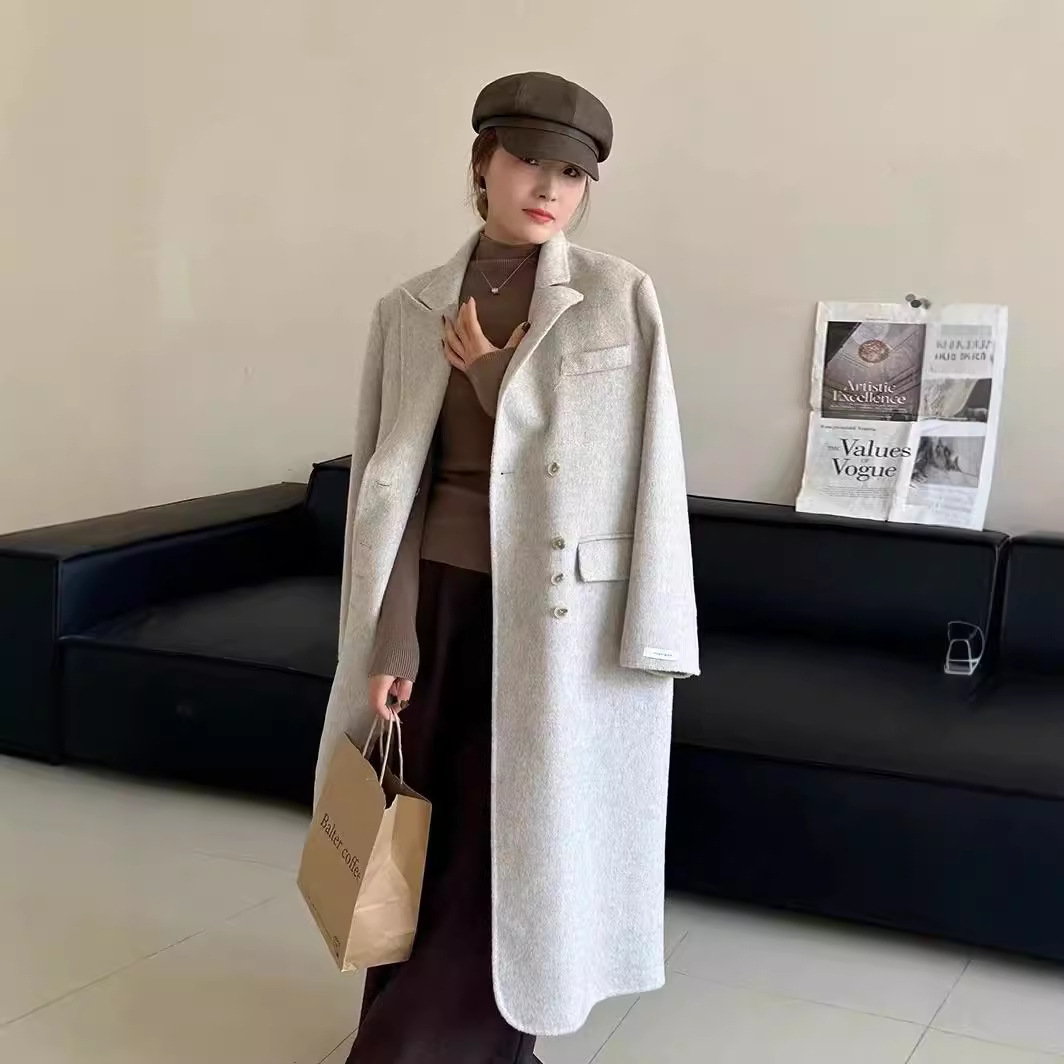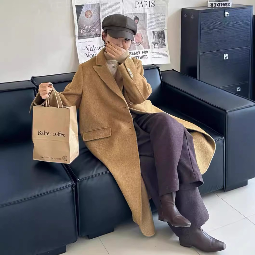 Новая женская двусторонняя шерстяная куртка-пальто средней длины в корейском стиле, осень-зима 2025, цвет «Кленовый лист», простая и элегантная