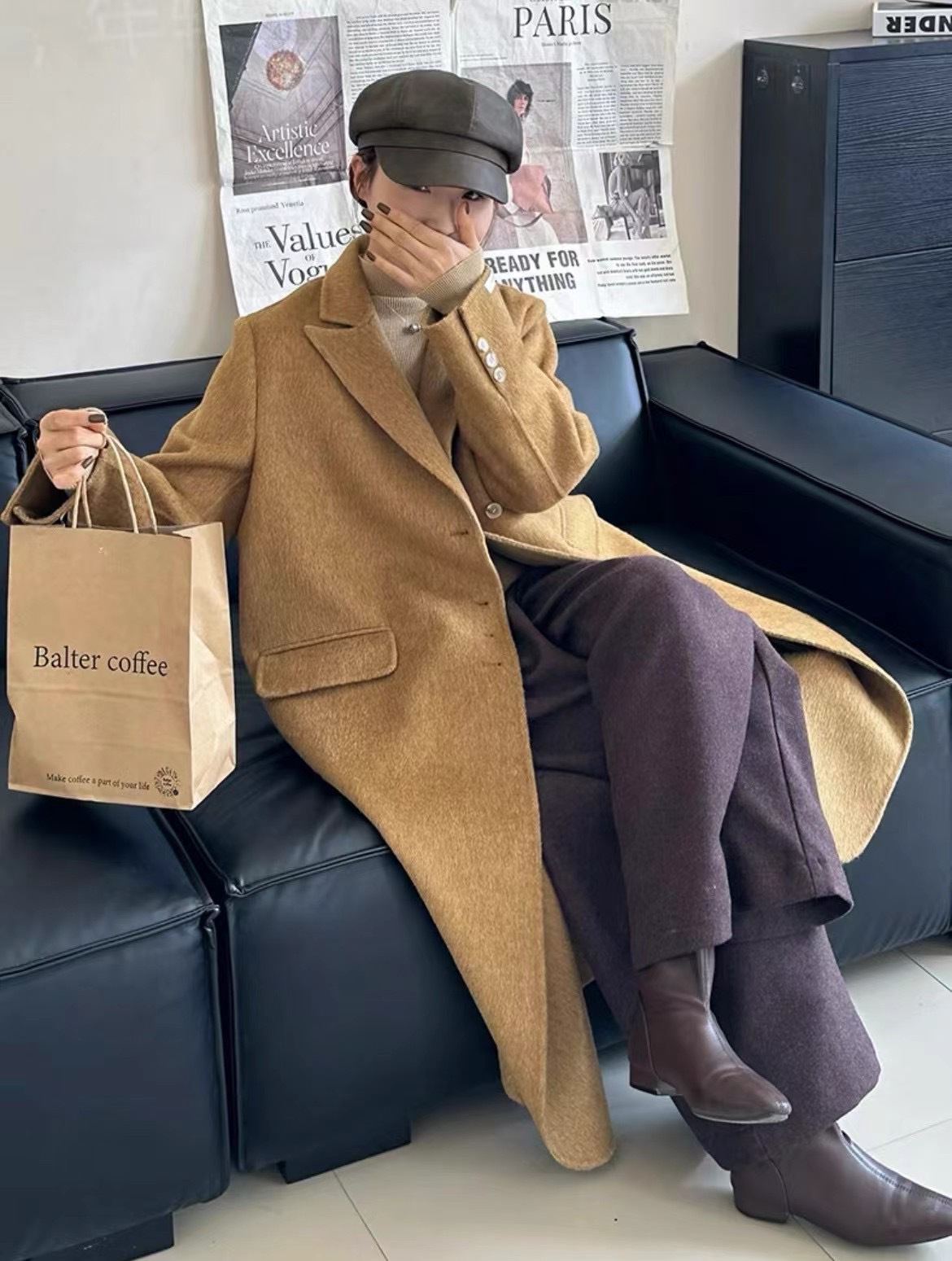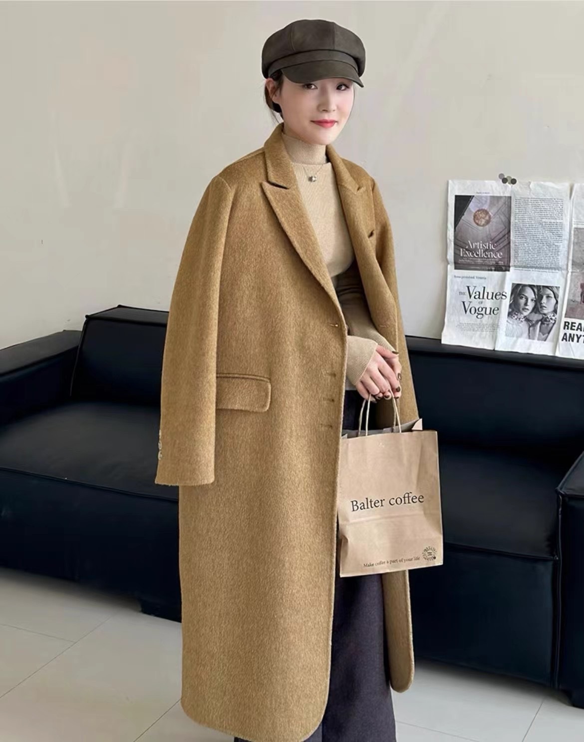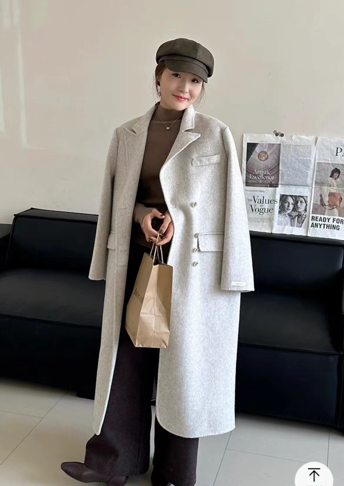 Новая женская двусторонняя шерстяная куртка-пальто средней длины в корейском стиле, осень-зима 2025, цвет «Кленовый лист», простая и элегантная