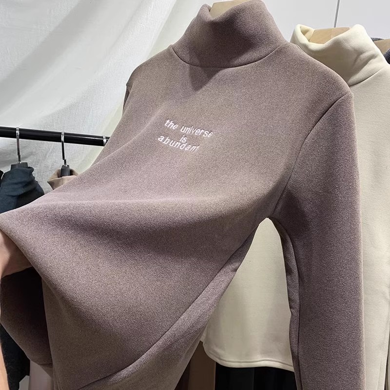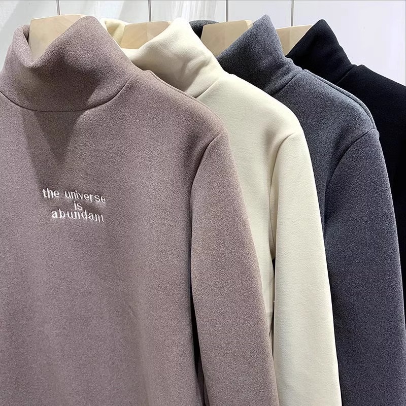 #1*1 Delong действительно толстая футболка с половинным воротником зимой новая корейская версия мужской и женской рубашки с бархатом, чтобы согреться
