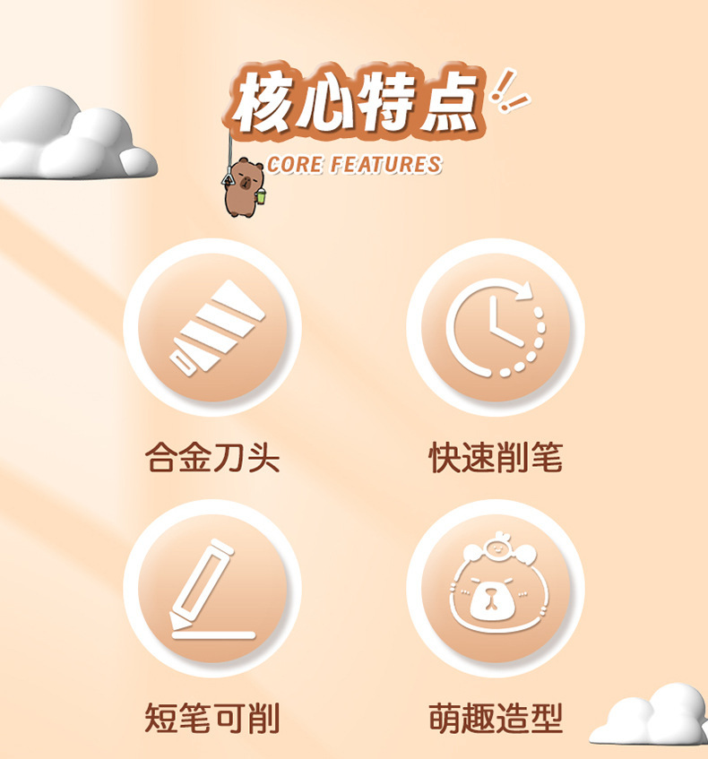 Точилка для карандашей Brown Capibala; Точилка для карандашей кабала кремового цвета