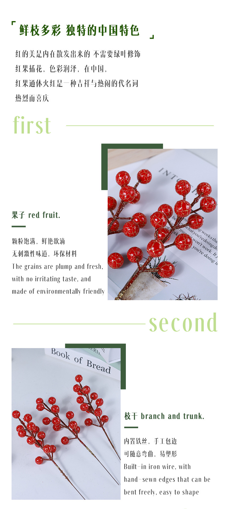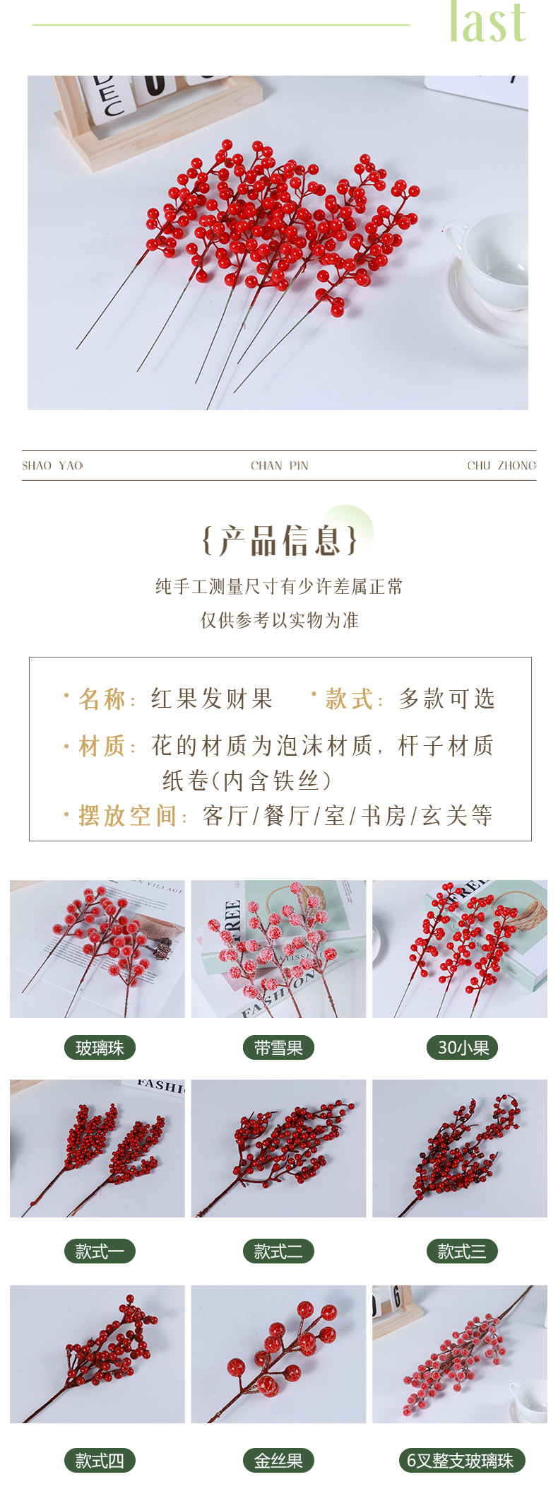Подвесной снежно-красный фрукт длиной 21 см, одна вилка, 12 фруктов