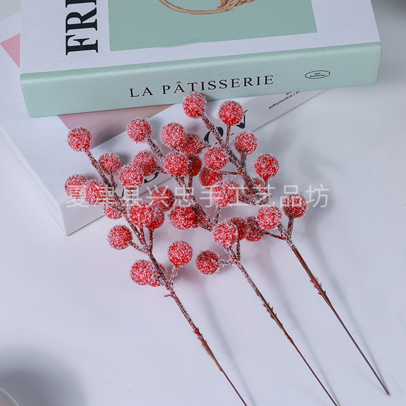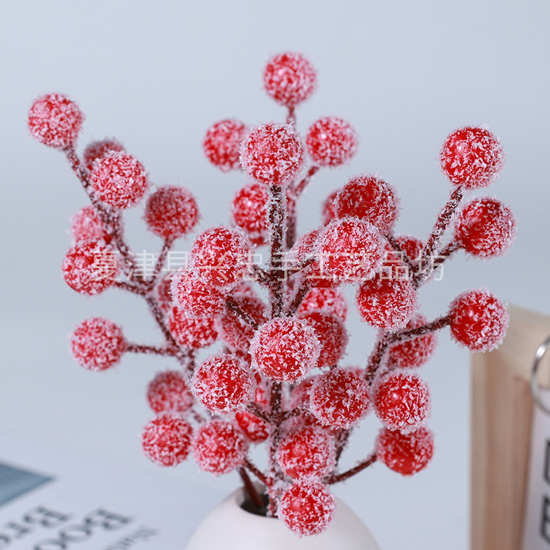 Рождественское украшение в виде сцены с одиночными висящими покрытыми снегом красными ягодами, домашнее украшение с покрытыми льдом красными ягодами, 12 покрытых снегом красных ягод-талисманов.