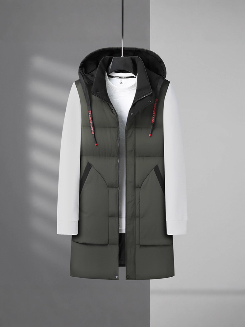 Новый модный толстый толстый средний длинный хлопковый зажим для коня мужской плюс большой размер досуг с капюшоном теплый жилет толстый зимний гром